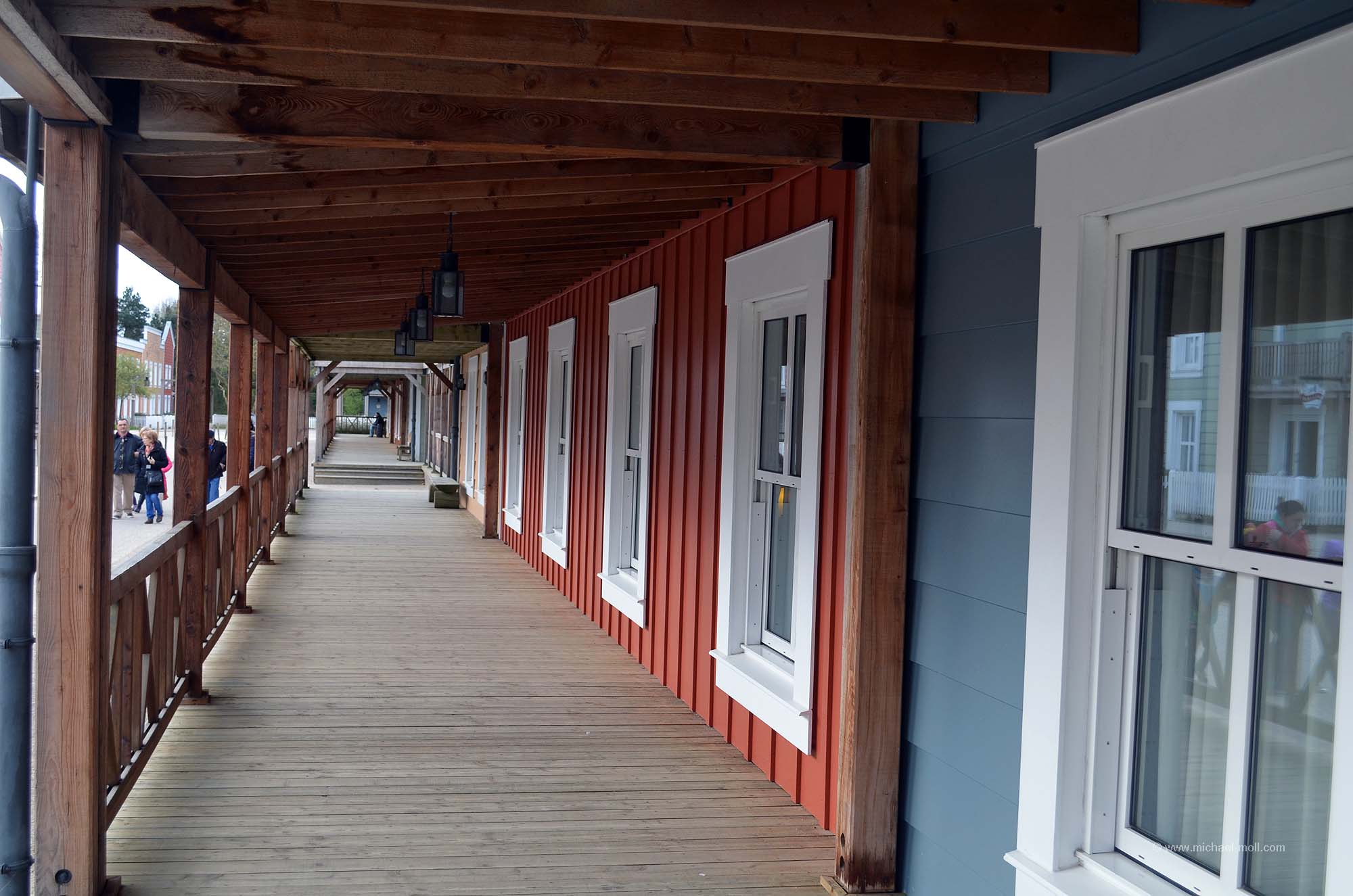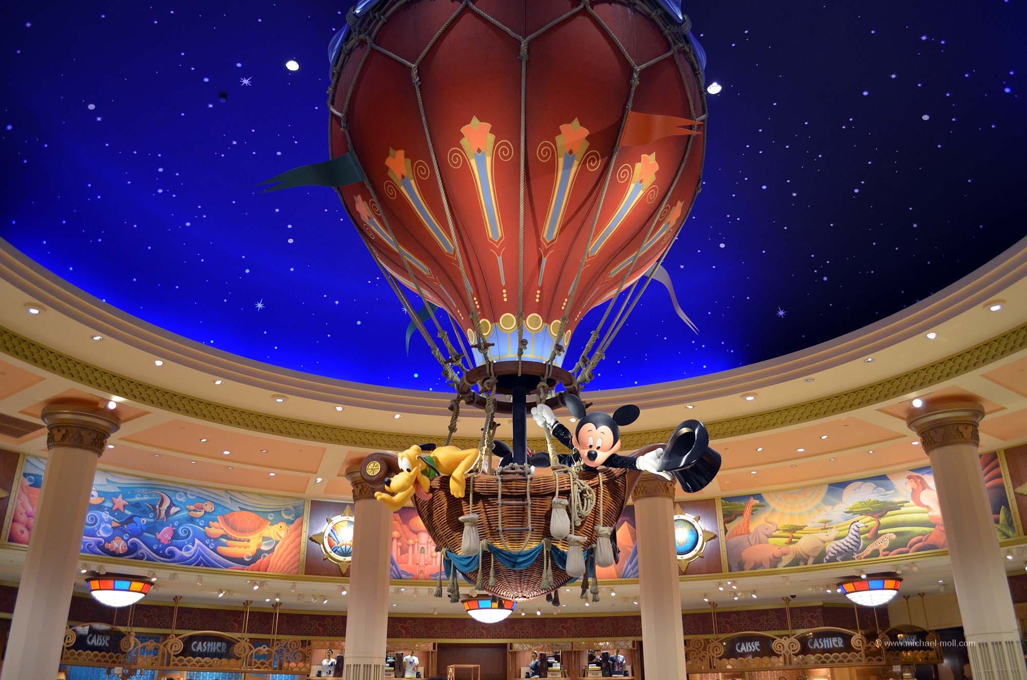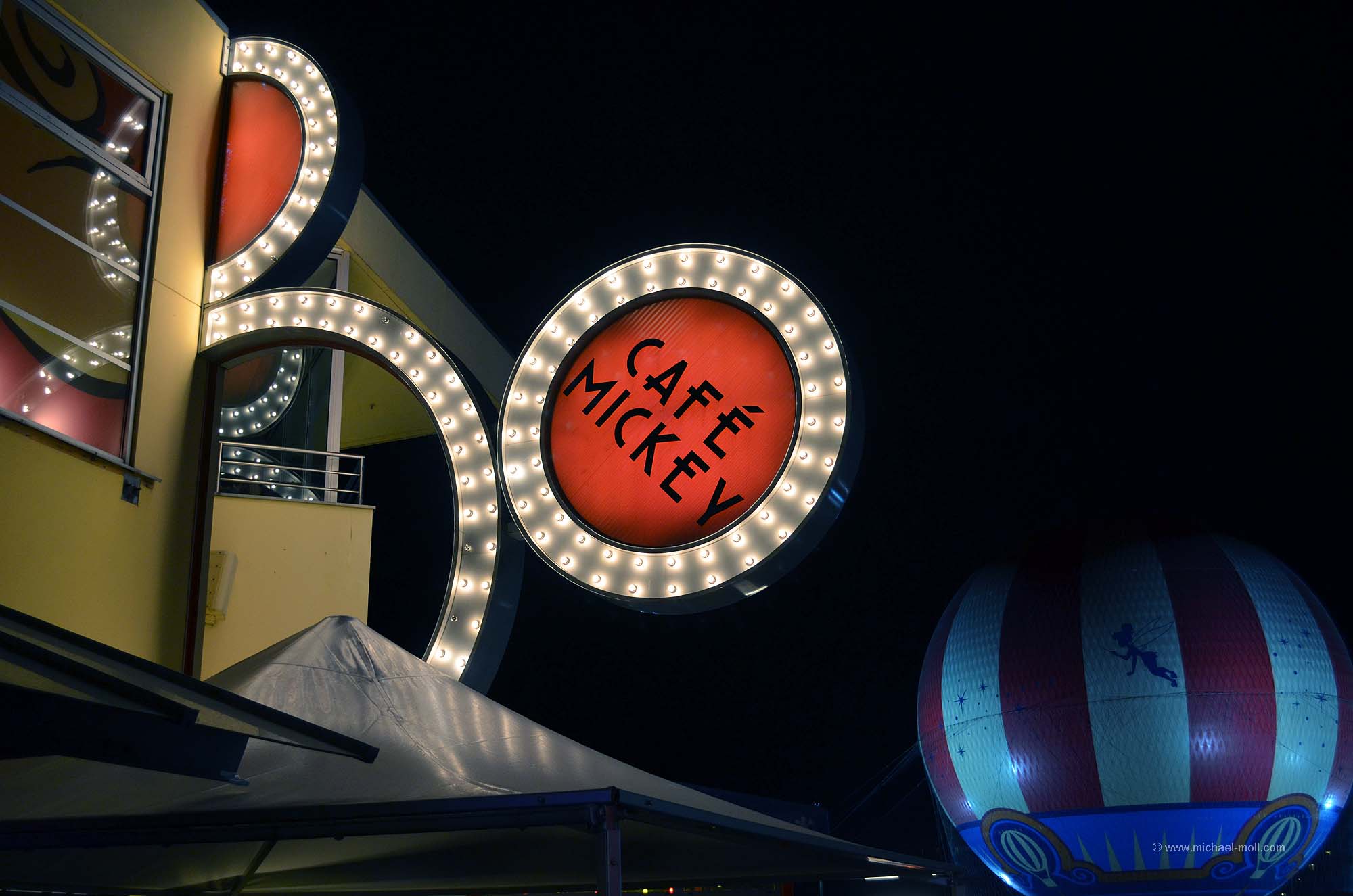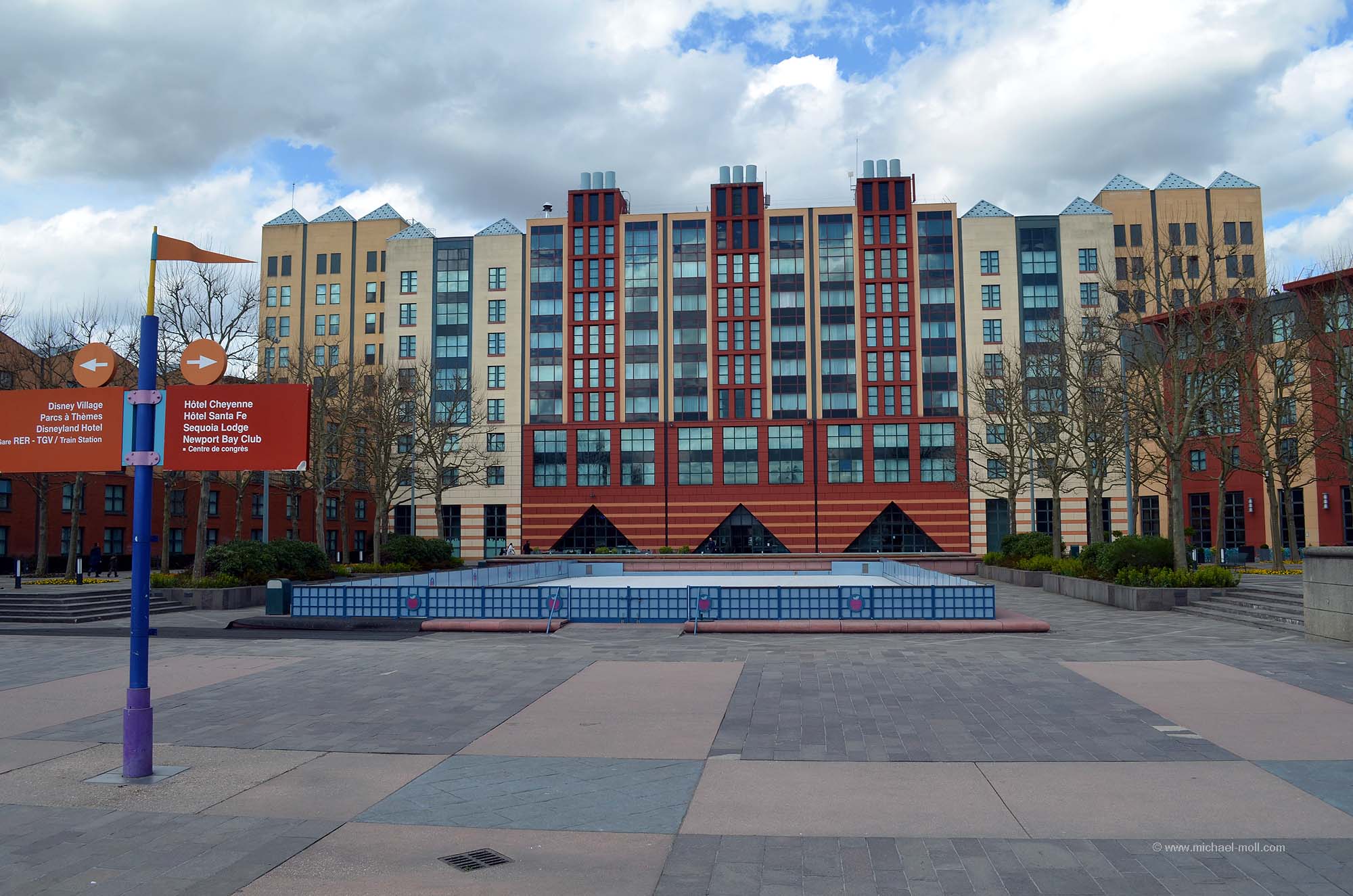 Keine zehn Minuten später gelangt man zu einem See, um den sich herum drei weitere Hotels befinden und wo gleichzeitig der Zugang zum Disney Village besteht. Das Disney Village ist öffentlich und kann von jedermann betreten werden. Es beherbergt zahlreiche Restaurants, Cafés und Shops. Da es abends länger geöffnet hat, als die beiden Parks durchquerten wir das Village zunächst und verschoben den Besuch auf die Abendstunden. Gleich dahinter kommt der TGV-Bahnhof, der Endpunkt des Shuttlebusses und die Zugänge zu den beiden Parks – Disneyland Park und Walt Disney Studios.