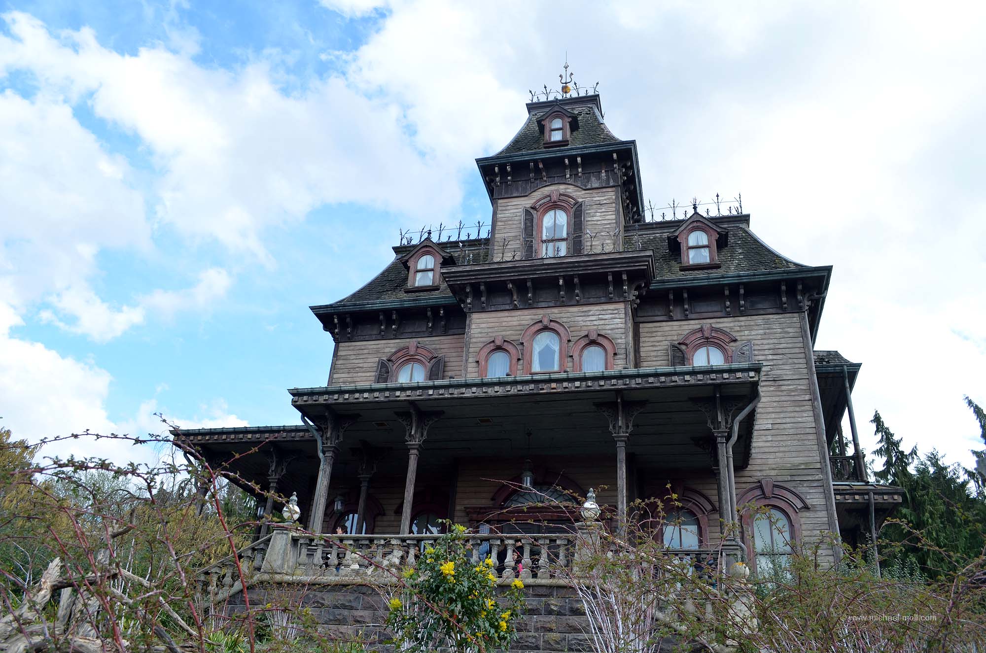Wir begannen mit dem Disneyland-Park, gingen ein wenig bergab und genossen den Anblick des Hotels, das gleichzeitig den Eingang des Parks markiert (und sündhaft teuer ist). Um kurz nach 15 Uhr waren wir nun endlich im Park angekommen und begannen sogleich fröhlich pfeifend durch die farbenfrohe Disney-Welt zu schlendern. Da die Wettervorhersage auf Regen bestand, es aber noch trocken war, entschieden wir uns, die Main Street mit ihren vielen Shops dann zu erkunden, wenn es wirklich regnet. Daher hieß unser erstes Ziel Frontierland – die Westernstadt. Und dort wurden wir magisch von dem Phantom Manor angezogen. Hierbei handelt es sich um ein Spukschloss, in dem es zwar keine Schock-Elemente gibt, sondern einfach nur schön gruselig zugeht. Das Haus erinnert übrigens sehr an die Geisterhäuser von Duisburg ;-).