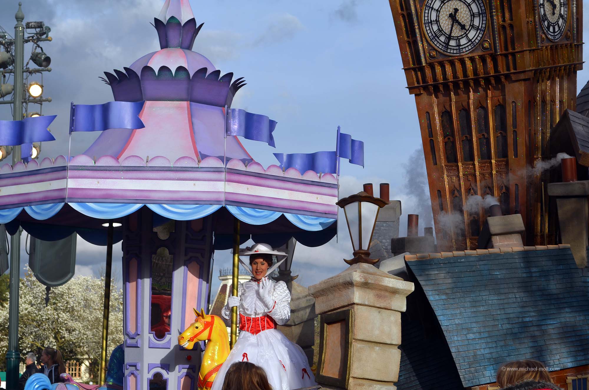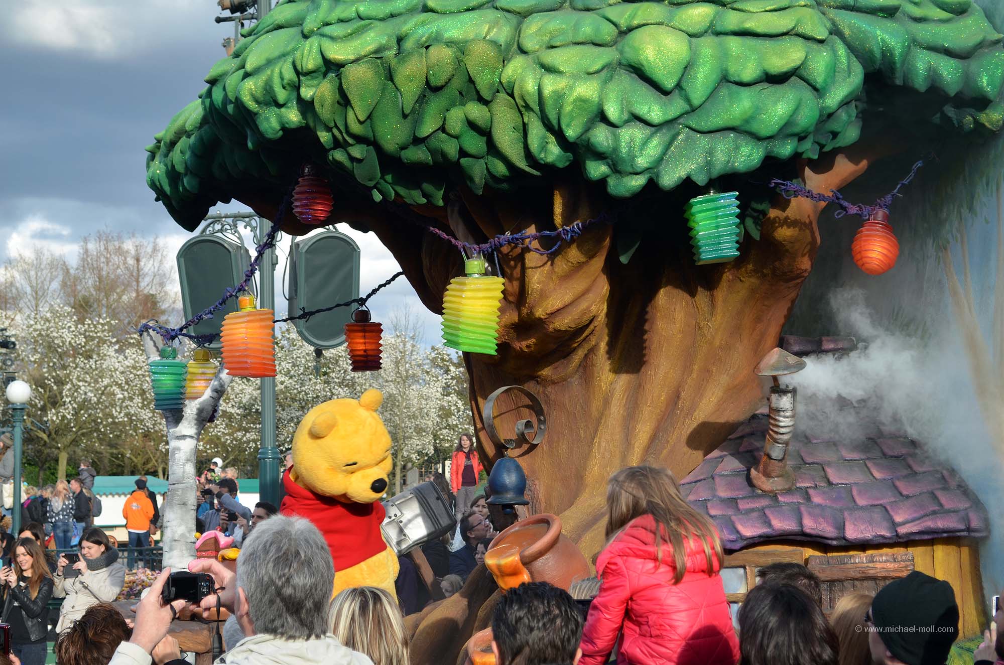 Anschließend schauten wir uns noch ein wenig in Frontierland um, erklommen den Robinson-Baum im Adventurland und da wurde es auch schon Zeit für die tägliche 17-Uhr-Parade, die am Dornröschen-Schloss vorbei und über die Main Street führt. Winnie the Pooh, der König der Löwen, Micky, Minnie und noch viele andere Charaktere saßen auf ihren Paradewagen und verbreiteten winkend eine super Stimmung.