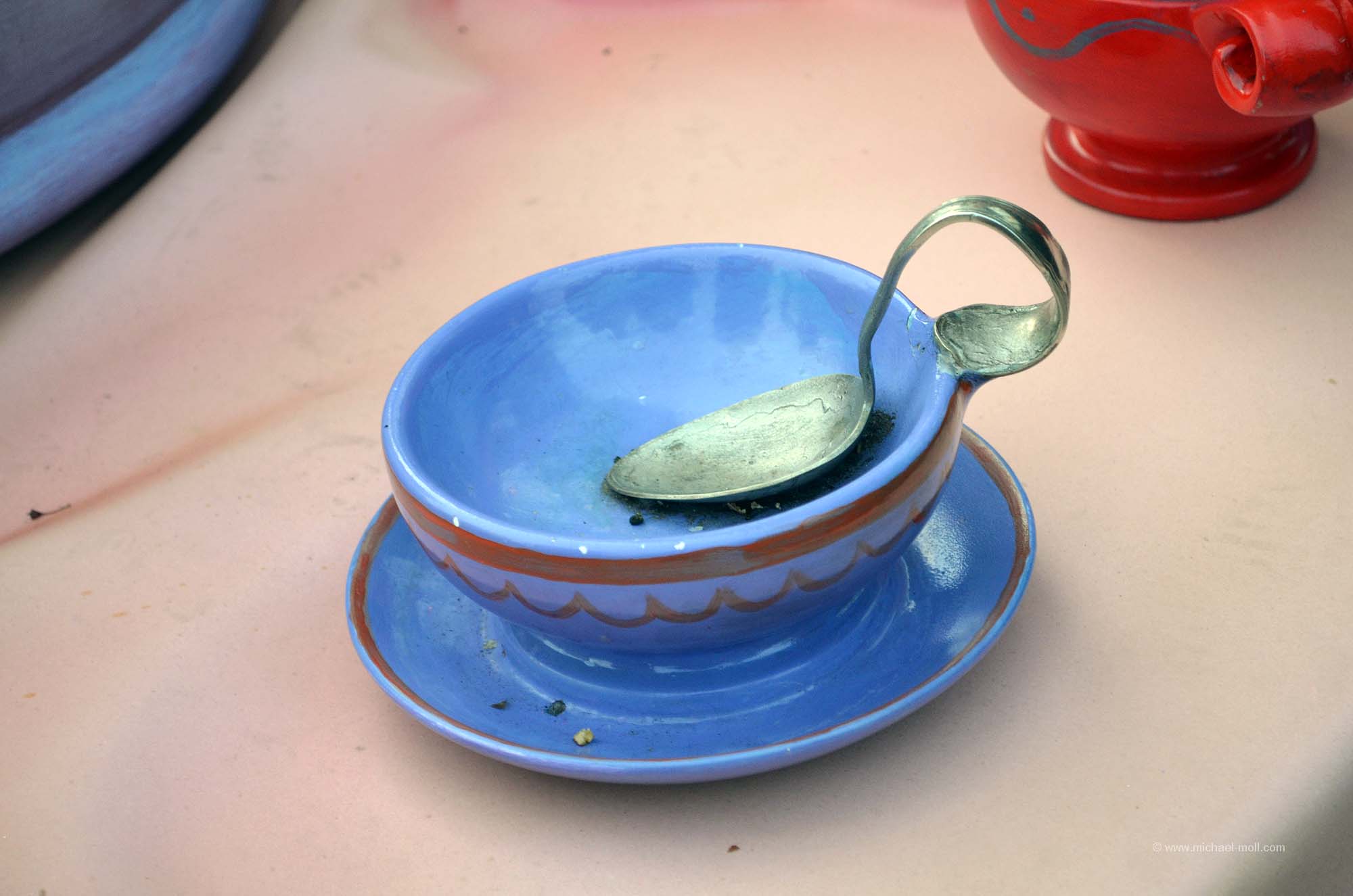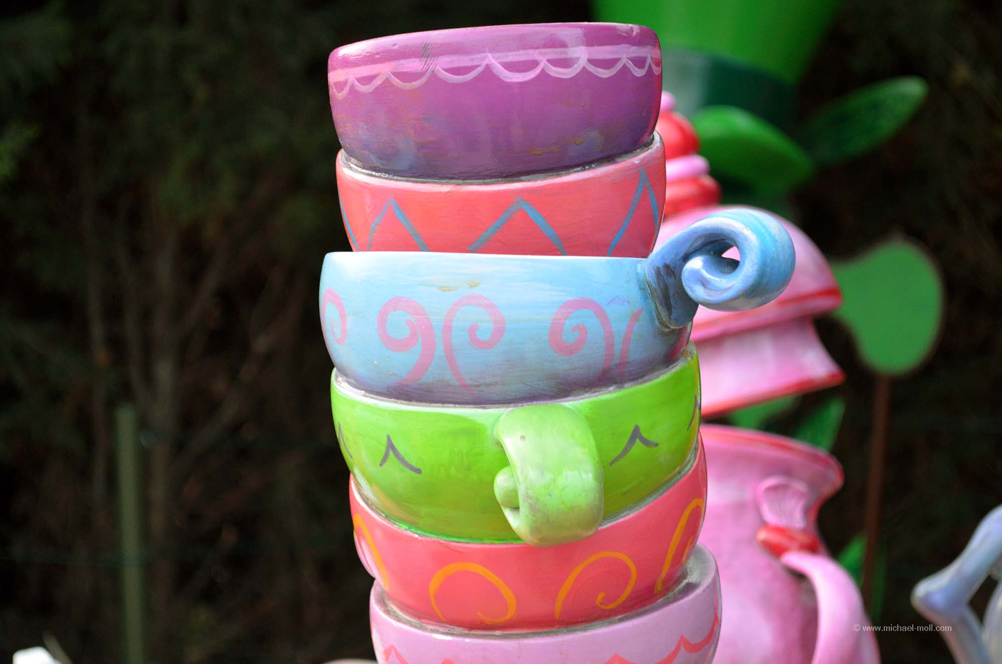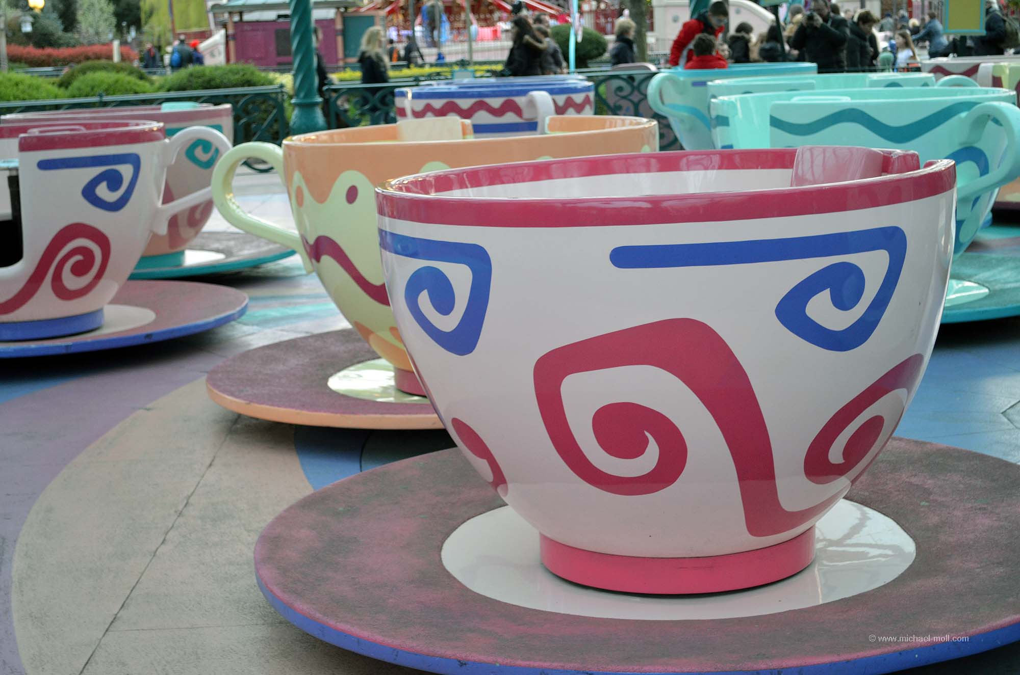 Anschließend spazierten wir direkt weiter ins Fantasyland zu einer Runde Teetassendreh, was natürlich immer eine Riesengaudi ist. Da auch gerade wenig Besucher an It’s a small world anstanden, sprangen wir dort schnell ins Boot zum sogenannten Puppengucken. Während Moni total fasziniert war, hatte ich hier einen kurzen Anflug von Enttäuschung. Denn in den letzten Wochen vor der Reise hatte ich viel über Disneyland gelesen und fand einige Foren, in denen Hardcore-Fans auch die weniger schönen Dinge aufzeigten. Mit diesen Threads im Hinterkopf ging ich den ersten Tag an und war selber ein wenig auf der Suche nach Makeln. Diese fand ich dann ausgerechnet in It’s a small world, wo ich früher sehr begeistert von war. Doch ich hatte in Erinnerung, dass die Fahrt durch eine relativ dunkle Halle führte, wo man nur die Puppen sieht.
