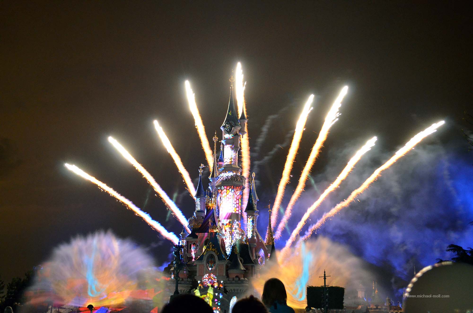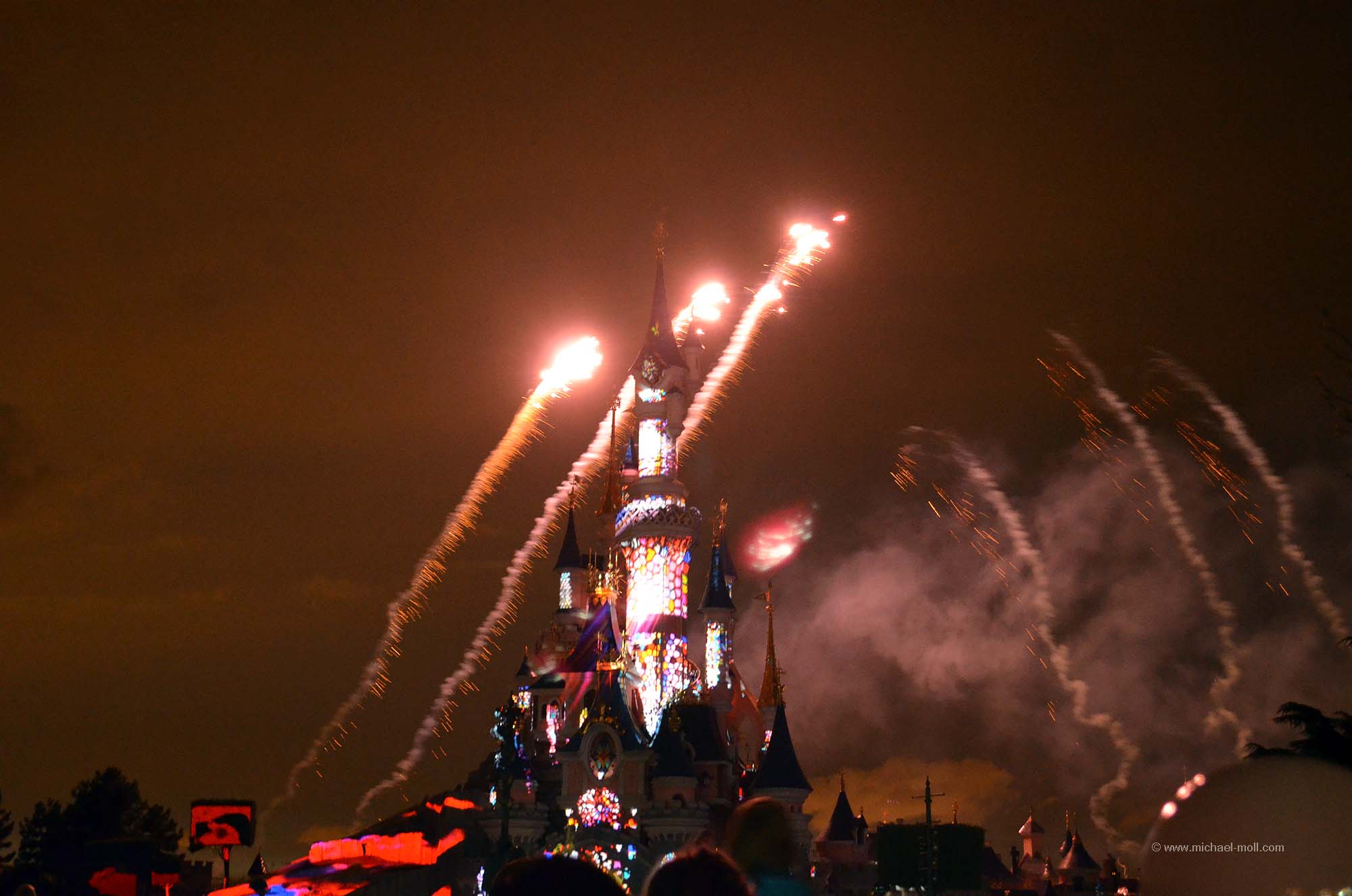 Schon kurze Zeit später begann mit dem Einbrechen der Dunkelheit das Feuerwerkspektakel Disney Dreams. Das kannte ich gar nicht und konnte mich daher nicht enttäuschen. Außerdem war diese mit einem Preis ausgezeichnete Show ein wirklich faszinierendes Ereignis aus Licht, Laser und Wasser. Die Leinwand waren Wasserfontänen und gleichzeitig das Dornröschen-Schloss und alles war perfekt aufeinander abgestimmt. Ganz große Klasse.