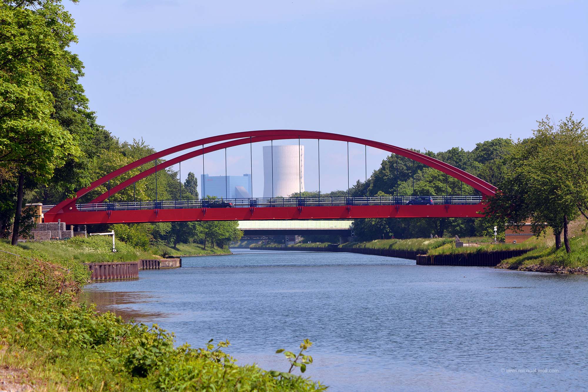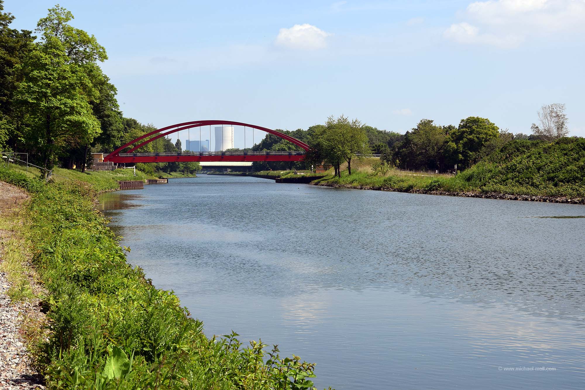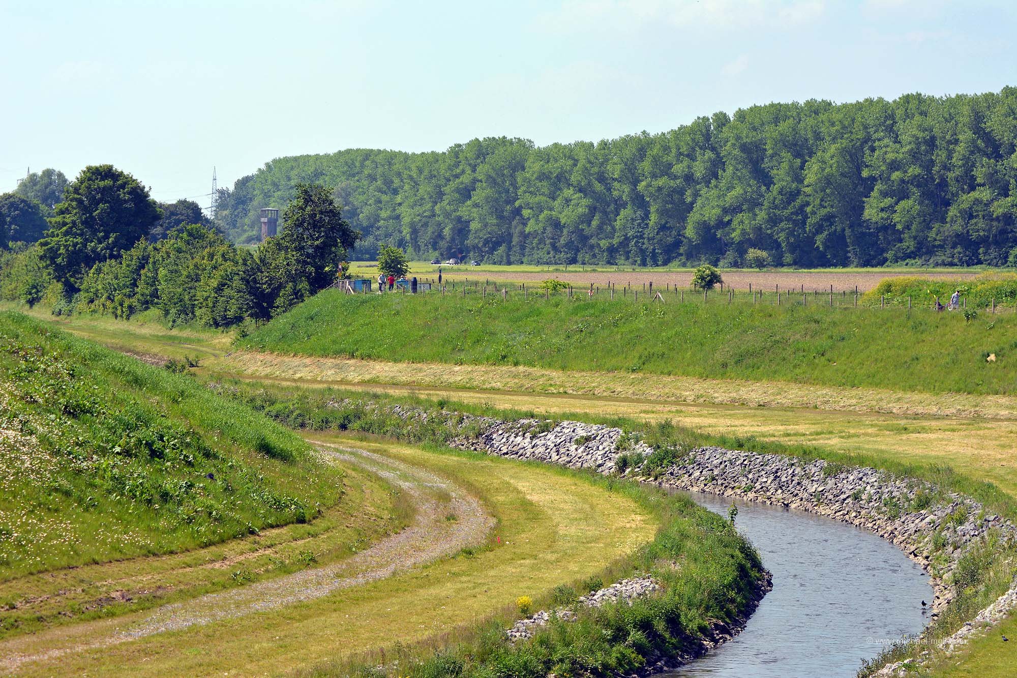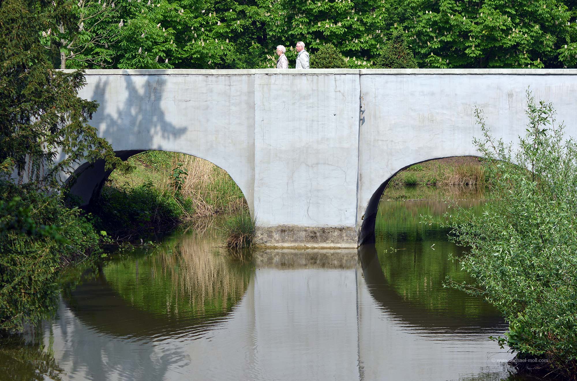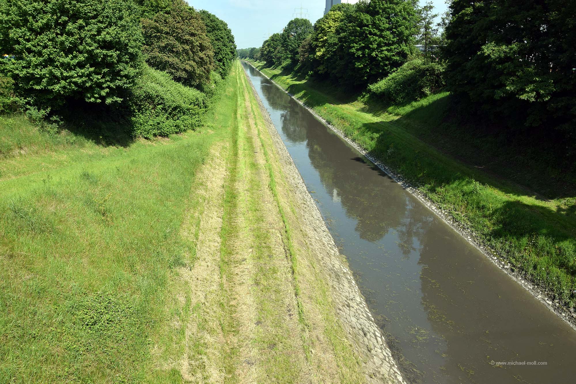 Doch die Emscher bleibt weiter südlich, passiert die einstige Henrichenburg, deren Grundmauern mit Hecken nachgebildet wurden und unterquert den Rhein-Herne-Kanal. Dieser sogenannte Emscherdurchlass wurde nun bereits zum dritten Mal gebaut und im Rahmen des Emscherumbaus im Jahr 2012 feierlich eröffnet. Ist schon ganz witzig, wenn ein kleiner Fluss von einem deutlich größeren Kanal überquert wird.