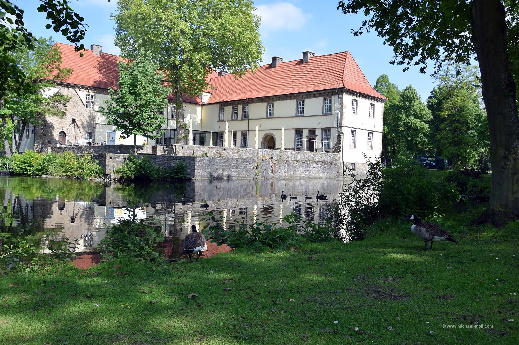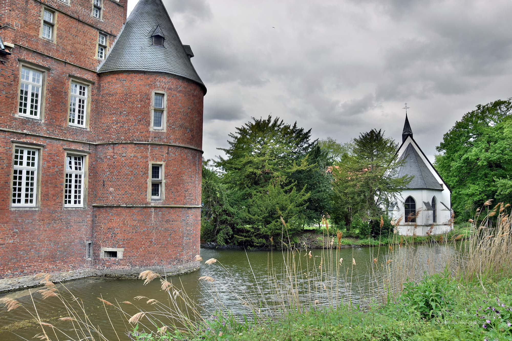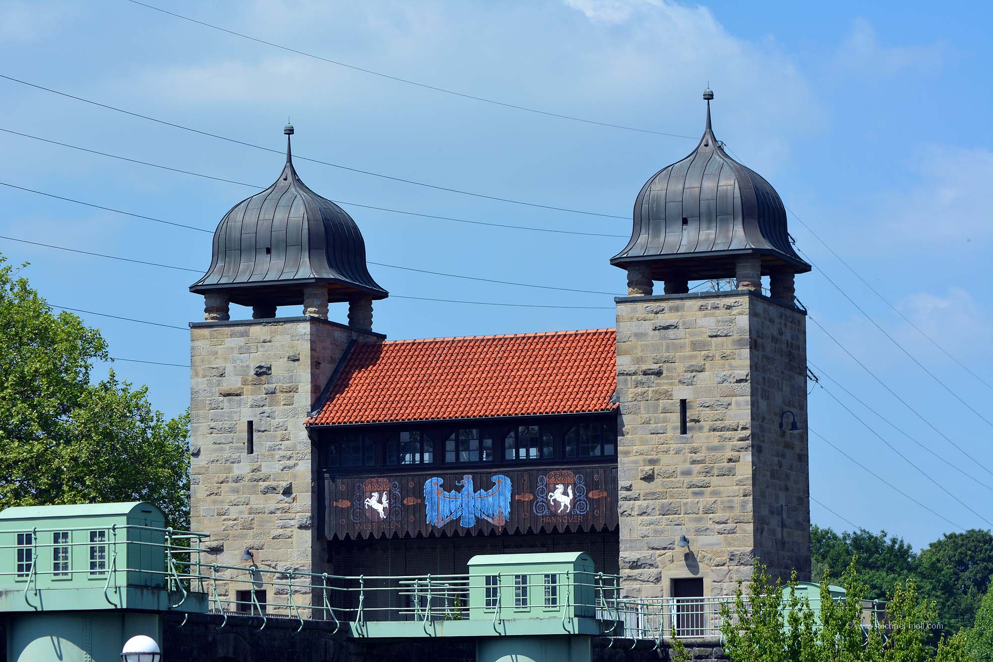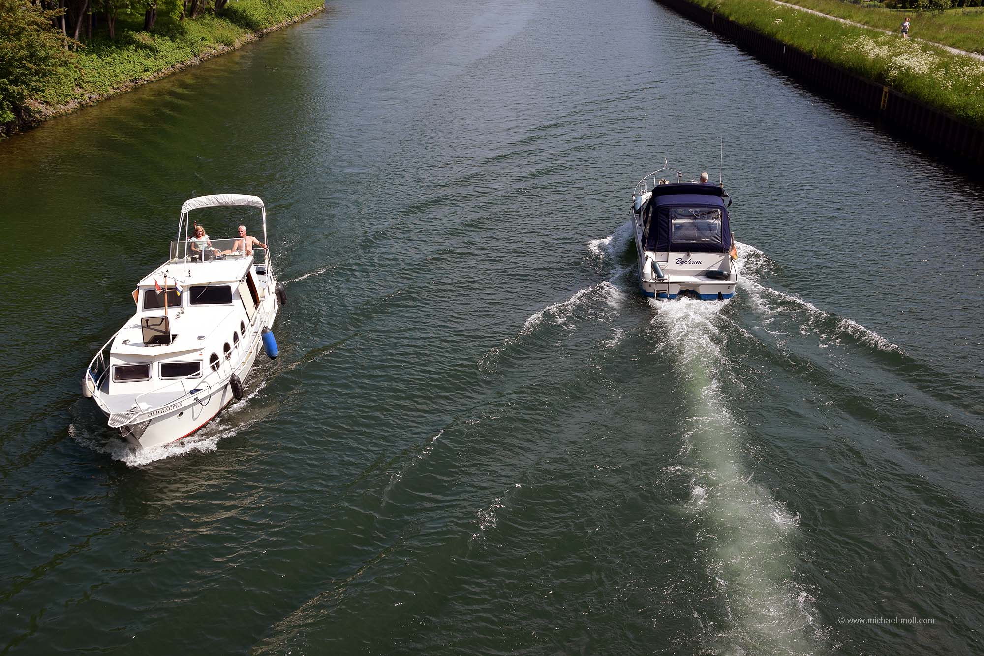 Doch die Emscher bleibt weiter südlich, passiert die einstige Henrichenburg, deren Grundmauern mit Hecken nachgebildet wurden und unterquert den Rhein-Herne-Kanal. Dieser sogenannte Emscherdurchlass wurde nun bereits zum dritten Mal gebaut und im Rahmen des Emscherumbaus im Jahr 2012 feierlich eröffnet. Ist schon ganz witzig, wenn ein kleiner Fluss von einem deutlich größeren Kanal überquert wird.