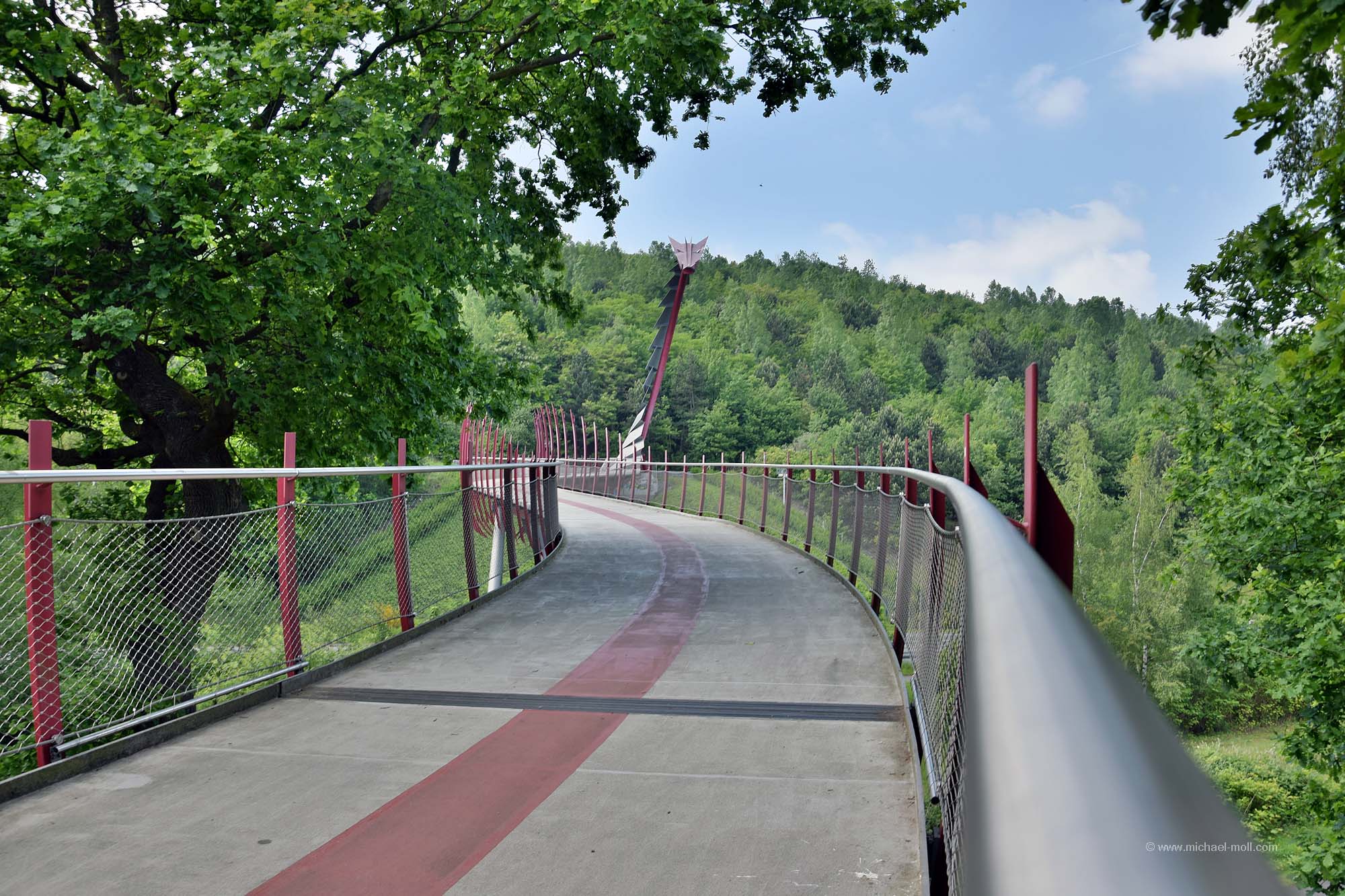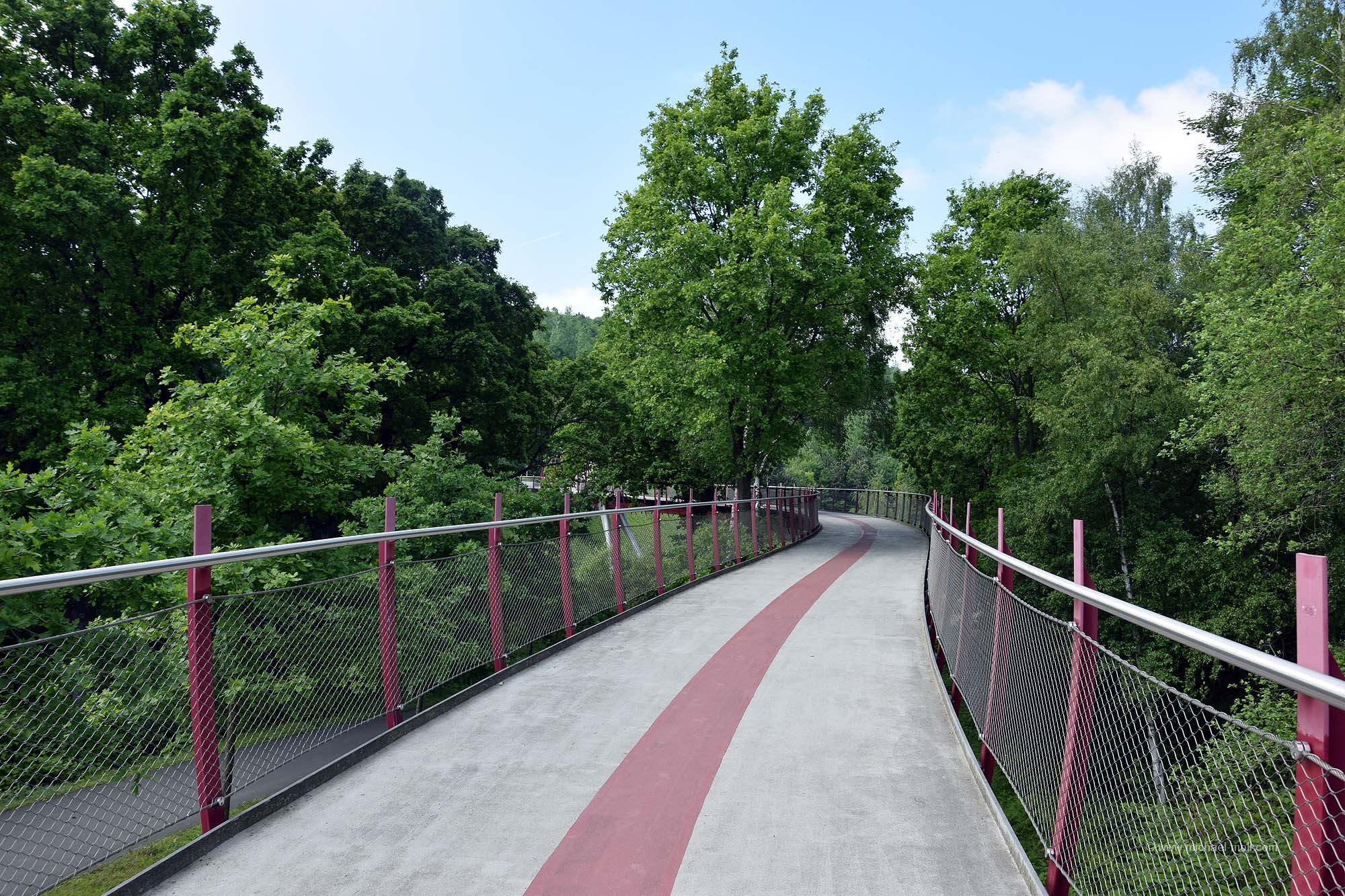 Entlang der Emscher gelangt man dann von Phoenix-Ost zu Phoenix-West, einem weiteren ehemaligen Industriegelände. Dort stand das Hochofenwerk, indem der flüssige Stahl für Phoenix-Ost erzeugt wurde. Auf der ehemaligen Bahntrasse, die die beiden Werke miteinander verband, ist heute ein Rad- und Wanderweg entstanden, der sich parallel zur Emscher befindet.