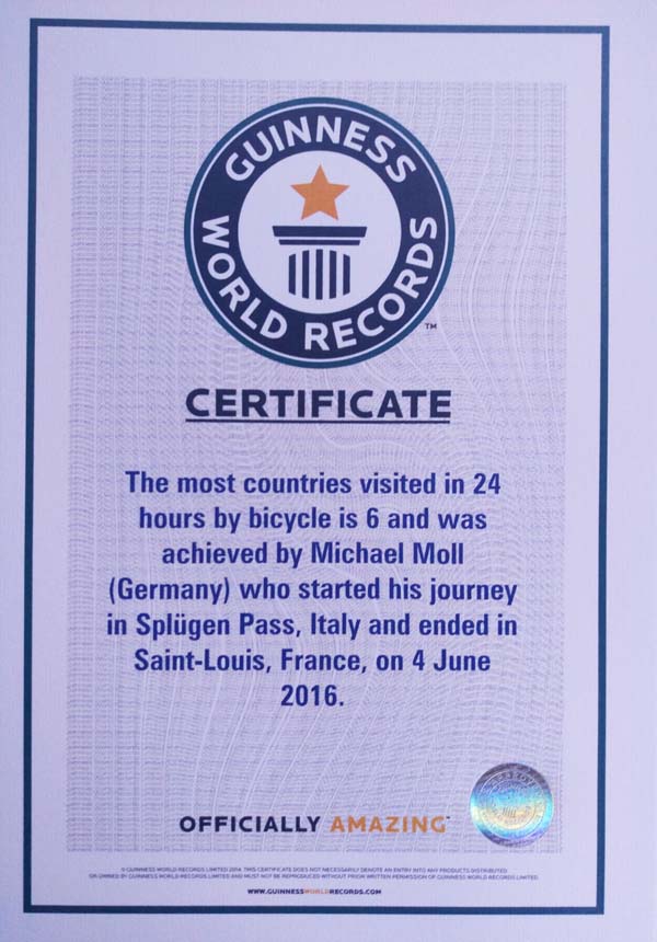 2016 – Weltrekord: Die meisten mit dem Fahrrad besuchten Länder in 24 Stunden