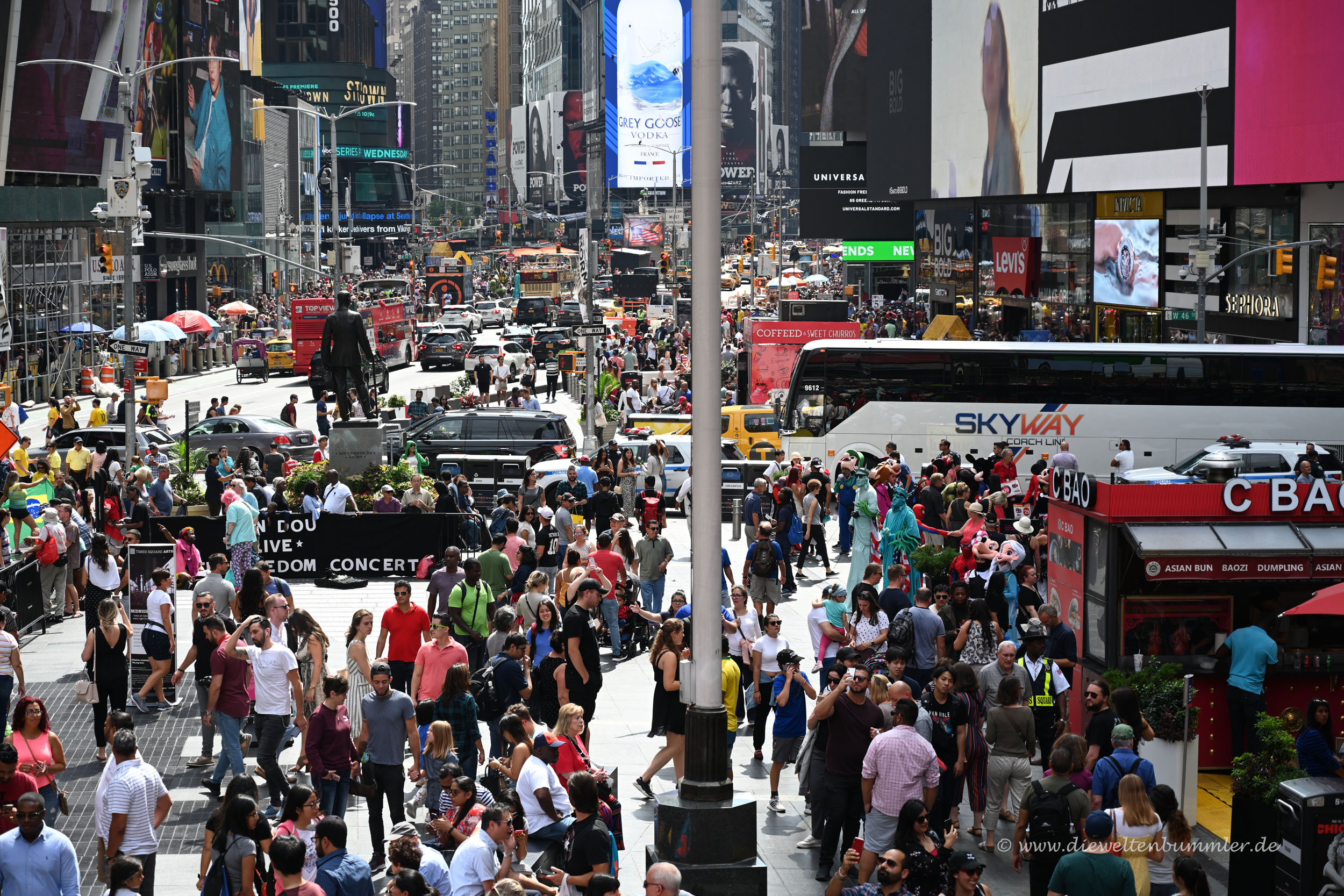 Gleich vor dem Hotel befindet sich die U-Bahnstation und dementsprechend schnell waren wir in der Subway. Gut, dass wir uns schon auskannten. Nur bei den Tickets mussten wir nochmal überlegen, was wir wollten. Beim letzten Mal hatten wir ein Mehrtagesticket. Doch dieses Mal würde es sich natürlich nicht lohnen. Absolut gewohnt fuhren wir bis zum Times Square und sogen erst einmal den Lärm dieser Großstadt in uns auf.