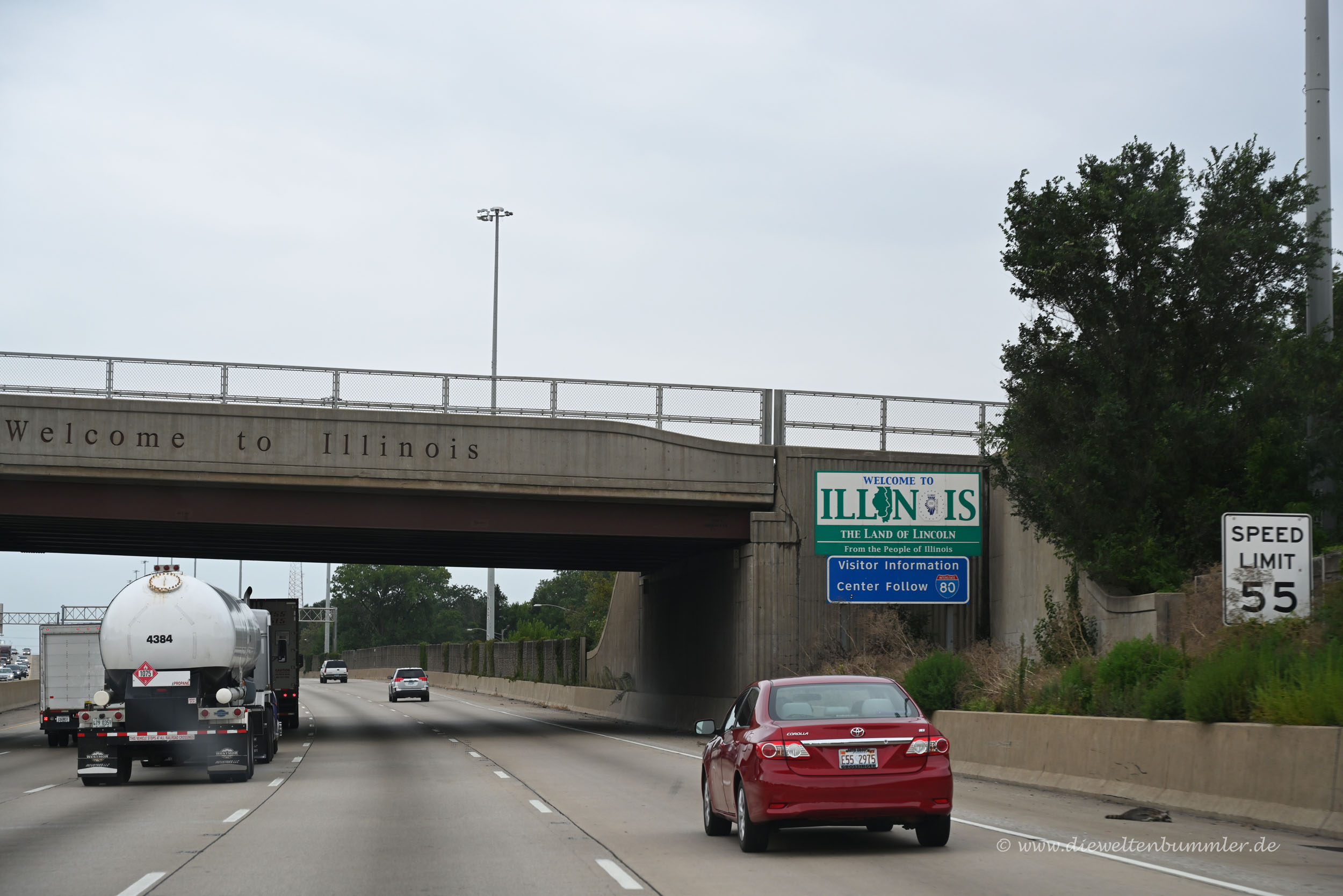 Auch Ohio durchquerten wir auf unserem Roadtrip durch die USA ohne nennenswerte Vorkommnisse und schon sahen wir uns bei Chicago am Willkommensschild von Illinois vorbei fahren. Natürlich versuchten wir sogar aus dem Auto heraus ein Foto zu machen, denn auch Willkommensschilder werden von uns gesammelt. In Chicago wollten wir wieder auf Familienbesuch gehen, doch erst am Ende der Reise, weil die Familie selber gerade in Europa ist. So suchte Moni erneut ein Hotel im Netz und wurde in der Stadt Madison im Bundesstaat Wisconsin fündig. Mir kam das gerade recht, denn seitdem wir das Schiff verließen, schleppte ich mal wieder eine nervende Erkältung mit mir herum.