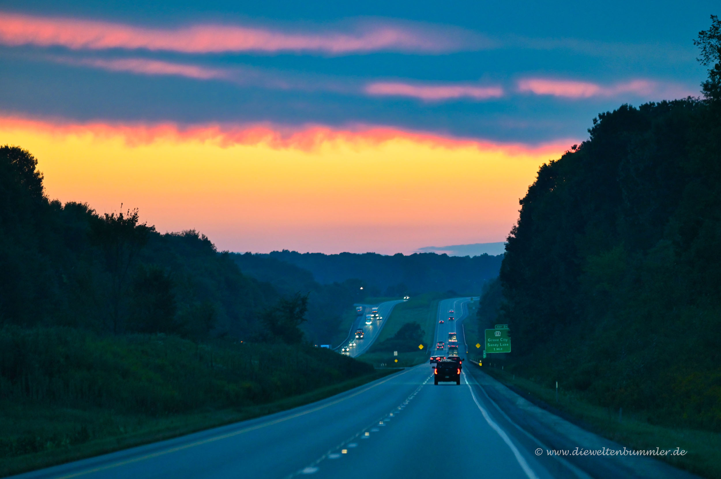 Dort deckten wir uns dann endlich mit all den gewünschten Sachen ein und kamen beim Einpacken ins Auto in den ersten dicken Regen dieser Reise. Doch das war uns relativ egal, denn wir steuerten unseren Wagen nun erst einmal auf die uns bekannte Interstate 80, um weiter nach Westen zu gelangen. Schon bald ließen wir New Jersey hinter uns und waren in Pennsylvania unterwegs.