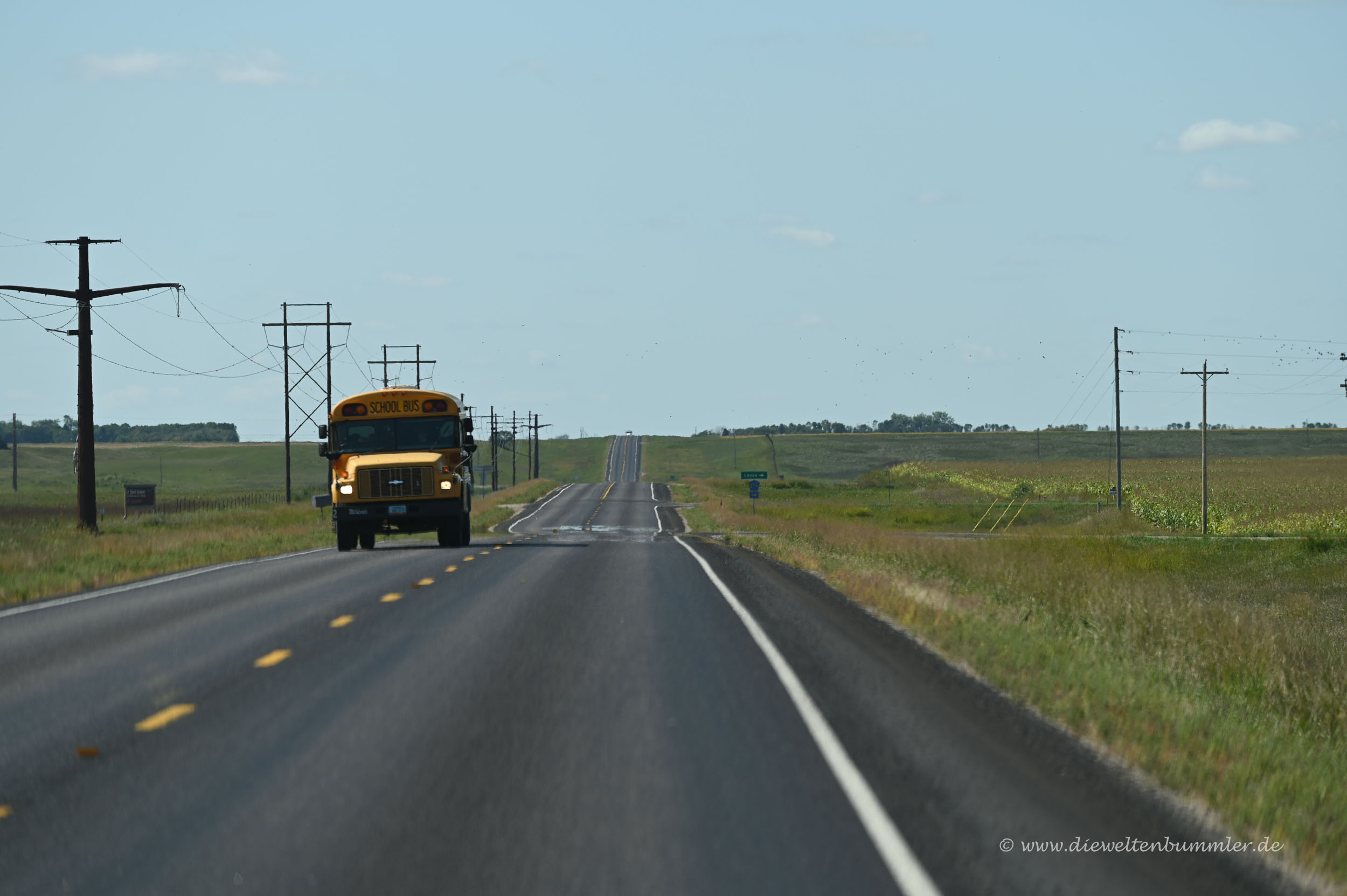 Für den Rest des Tages stand nichts weiter an, außer dass wir nach Kanada einreisen wollten. Mehrmals überquerten wir bis zum Grenzübergang den Mouse River, der einfach nur niedlich klingt. Bei einem Blick auf die Karte sieht man aber, dass er nicht klein ist, dafür aber stark mäandert. Der Mouse River ist so ziemlich das einzige in North Dakota, was nicht rechtwinklig ist. Ansonsten ist man viele Meilen lang immer auf schnurgeraden Straßen unterwegs. Und gefühlt ist man hier in der Wildnis, denn sogar der Gegenverkehr grüßt schon mit der Hand. Viele Menschen scheint es hier oben also nicht zu geben. Dabei kommt Kanada ja erst noch.