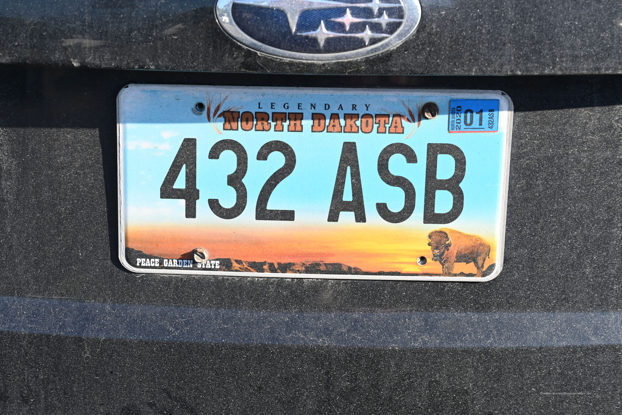 Wir waren so begeistert von Hornbacher’s, dass wir gleich am nächsten Morgen dort auch noch Sachen für’s Frühstück und für unterwegs erwarben. Außerdem fotografierte ich endlich ein Autokennzeichen aus North Dakota. Denn auf unserer letzten Reise habe ich Autokennzeichen aus allen US-Bundesstaaten fotografieren können, sogar aus Alaska und Hawaii. Als wir damals nach Hause kamen, bemerkte ich jedoch, dass mir noch ein Kennzeichen aus North Dakota fehlte. Aber jetzt habe ich das endlich auch eingesammelt.