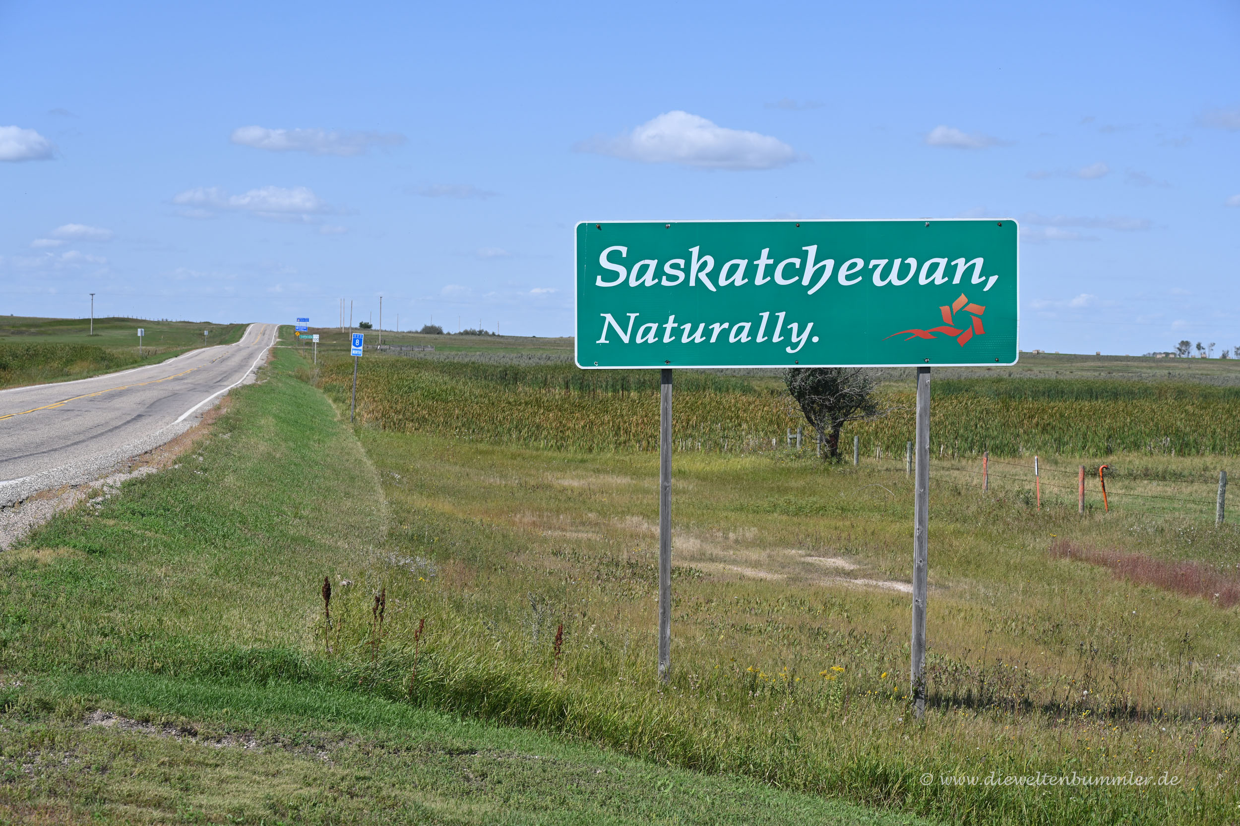 Damit waren wir nun in der kanadischen Provinz Saskatchewan, in der erstmal nicht viel anders aussah als in North Dakota. Aber plötzlich fiel unser Navi aus. Wir hatten schon am Morgen in Fargo gemerkt, dass wir Regina in Kanada nicht eingeben konnten und uns das Navi bloß bis zur Grenze navigieren wollte. Und hier war es dann soweit, es gab keine Navigation mehr. Tja, ein Blick auf den Karton, der mittlerweile irgendwo unter einem Sitz verschwunden war, zeigte die bittere Wahrheit. Dieses Gerät hatte nur Kartenmaterial für die USA. Blöd, da hatten wir nicht aufgepasst.