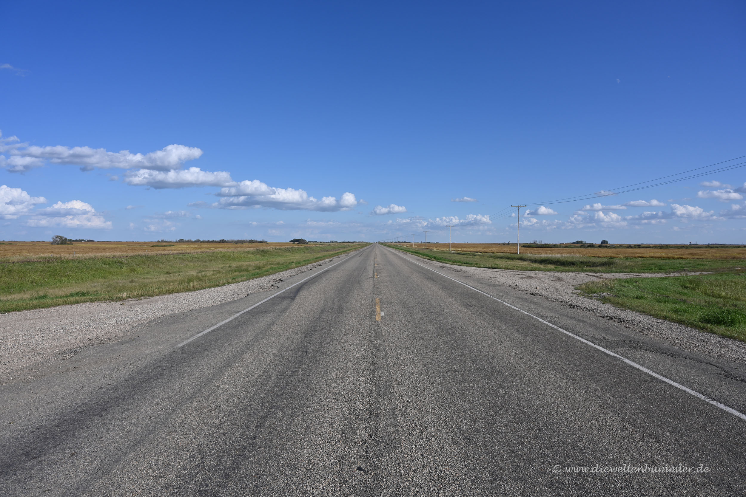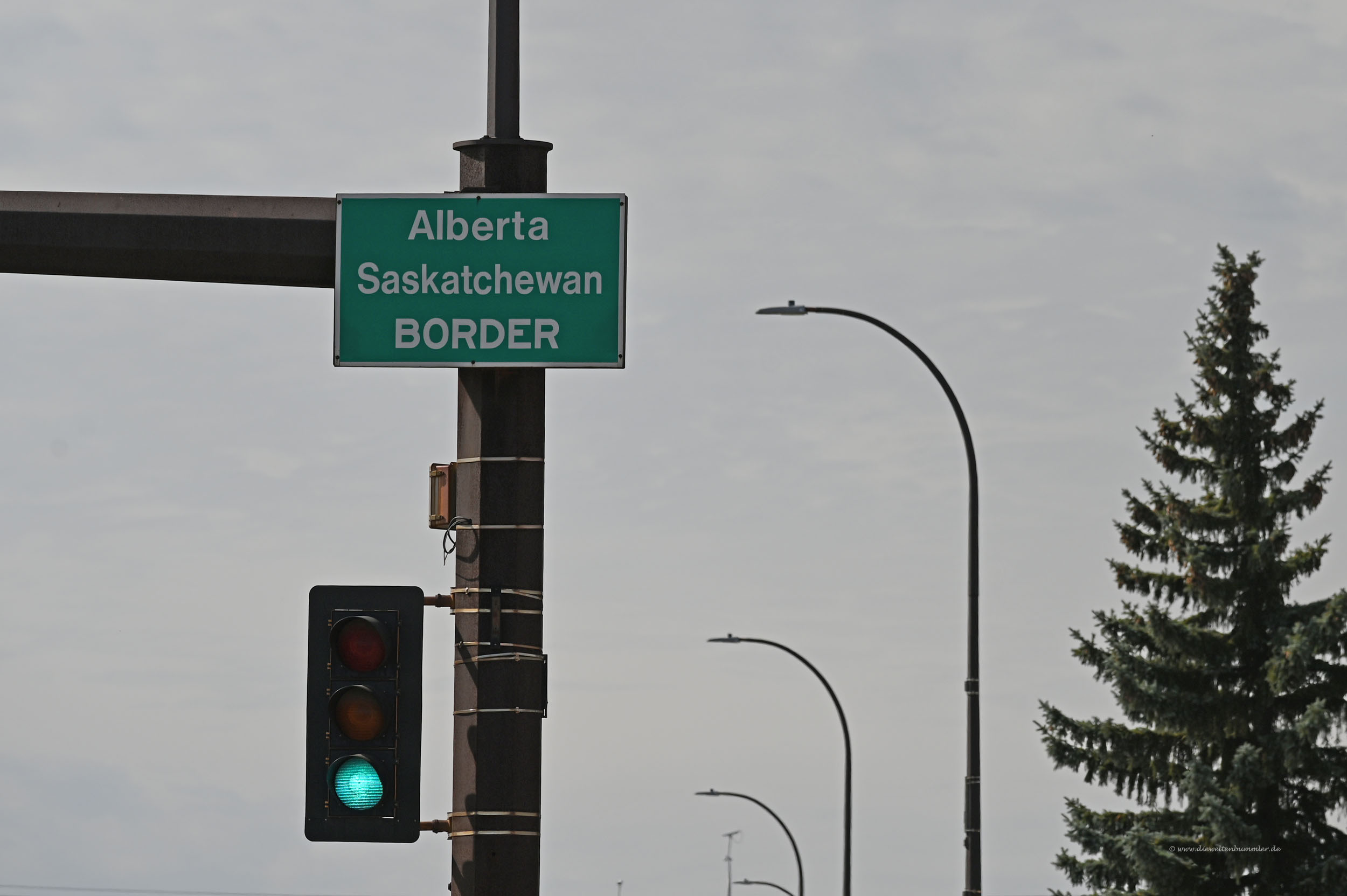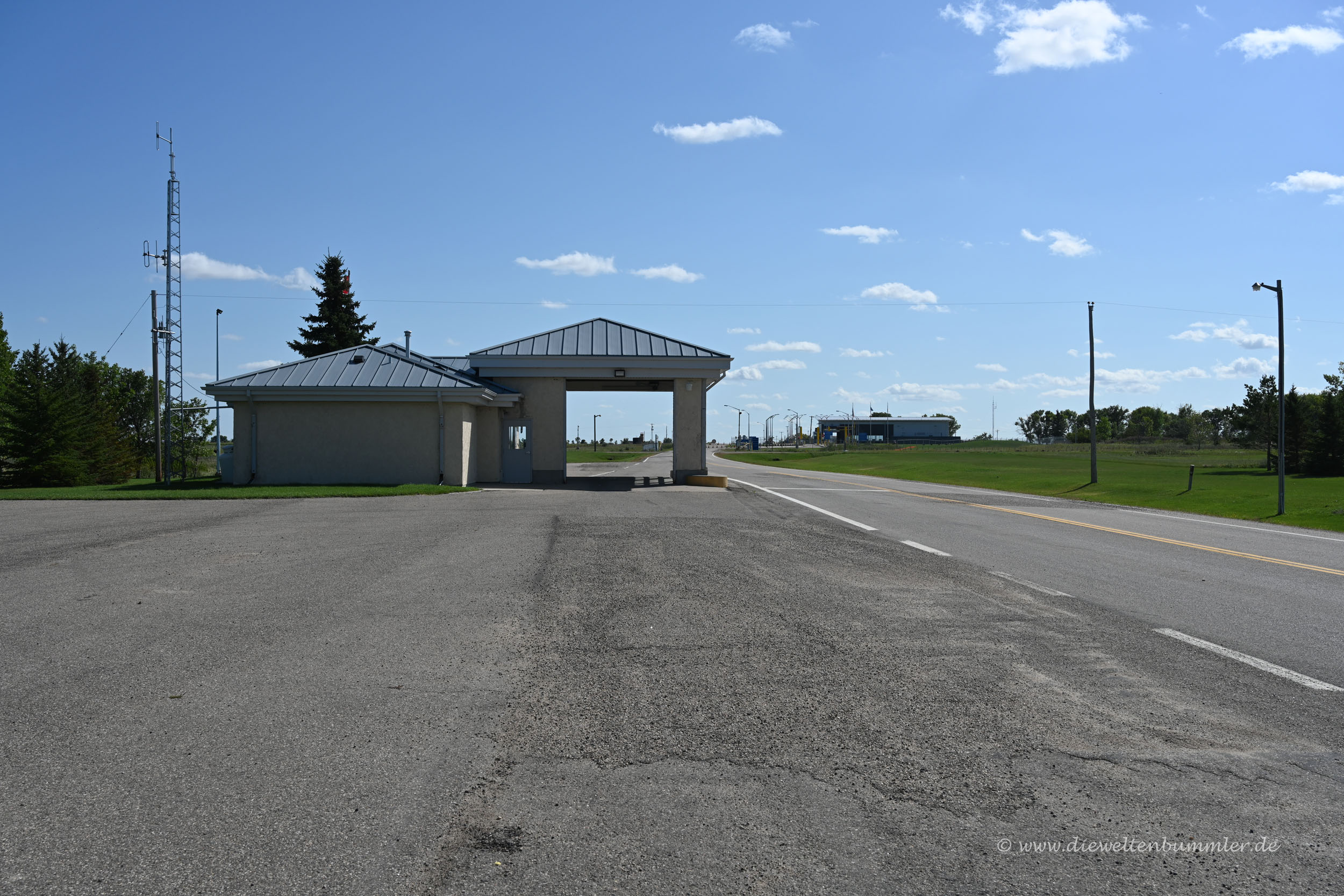 Nördlich von Sherwood erreichten wir den Grenzübergang nach Kanada. Bei der Ausreise passierten wir einfach die US-amerikanische Grenzstation, ohne dass sich jemand für uns interessiert hätte. Ich dachte, wir bekämen einen Ausreisestempel in den Pass, aber nichts. Die Einreise nach Kanada war aber nicht wirklich aufwendiger. Eine nette Grenzbeamtin begrüßte uns freundlich und stellte die Standardfragen. Da wir die einzigen am Grenzübergang waren, kamen wir auch noch ein wenig über die hiesige Tierwelt ins Gespräch, weil wir unterwegs einige Ground Squirrel sahen, die ständig vor uns über die Straße huschten.