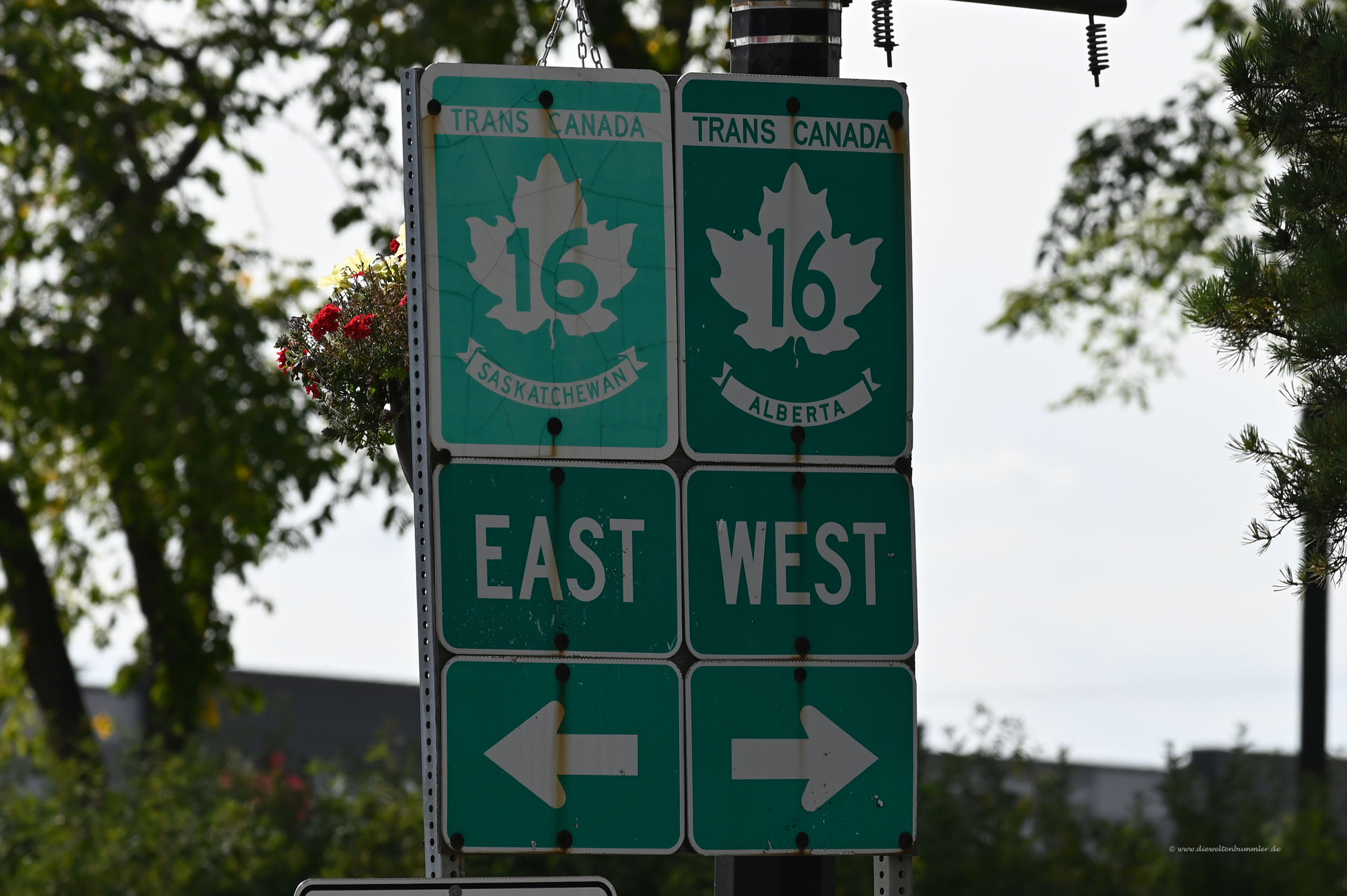 Das Problem erledigten wir dann am Abend bei Walmart in Regina. Dort kauften wir uns exakt das gleiche Gerät aber mit Kartenmaterial für beide Staaten. Das andere Gerät wurde damit zum Geschenk, wenn wir in Chicago sind. Weil wir weiter nach Nordwesten wollten, berührten wir den Trans-Canada-Highway nur kurz. Mit mehreren kleinen Pausen, unter anderem mit Ausblick auf den North Saskatchewan River fuhren wir in Richtung Highway 16 und folgten diesem nach Lloydminster.