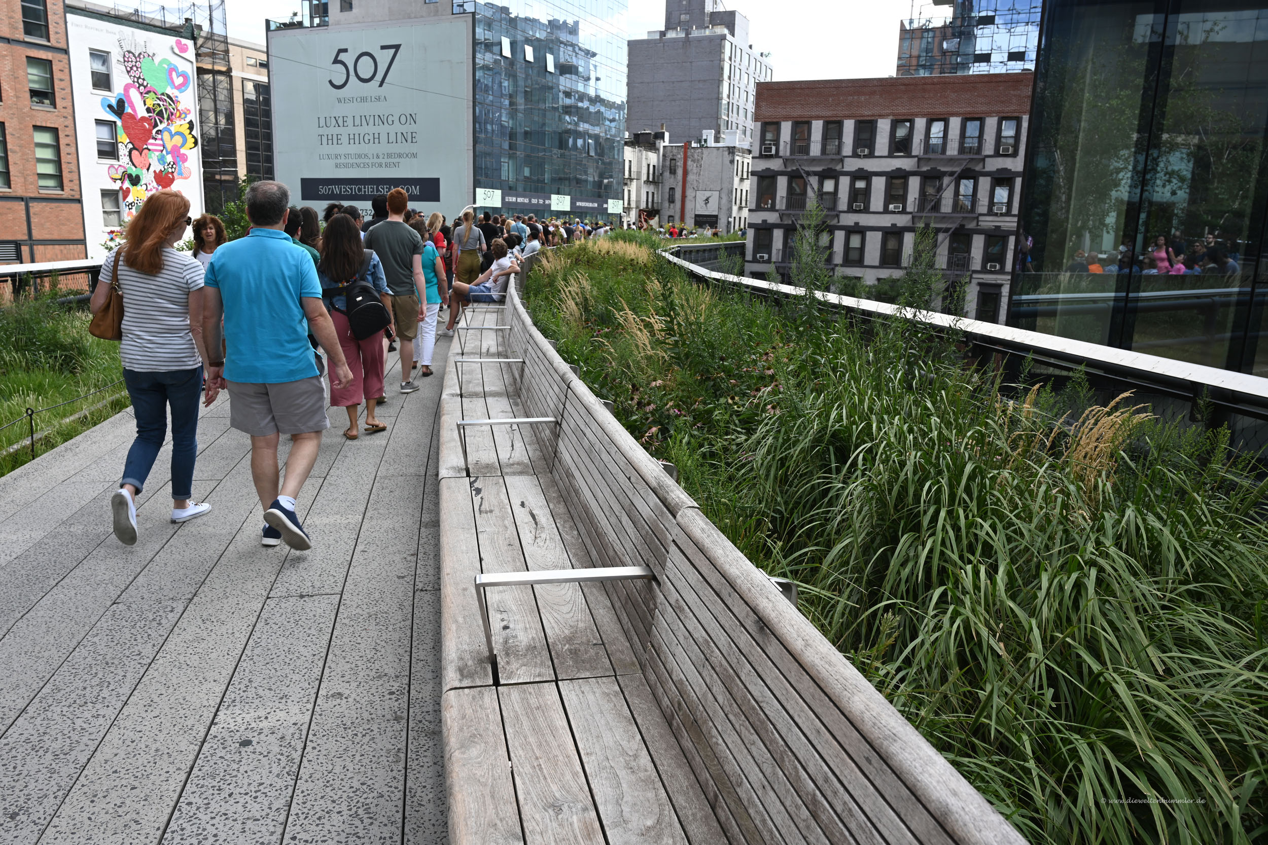 Die Highline ist eine ehemalige Bahntrasse, die zu einem Fußgängerweg umgestaltet wurde. Durch die Tatsache, dass die Bahn eine Hochbahn war, läuft man heute also nicht ebenerdig, sondern auf Brücken zwischen den Hochhäusern entlang. Bis zu einem Kunstmuseum, wo die Highline nach einem langen Fußmarsch ihr Ende findet, ist die Trasse teils begrünt und mit einigen kleinen Sitzgelegenheiten ausgestattet. Richtig nett gemacht und sollte man sich auf jeden Fall mal anschauen. Hin und wieder hat man auch tolle Ausblicke von kleinen Panoramaplätzen auf die weiter unten verlaufenden Straßen.