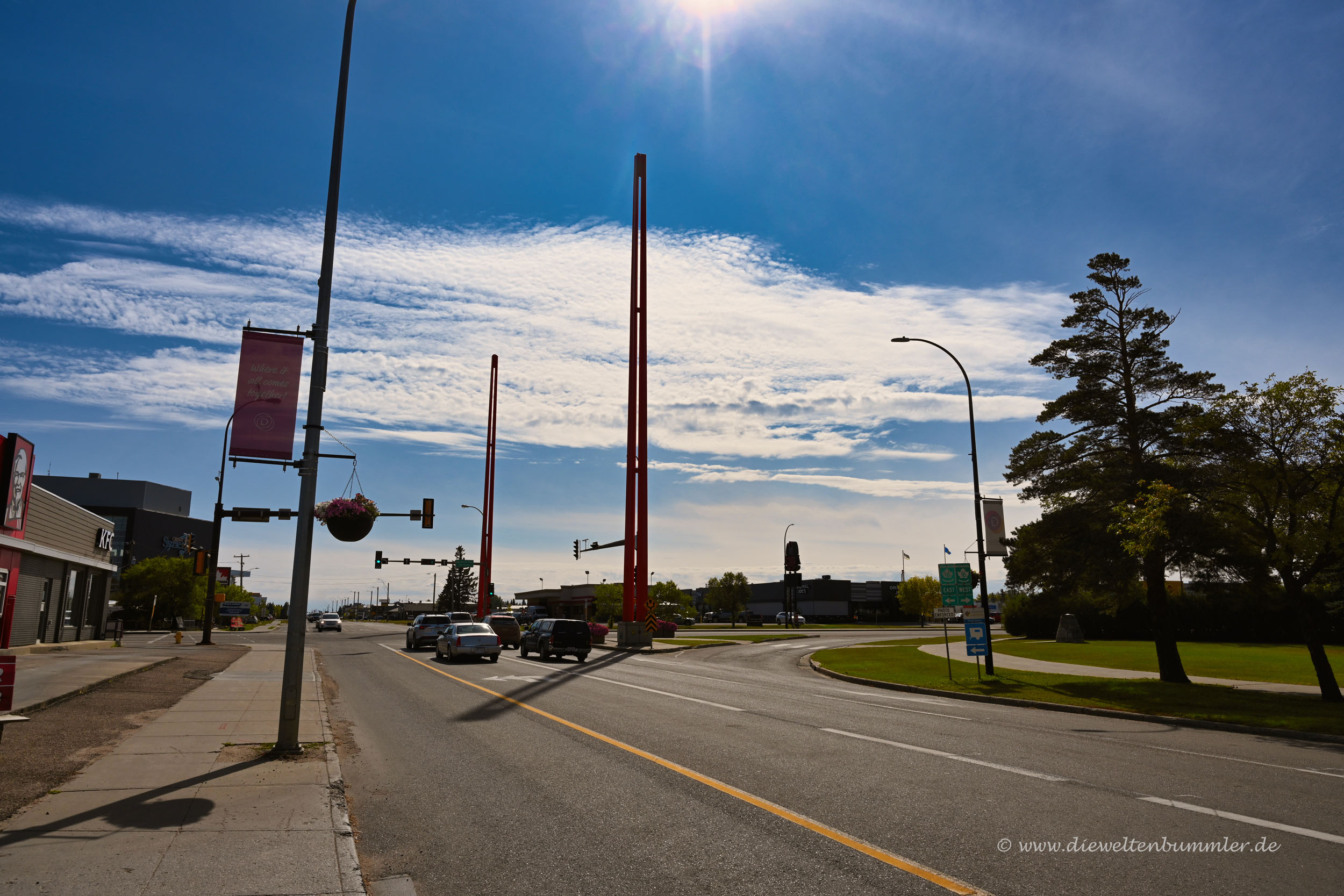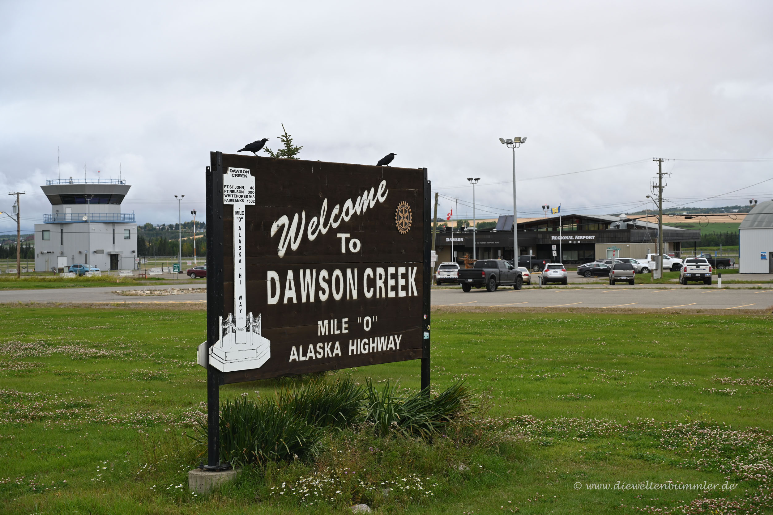 Ein paar kleinere Ortschaften durchquerten wir, bis wir das Ende von Alberta erreicht hatten. Nun sollte die weitere Fahrt durch die Provinz British Columbia verlaufen. Und relativ schnell kamen wir nach dem obligatorischen Fotostopp am Willkommensschild in die Stadt Dawson Creek.