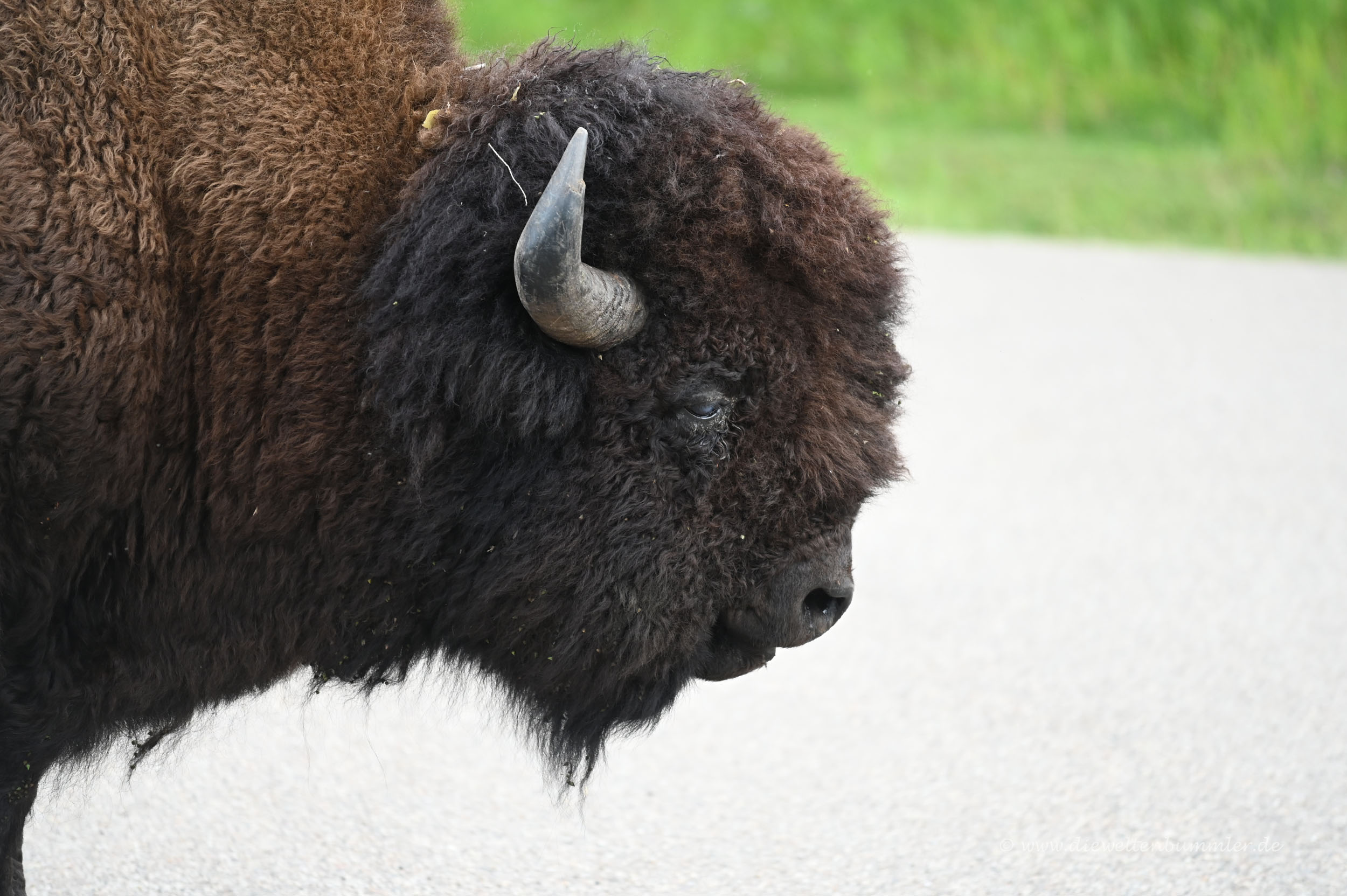 Ich mag Bisons. Sie sind so ruhig, ein wenig zottelig und sehen total entspannt aus. Teilweise stehen sie direkt am Straßenrand oder liegen sogar mitten auf der Straße. Einfach nur schön. Wir wussten noch nicht, dass wir später Dutzende Bisons in freier Natur sehen würden.