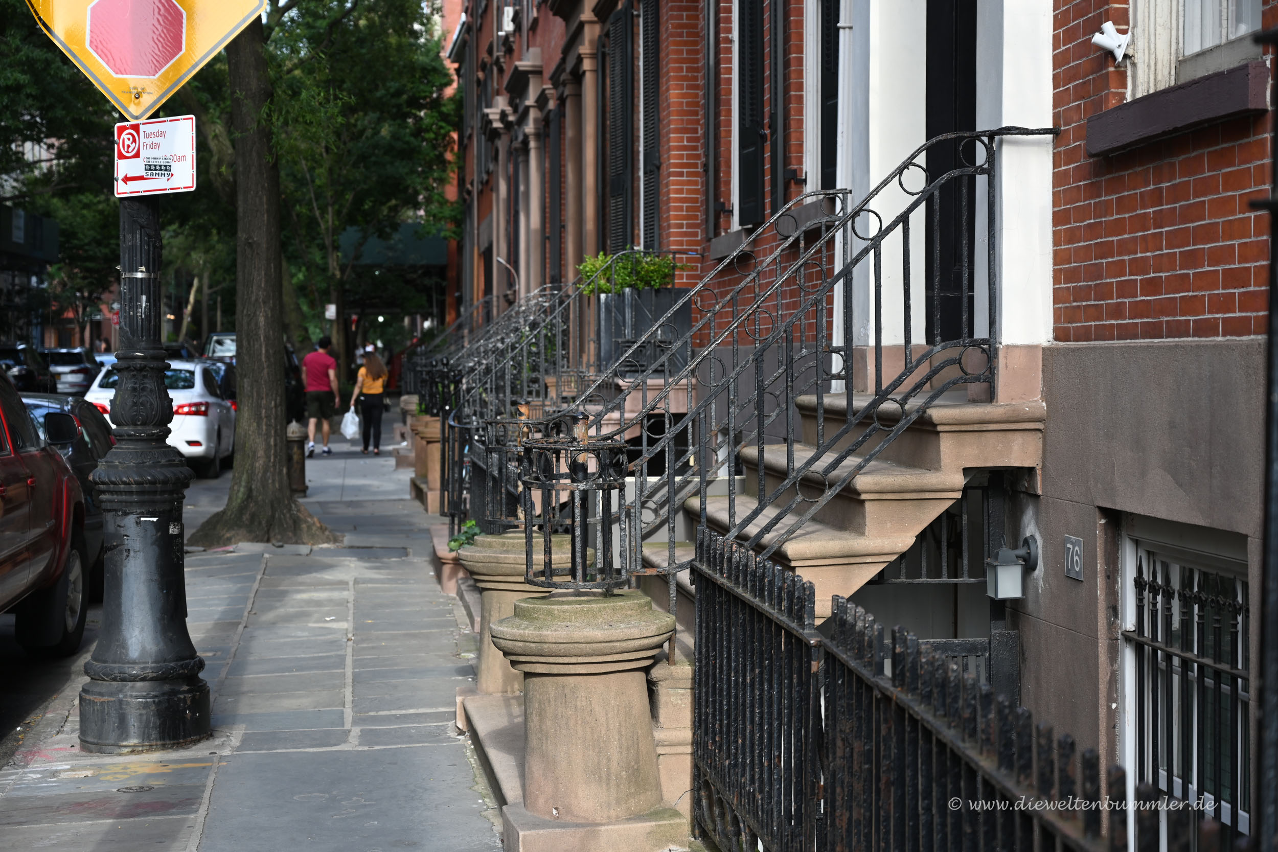 Das Greenwich Village ist auch nicht weit von hier entfernt. Und da wir eigentlich diese klassischen Wohnhäuser mit den Treppen und Feuerleitern noch gar nicht gesehen hatten, spazierten wir dort natürlich auch noch hin. Witzigerweise sind wir dabei auch an dem Wohnhaus aus der alten Serie „Friends“ vorbeigelaufen – ohne es gewusst zu haben. Denn wir kannten die Serie bis zu dem Zeitpunkt überhaupt nicht. Dass sich das ausgerechnet auf dieser Reise ändern würde, war uns noch nicht bewusst.