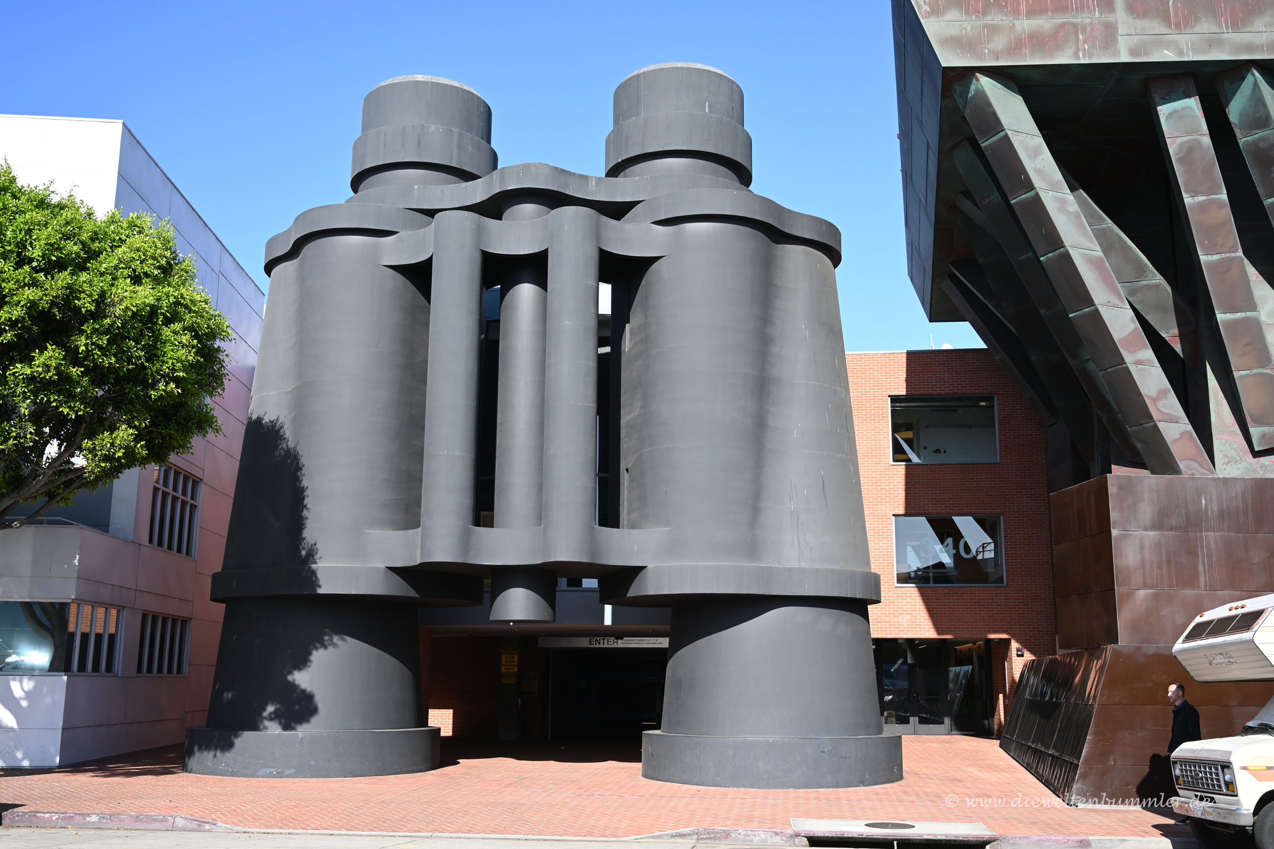 Mit einem großen Rundweg durch Downtown kamen wir dann später wieder am Strand aus und stiegen ins Auto ein. Auf der Main Street hielten wir noch am sogenannten Binocular Building an. Die Eingangsfront hat die Form eines überdimensionalen Fernglas, was wir gerne noch fotografieren wollten.