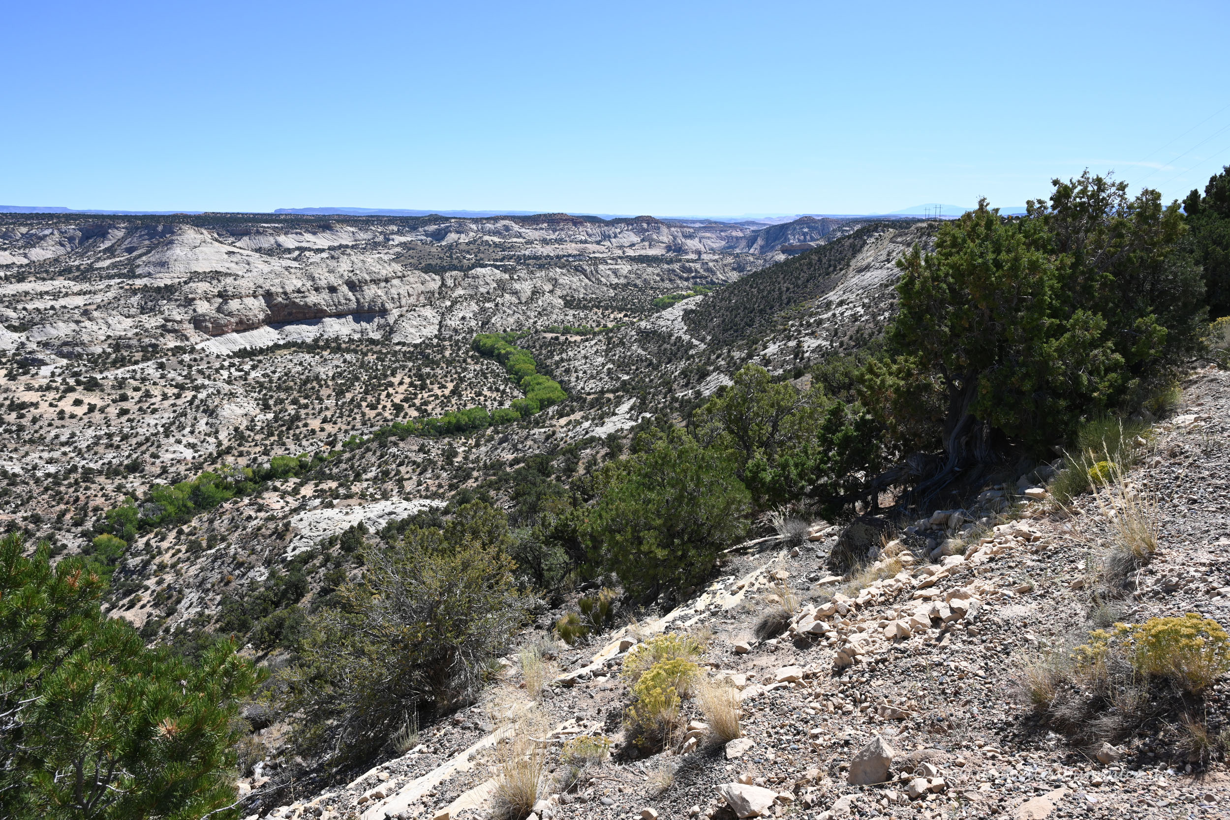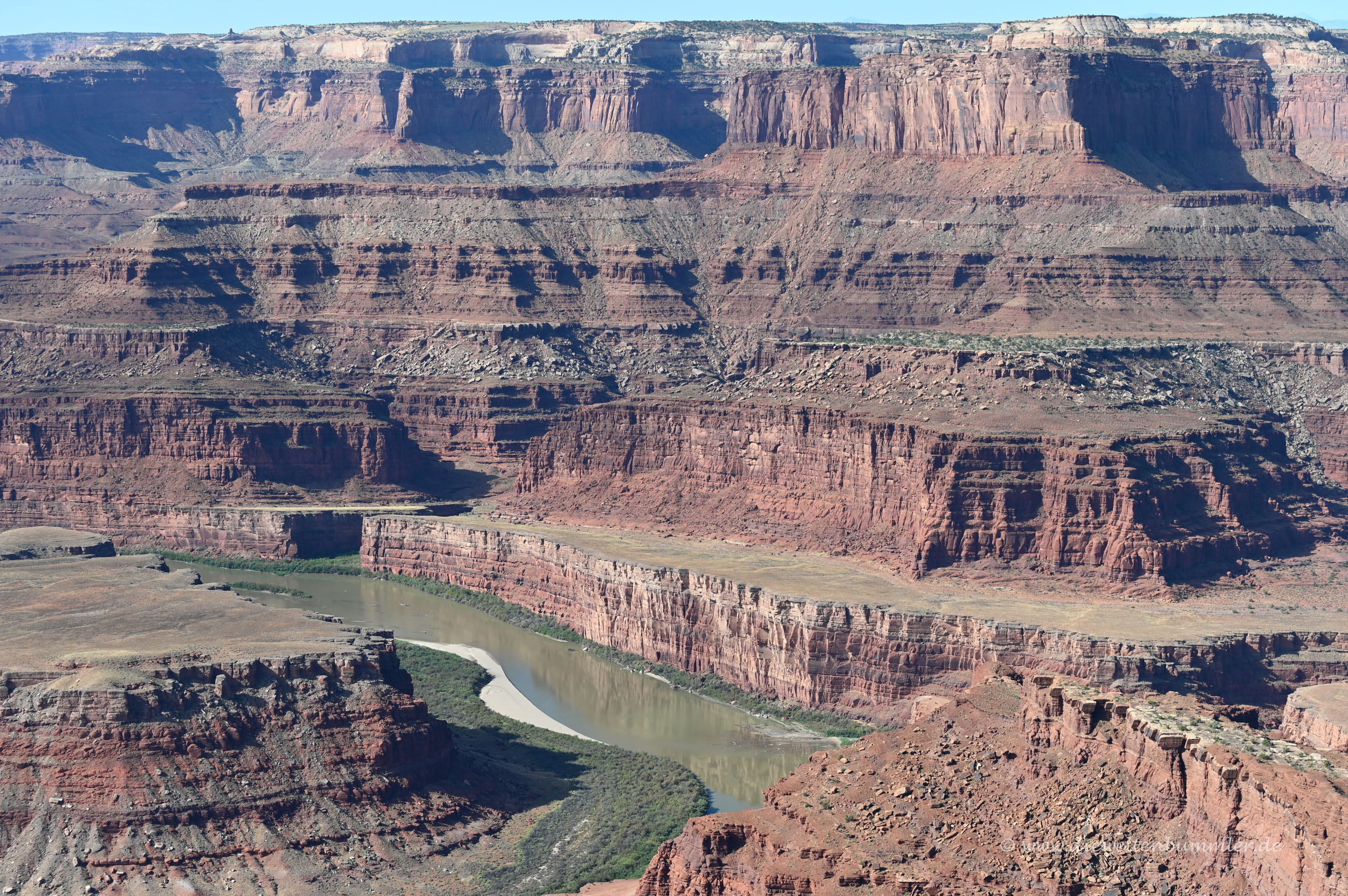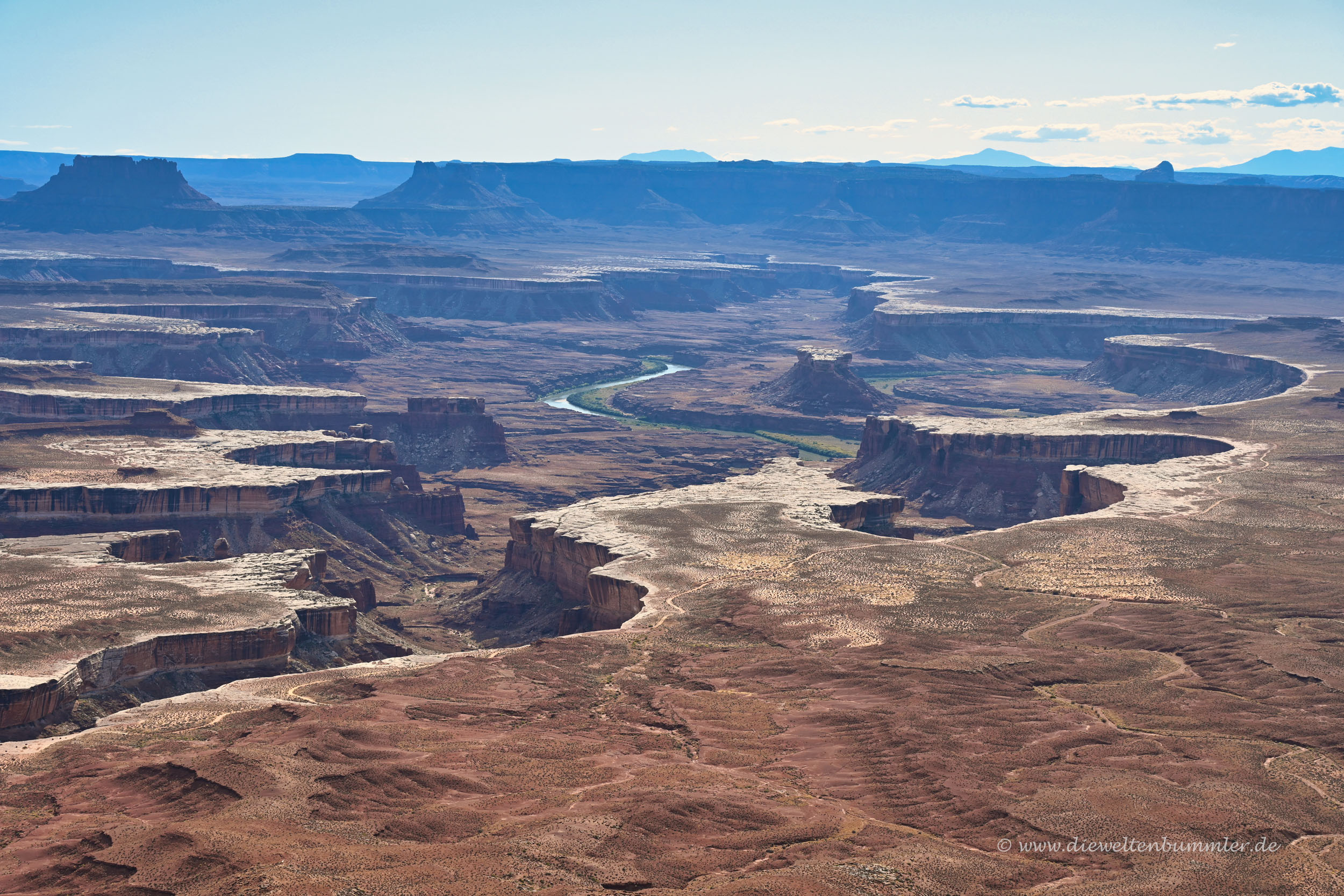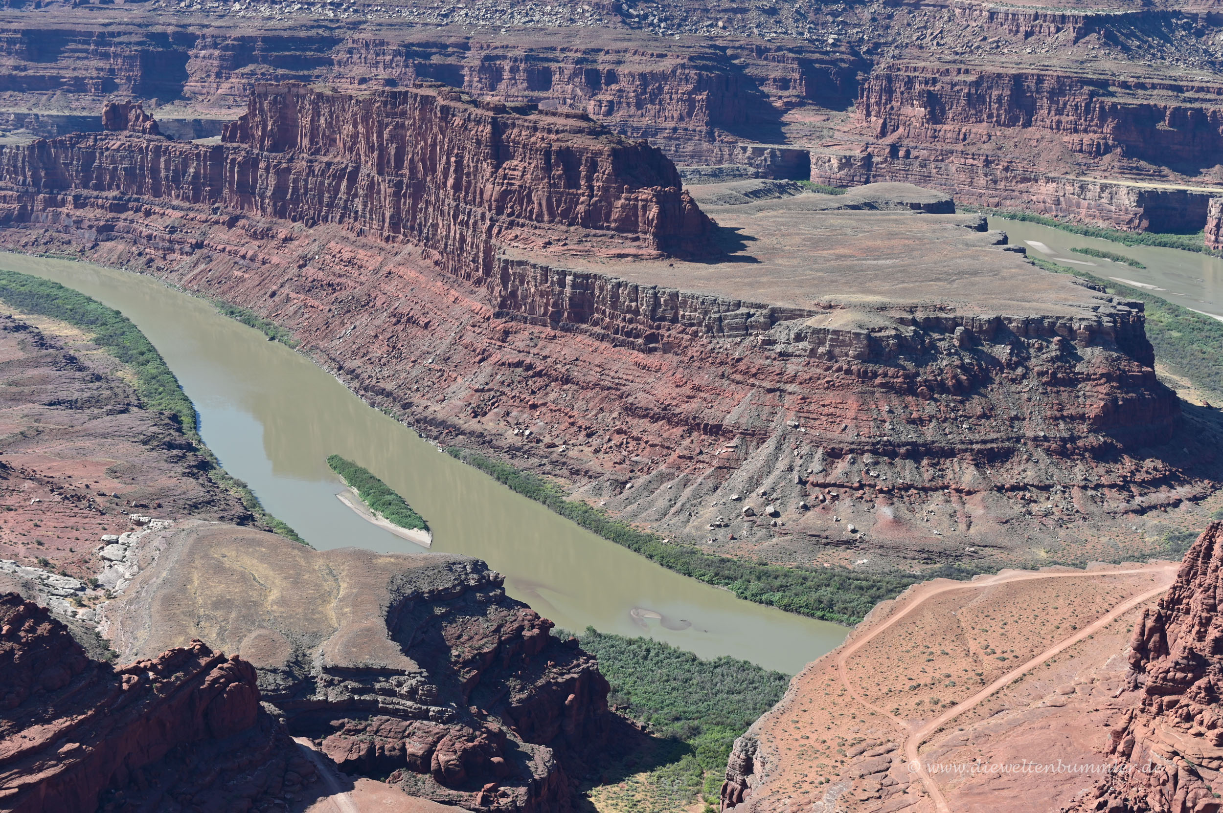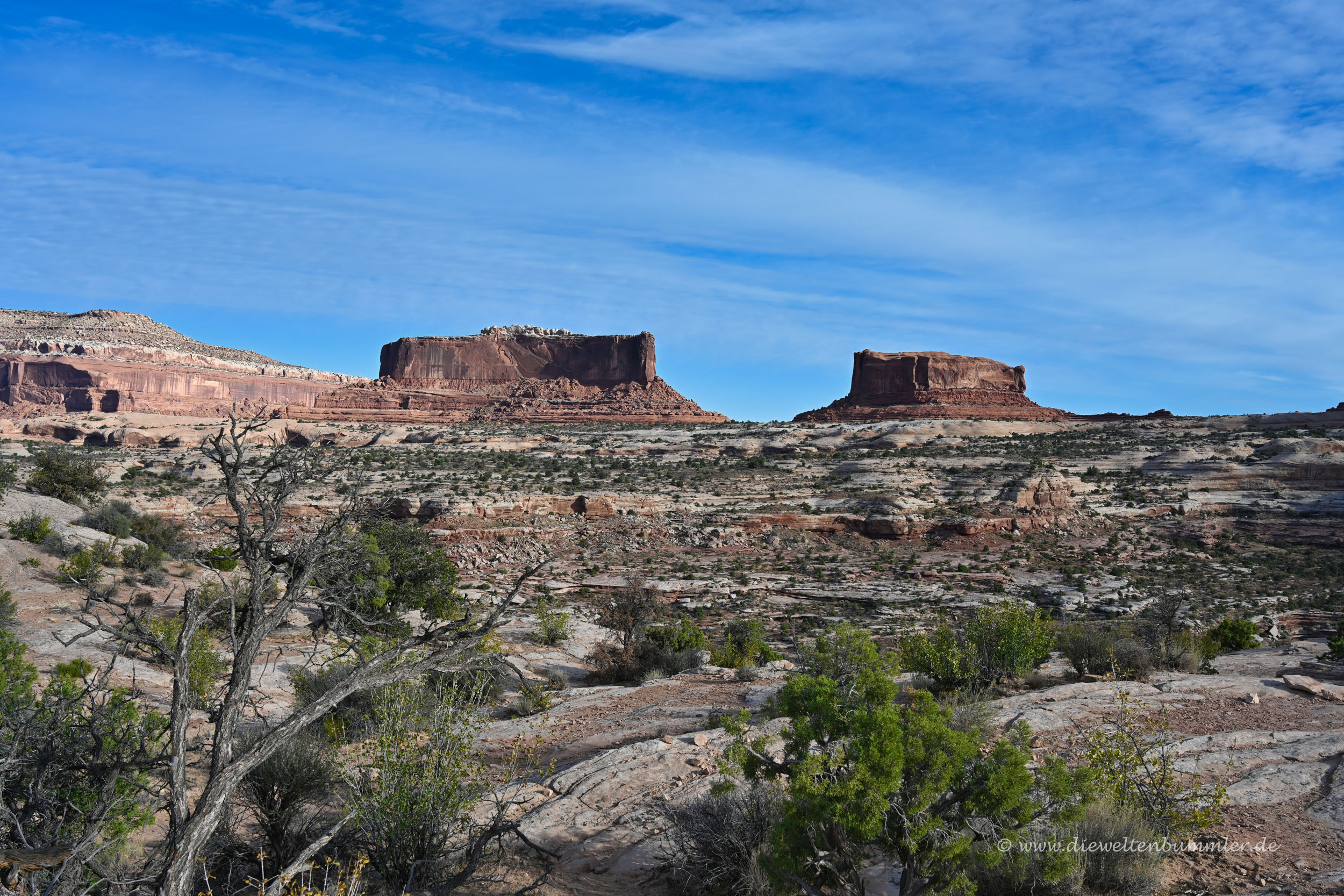 Dass noch weiter südlich der Green River (hier rede ich vom Fluss und nicht von dem Ort) in den Colorado River mündet, war kaum zu erkennen. Dennoch war es schön, auf dem Hochplateau zwischen diesen beiden Flusstälern zu stehen.