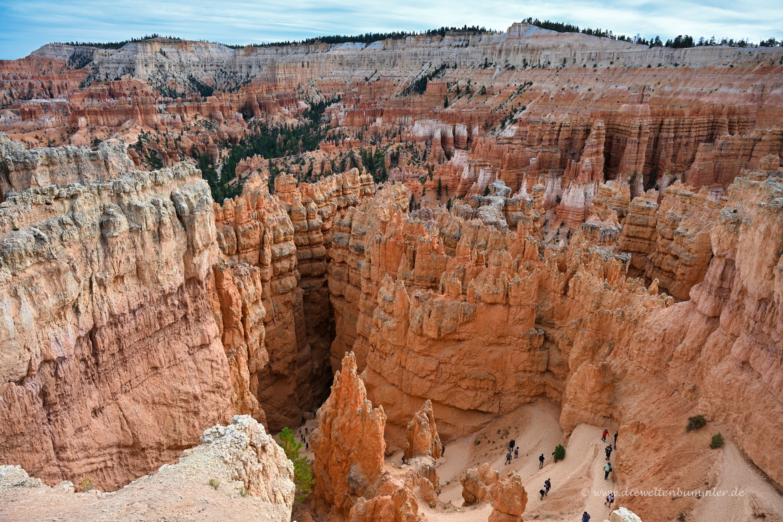 Wir zeigten am Parkeingang wieder unsere Jahreskarte vor und konnten direkt zu einem Parkplatz fahren, um das Besucherzentrum zu stürmen. Dort planten wir spontan eine Wanderung zwischen den berühmten Hoodoos hinab. Diese Tour ähnelte zwar ein wenig unserer Wandertour von damals, doch ein kleiner Teil würde anders verlaufen. Das reichte uns schon, denn auch der uns bekannte Teil ist absolut schön und sehenswert. Warum also nicht noch einmal?