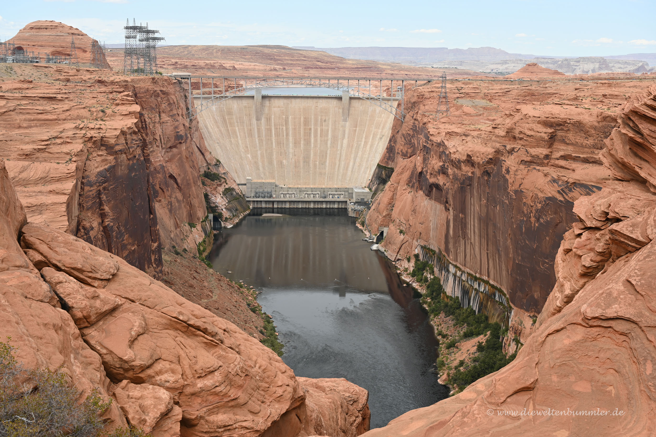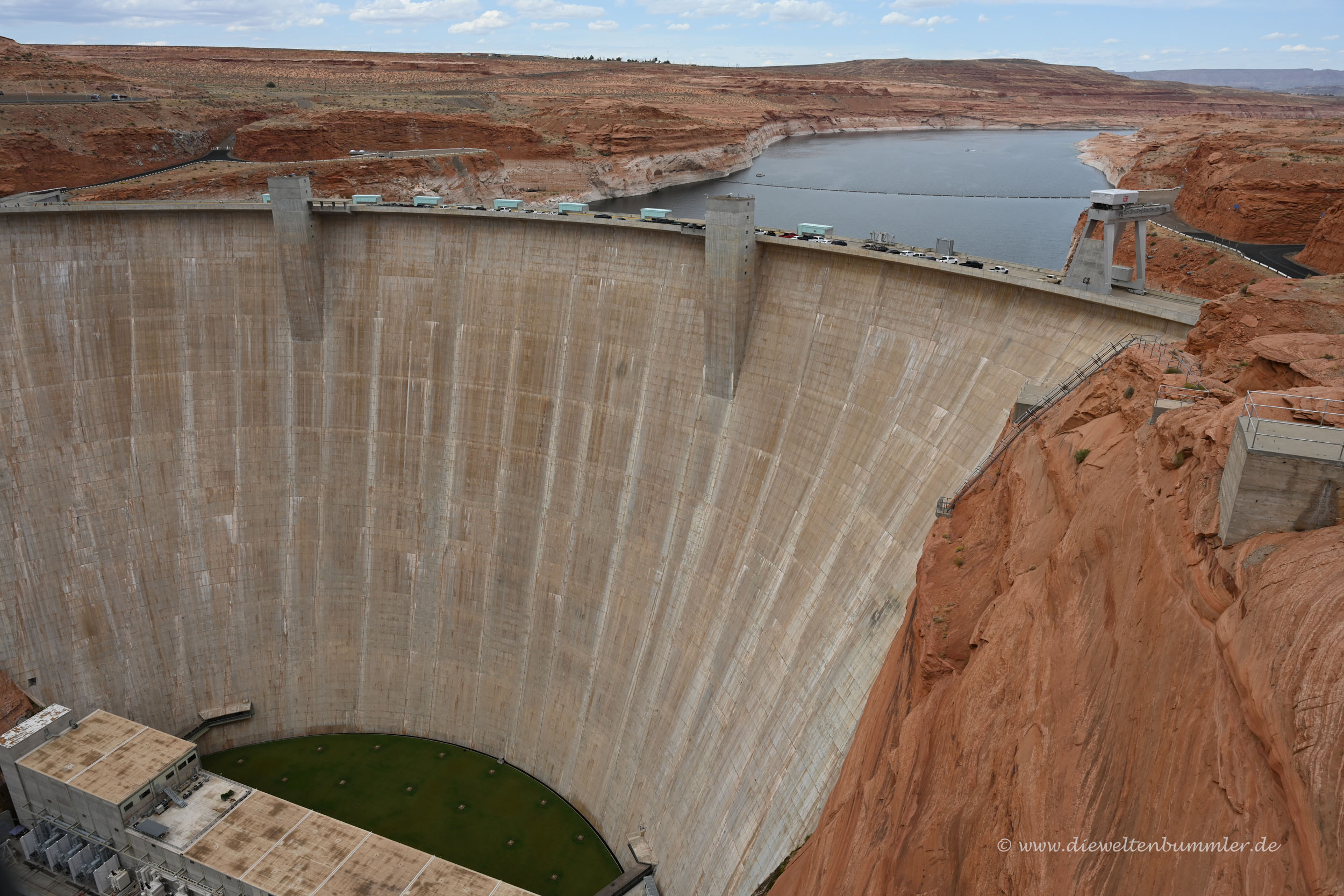 In Page nutzten wir auch mal die Gelegenheit, unseren Wagen zu waschen, der doch schon ganz schön mitgenommen aussah. Warum der Schaum pinkfarben aus dem Automaten kam, werden wir nicht erfahren. Außerdem schauten wir uns auch noch das Innere eines Supermarktes an, weil wir mal wieder Getränke brauchten und dann ging es auch schon wieder langsam zurück nach Kanab. Doch unterwegs wollten wir noch ein paar Dinge besichtigen. So zum Beispiel den sehenswerten Staudamm vom Lake Powell am Glen Canyon. Auch wieder einmal beeindruckend.