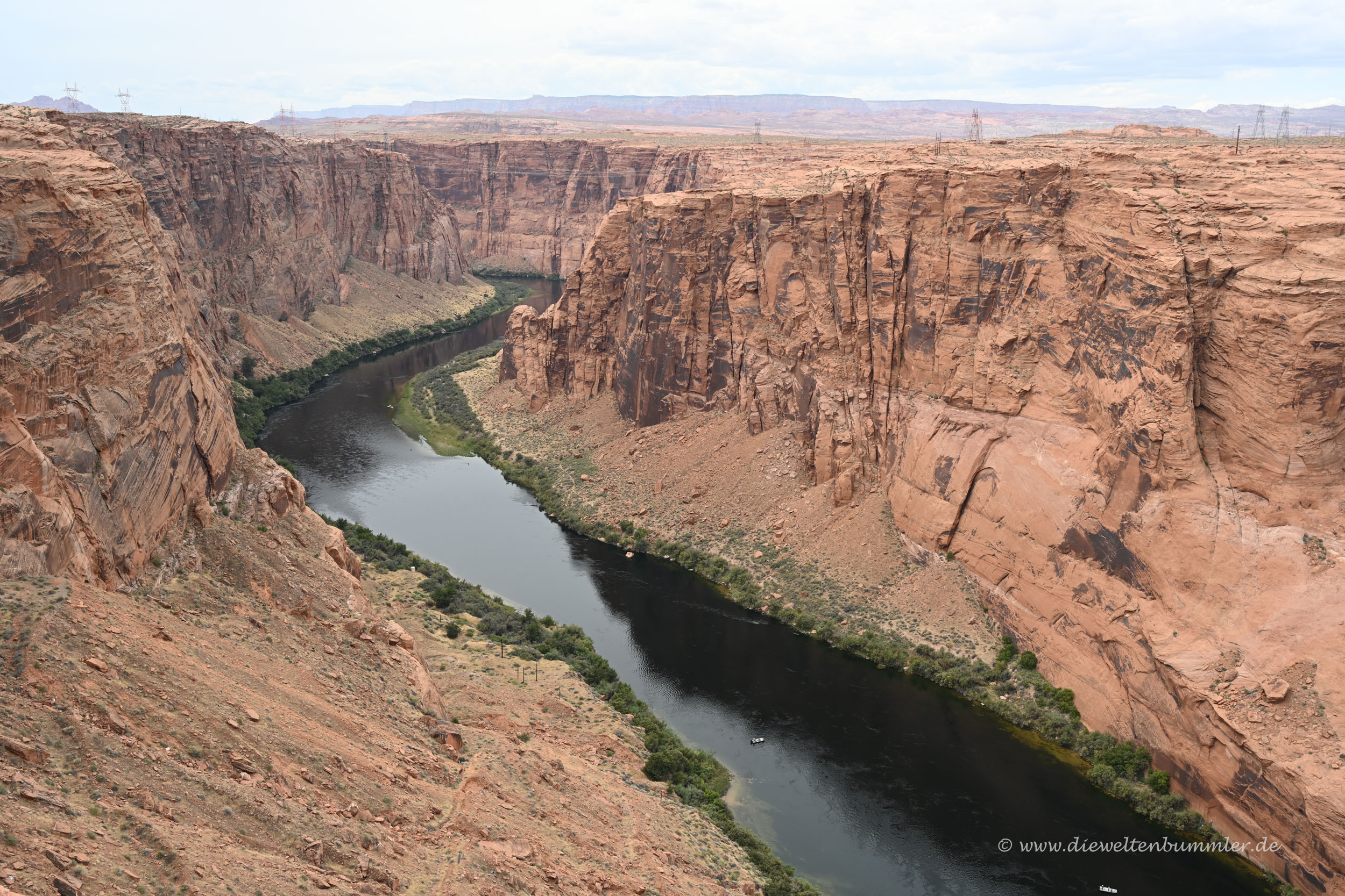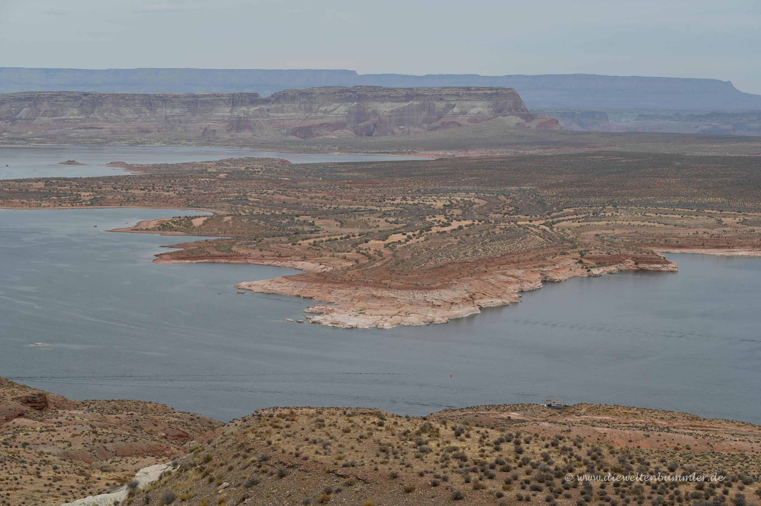 Leider war das Wetter nicht ganz so prickelnd und es wollte sogar ein wenig regnen, dennoch stoppten wir natürlich an einem Aussichtspunkt auf den Lake Powell oder wenigstens auf einen kleinen Teil dieses riesigen Stausees.