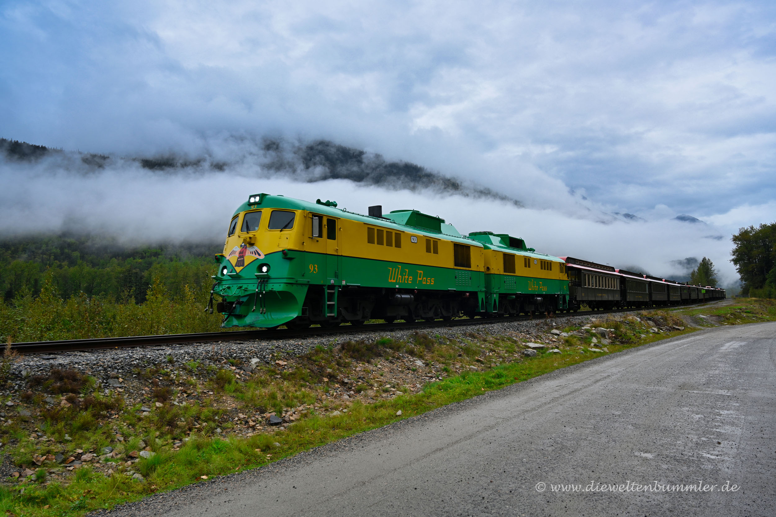 Mit dem Zug kann man auch heute noch bis zum White Pass fahren, eine beliebte Ausflugsstrecke. Aber die Verbindung geht auch weiter und es besteht die Möglichkeit in gut dreieinhalb Stunden von Skagway bis Whitehorse zu fahren.