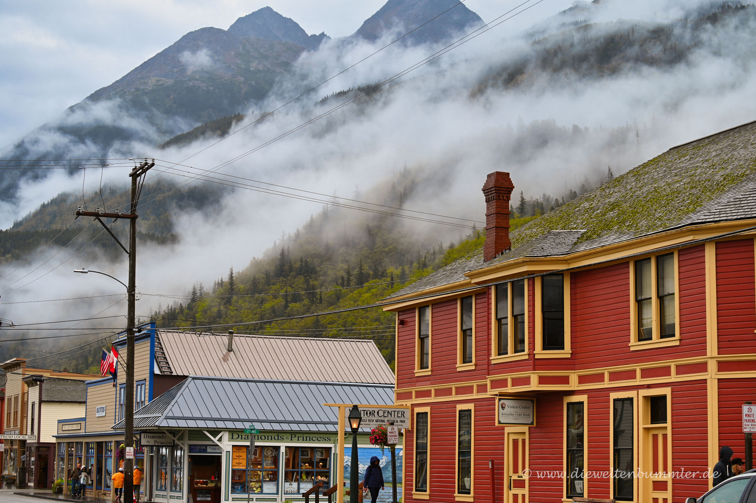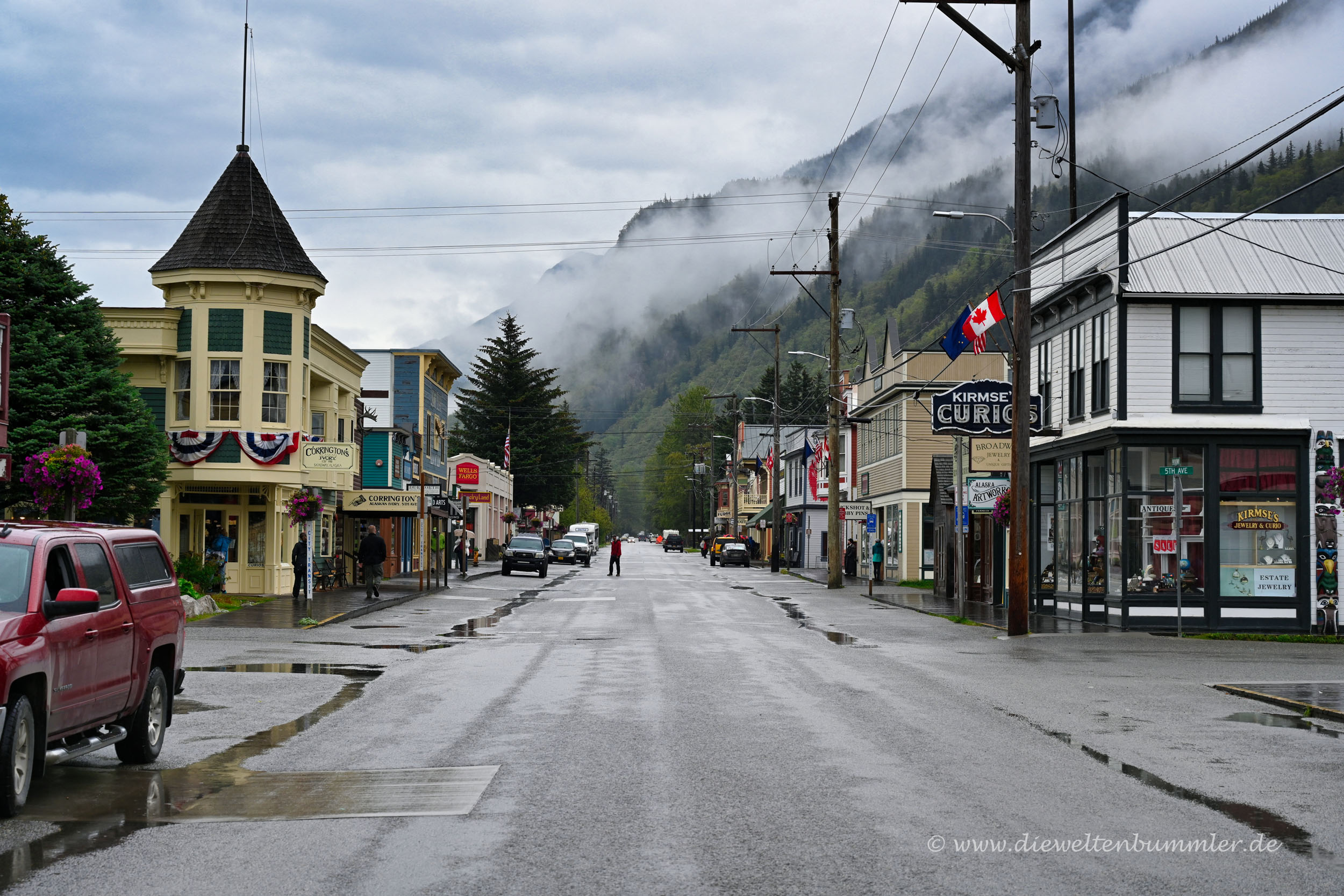 Zugegeben, Skagway liegt nicht im weiten Hinterland von Alaska. Es ist nicht Fairbanks, Anchorage oder gar Nome. Skagway befindet sich an einem Fjord nahe der Grenze zu Kanada und in einem schmalen Küstenstreifen, an dem man über Land nicht in den Rest Alaskas gelangt. Entweder man fliegt, man fährt mit dem Schiff oder man durchquert das kanadische Yukon-Territorium, um von Skagway in die anderen Teile Alaskas zu gelangen.