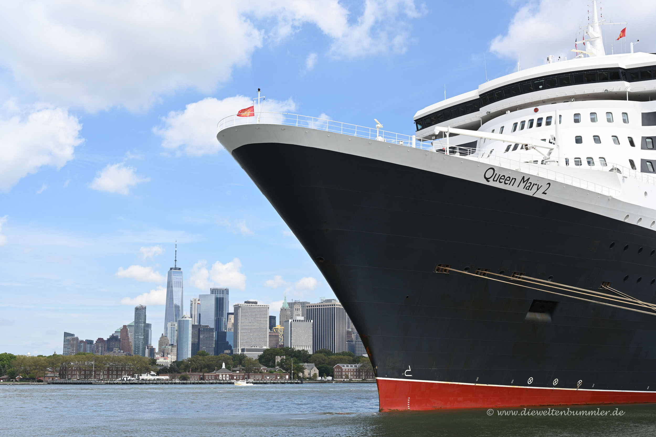 Das sprach uns einfach nicht an und wir ließen es bleiben. Daher gibt es Fotos nur von außen und außerdem noch ein Vergleichsbild mit der aktuellen Queen Mary 2 im Hafen von New York: