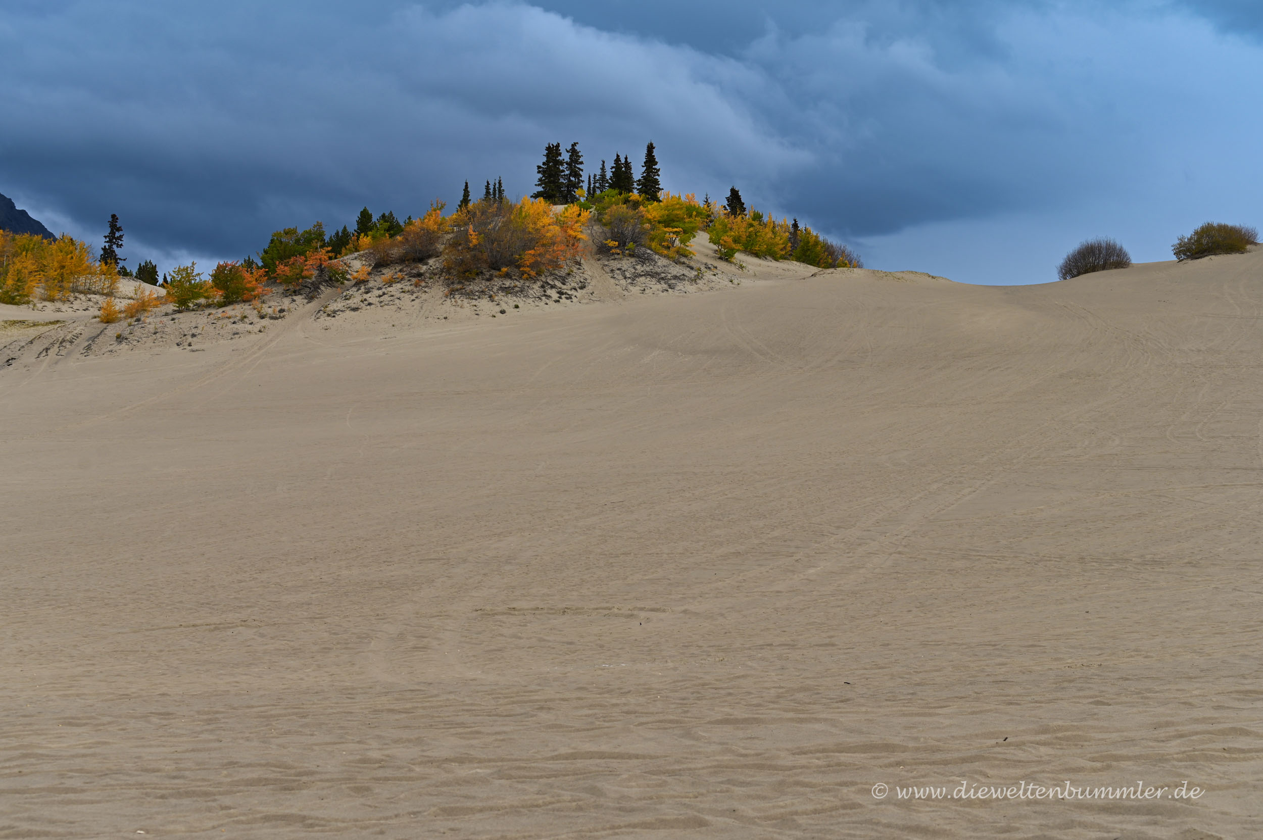 Sie befindet sich am Nordrand des Ortes und unmittelbar am Klondike Highway. Man parkt, steigt aus und man steht im Sand. Diese Sanddüne ist rund zweieinhalb Quadratkilometer groß und wird gerne als die kleinste Wüste der Welt bezeichnet.