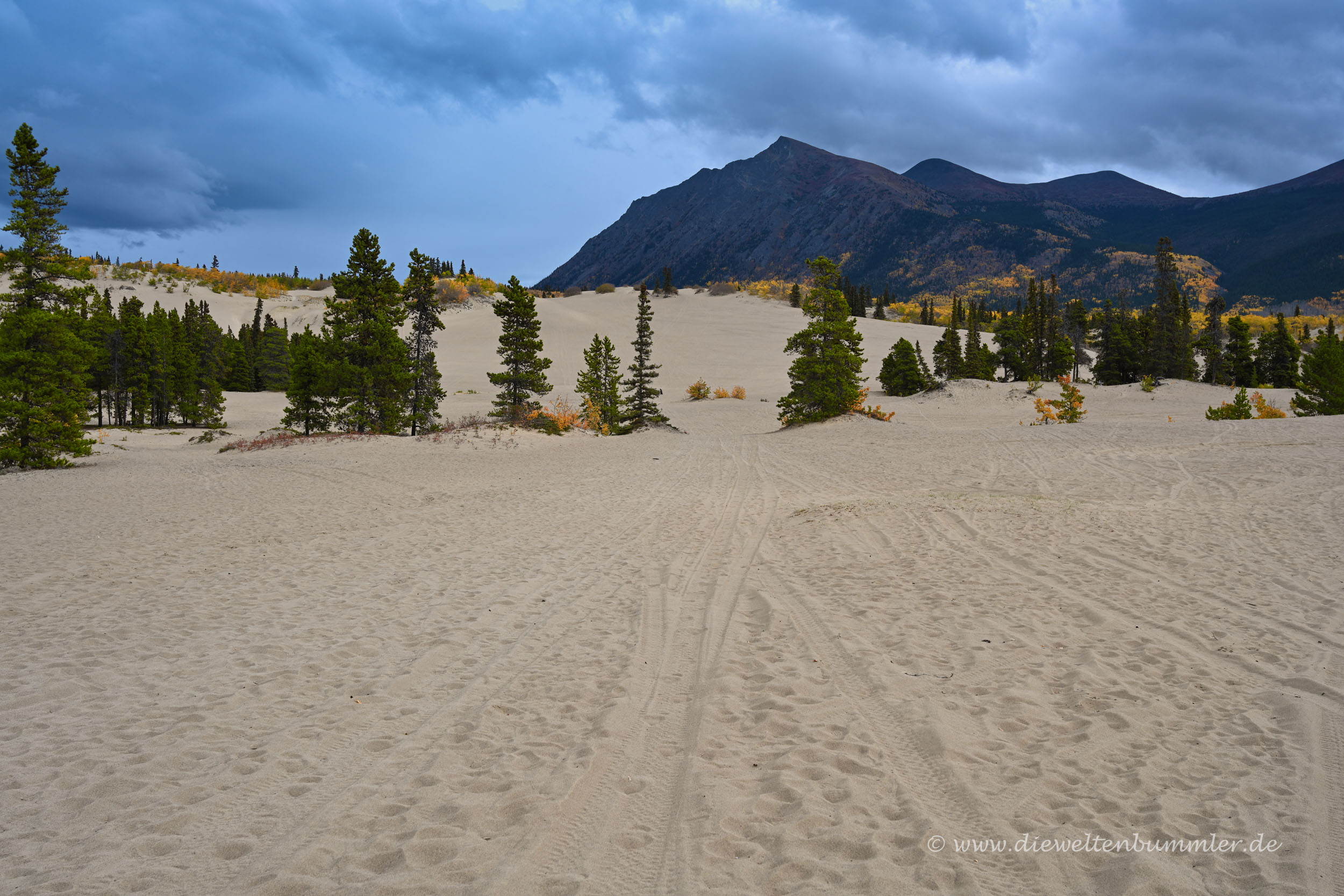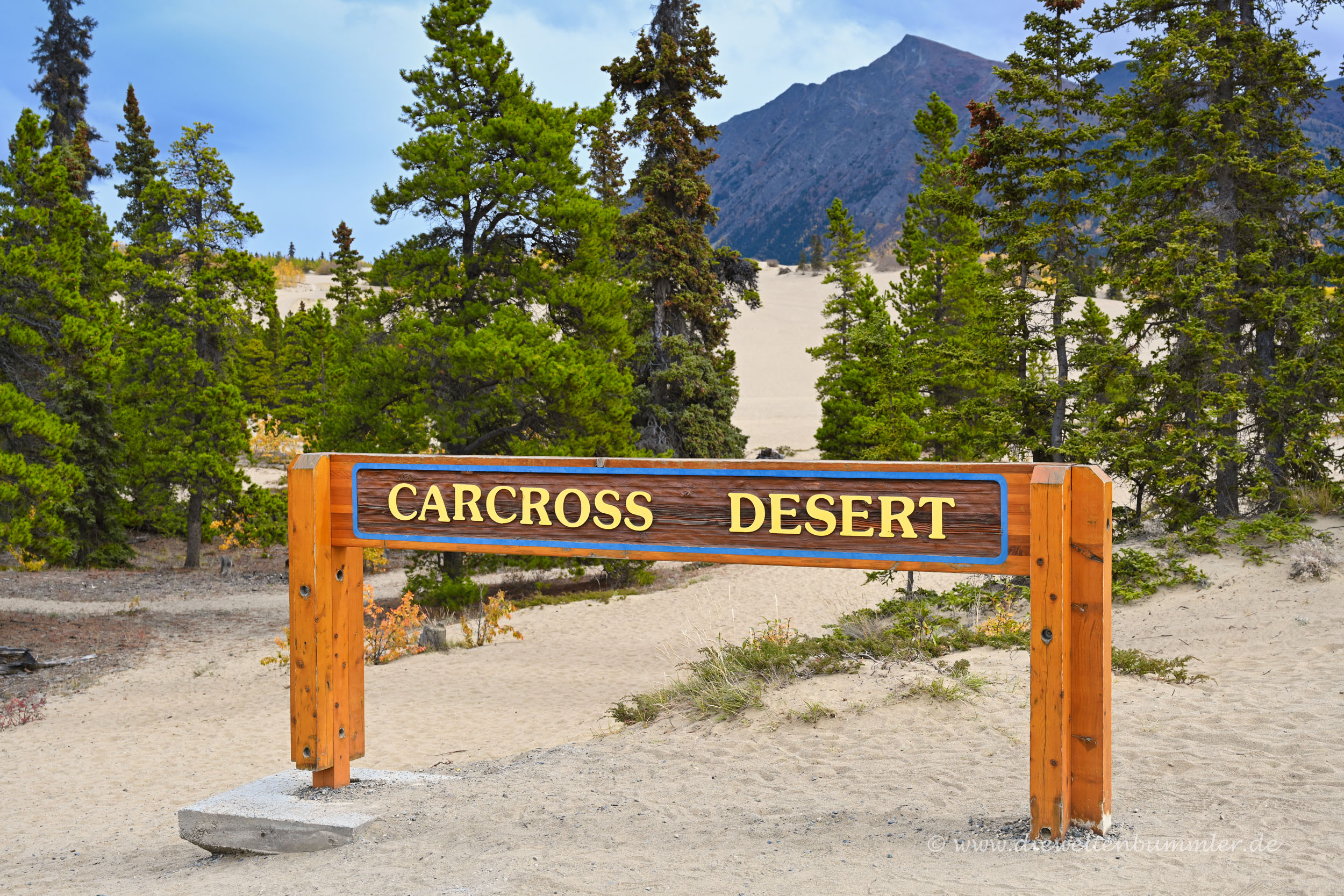 Mitten in der weiten baumreichen Wildnis im kanadischen Territorium Yukon befindet sich eine Sanddüne – die Sanddüne bei Carcross. Carcross ist die Ortschaft, die sich am südlichen Abschnitt des Klondike Highways befindet.