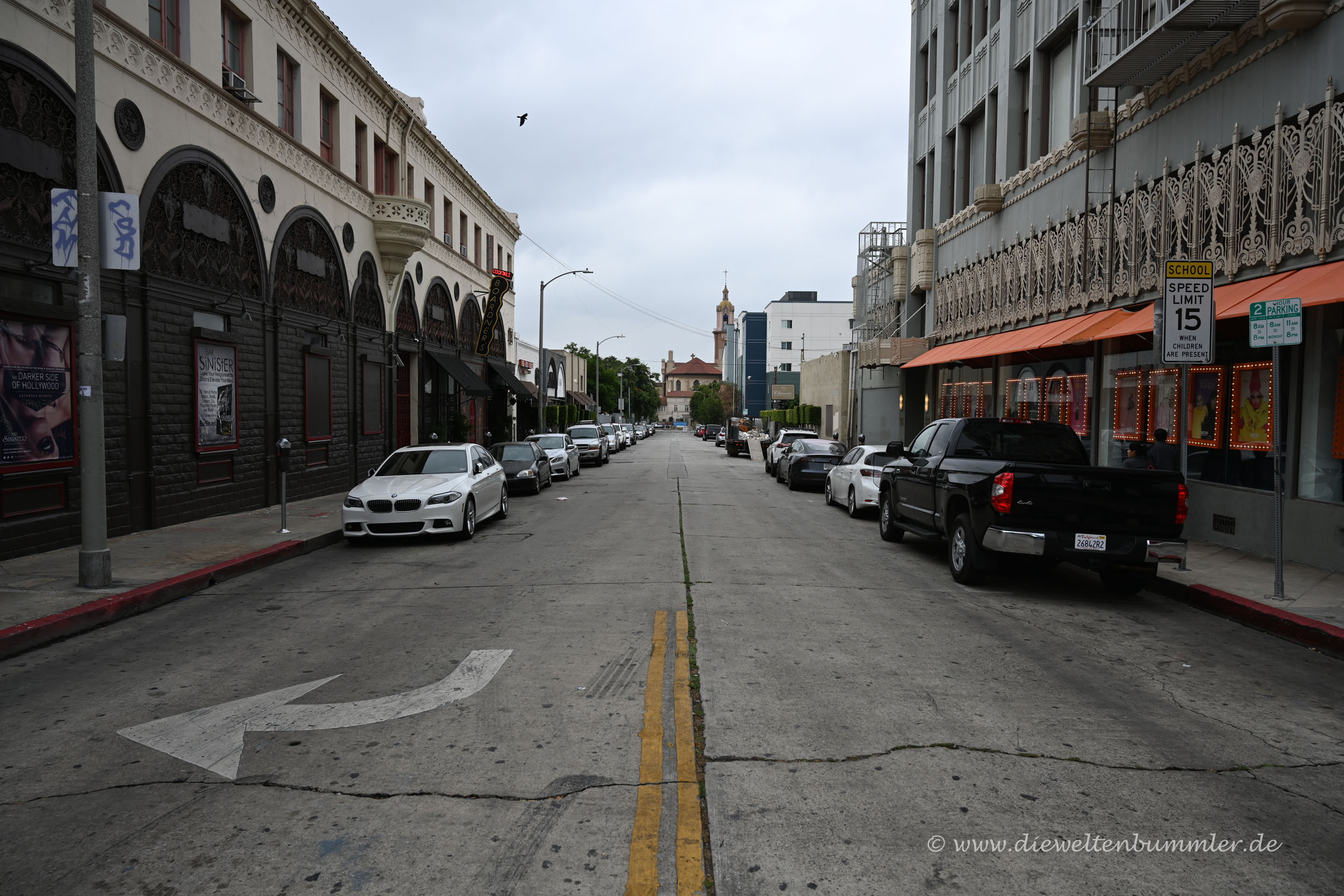 Ganz im Gegenteil, manche Stellen der berühmten Straße wirkten auf mich sogar etwas heruntergekommen. Einige der Sterne auf dem Bürgersteig waren zum Beispiel kaputt und das offensichtlich schon länger. Die Seitenstraßen, die vom Hollywood Boulevard abzweigten, wirkten wenig einladend und waren alles andere, aber nicht salonfähig.