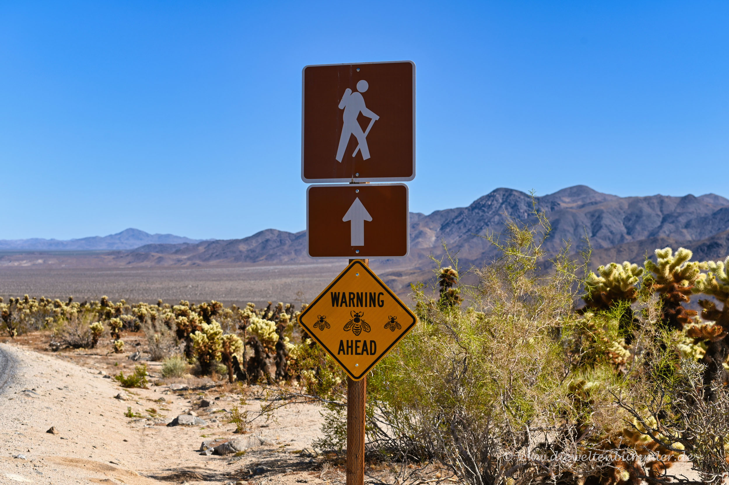 Auch hier gibt es wieder einen kleinen rund 400 Meter kurzen Rundweg. Nicht viel, aber schön. Interessant übrigens auch das Schild, das hier vor Bienen warnt. Diese scheinen wohl besonders von dieser Art Kaktus begeistert zu sein. Wir haben aber keine gesehen. Möglicherweise war das die falsche Jahreszeit.