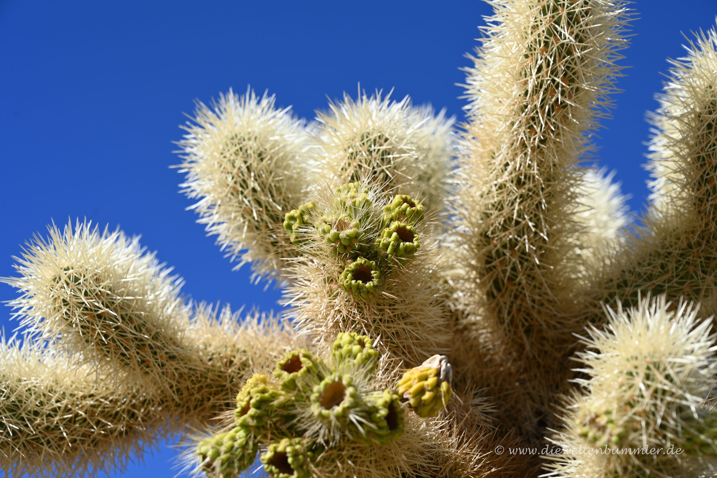 Wenn ich also in eine Kaktus fallen muss, dann vermutlich am wenigsten in einen Cholla Kaktus (bei näherer Überlegung schmerzen andere Kakteen nicht weniger, aber sie sind nicht so anhänglich wie eine Klette).