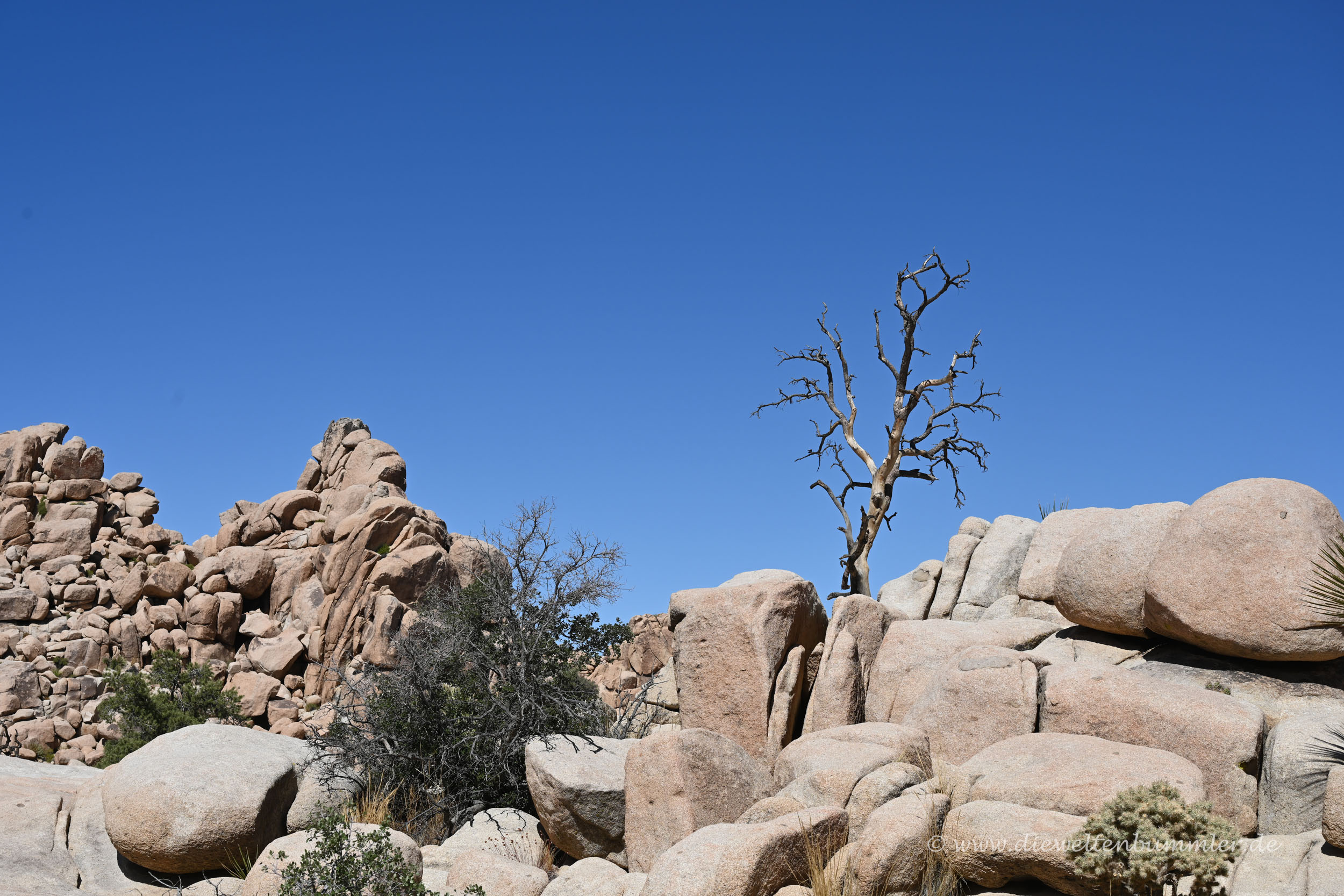 Der Schwerpunkt liegt, wie der Name schon verrät, auf den Joshua Trees, auf Deutsch den Josua-Palmlilien. Allerdings kannten wir diese auch schon von einer früheren Fahrt durch einen anderen Teil Kaliforniens. Dort hatten wir auch schon relativ viele dieser Bäume auf einem Fleck gesehen.