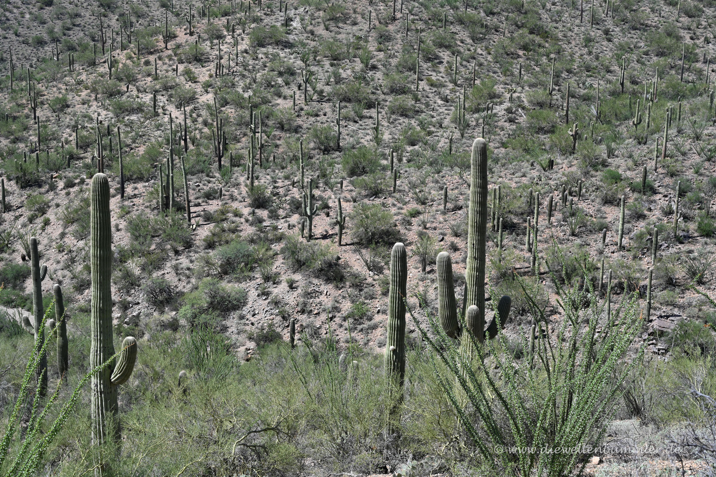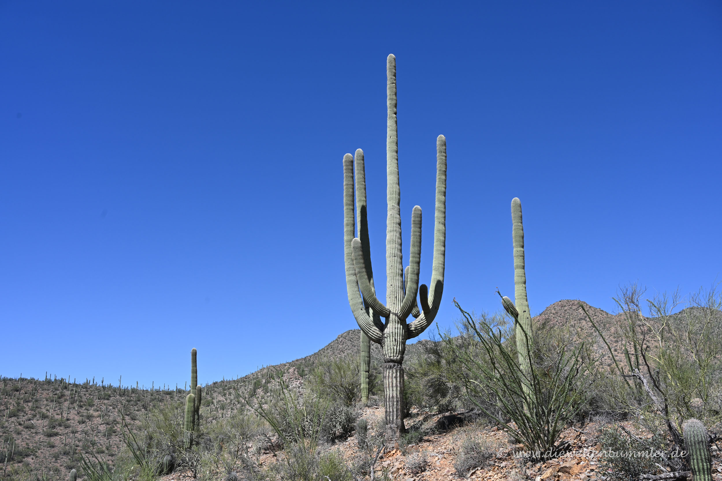 Aber was für welche, denn es sind die Saguaro-Kakteen. Diese Art der Kakteen wächst weltweit eigentlich nur im Süden von Arizona, ein wenig in Kalifornien und auch angrenzend auf mexikanischer Seite. Aber das war es dann auch schon. Trotzdem dürfte wohl ein Jeder mal einen Saguaro-Kaktus gesehen haben. Denn das sind – zumindest für mich – die Klassiker unter den Kakteen.