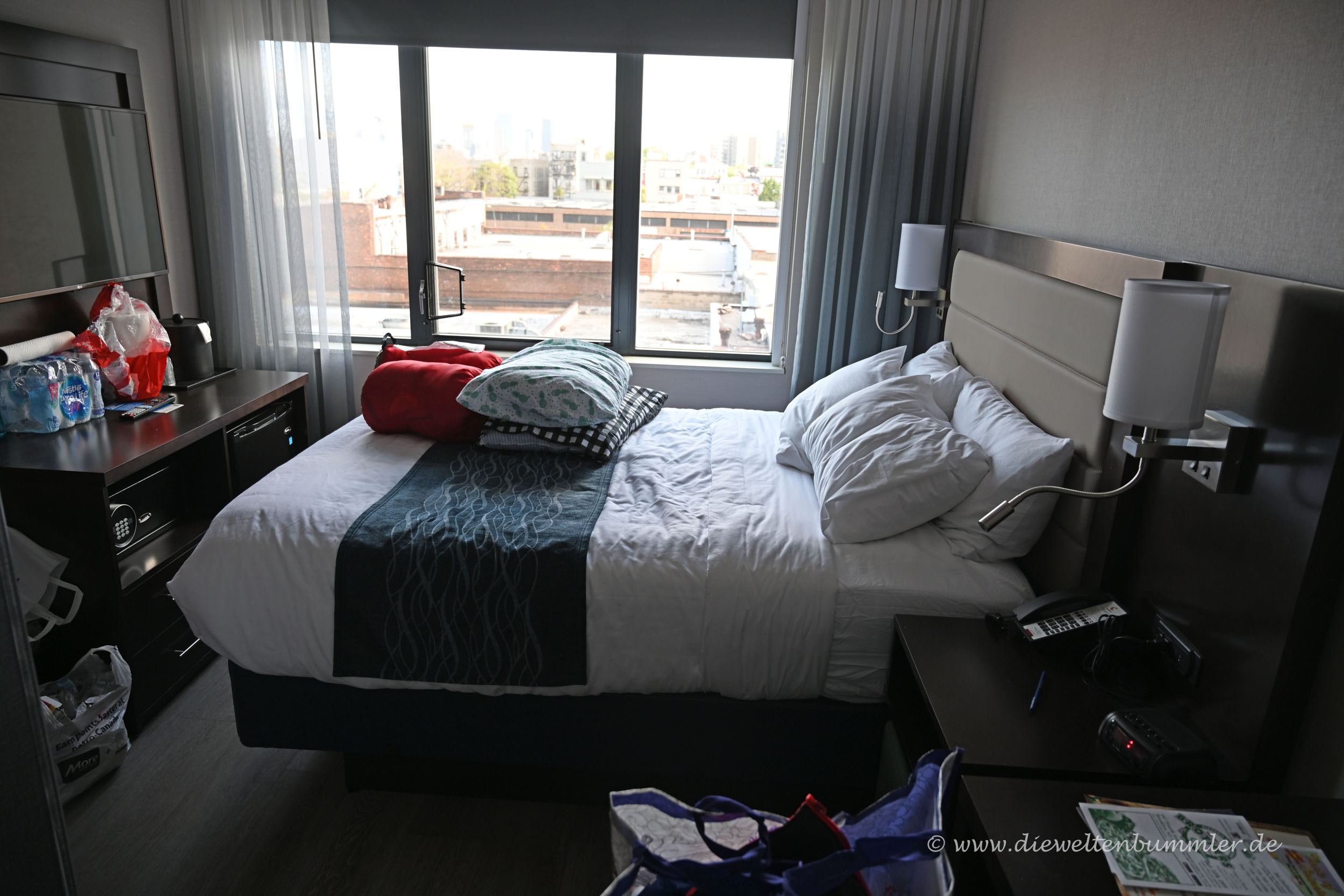Besonders schön an diesem Hotel ist, dass man vom Zimmer aus einen Blick auf die Skyline von Manhattan genießen kann. Das hängt natürlich von der Lage des Zimmers ab. Wir hatten bei drei Aufenthalten in diesem Hotel ganze drei Mal das Glück.