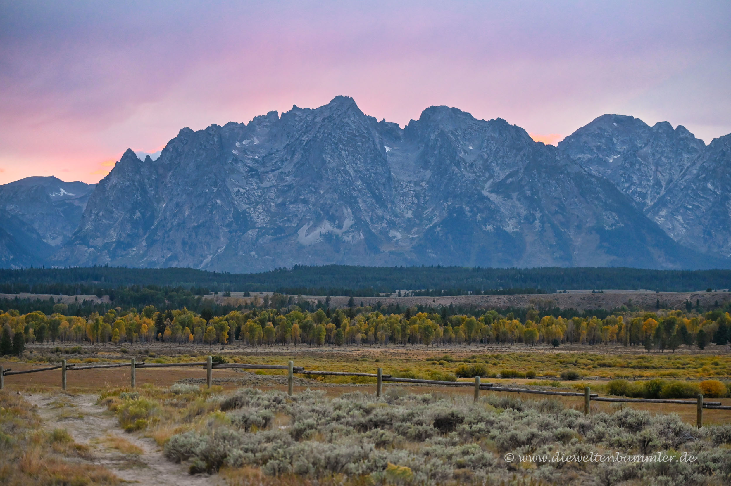 Der Grand Teton Nationalpark liegt ein wenig im Schatten des Yellowstone Nationalparks und ist Teil der Rocky Mountains. Eigentlich schade, denn er bietet ebenfalls eine wunderbare Landschaft und Natur. Aber auch ich muss zugeben, dass wir den Park nur kurz erlebt haben.