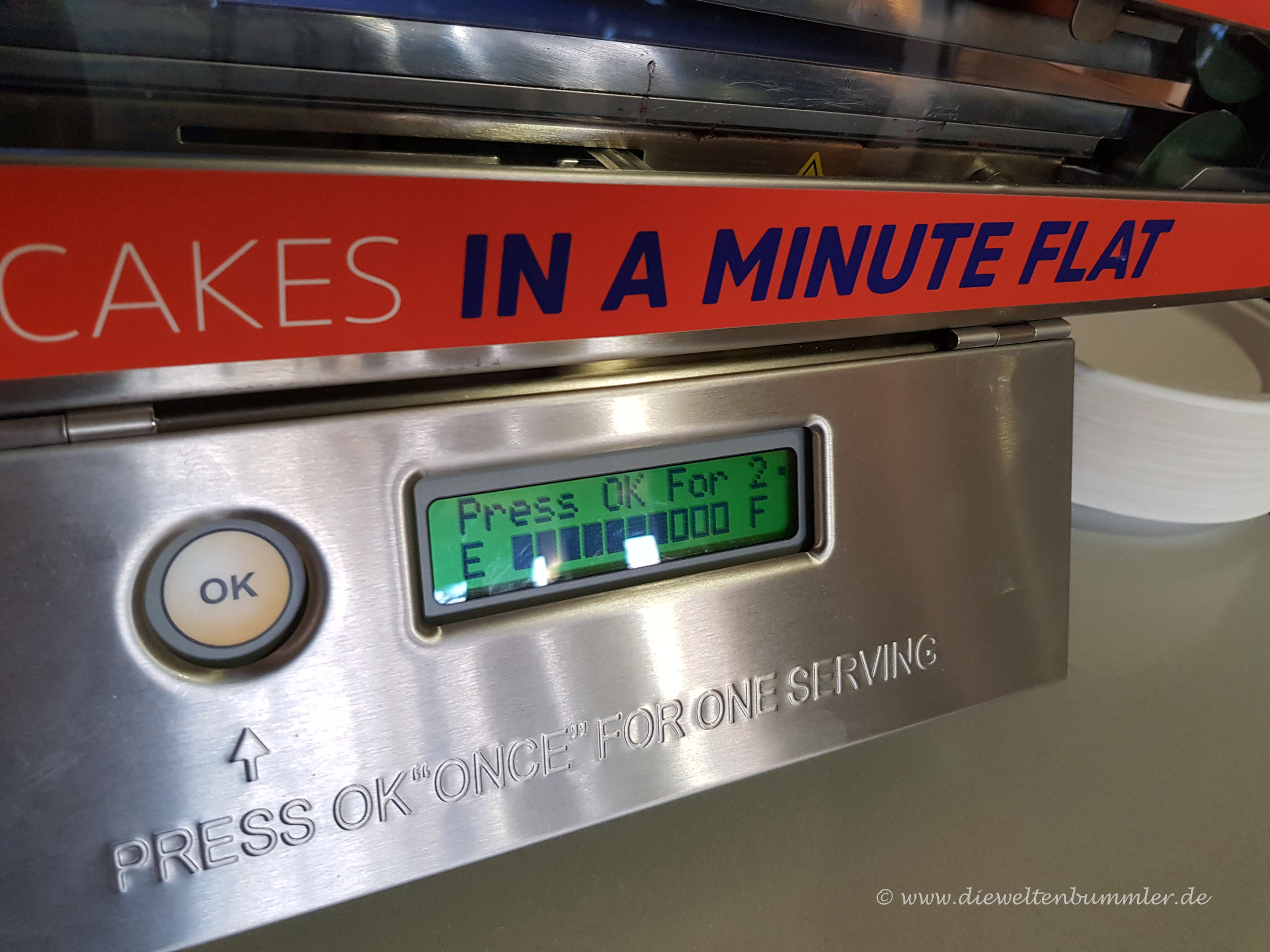 Es ist nicht auszuschließen, dass das gar nicht bekannt war. Denn wir haben auch relativ oft festgestellt, dass Pancake-Automaten auch amerikanische Gäste fasziniert und in manchen Fällen sogar überfordert. In einem Fall konnte ich es nicht mit ansehen, wie ein Hotelgast völlig verzweifelt auf alles mögliche an dem Gerät herumgedrückt hat. Auch die Klappe für den Teigbeutel wurde bereits geöffnet und da haben Gäste ja nun wirklich nichts dran zu suchen. Also habe ich der Amerikanerin dann erklärt, dass sie nur auf den einzigen Knopf drücken muss, den es gibt.