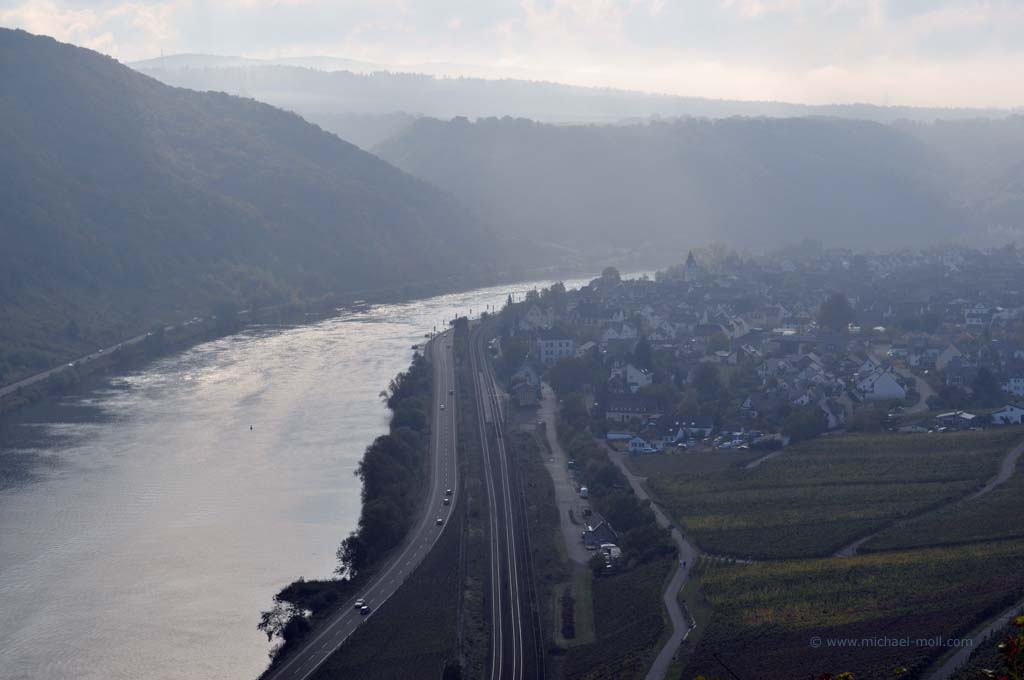 Wenn wir am Deutschen Eck nach links schauen und die Mosel hinauf wandern würden, kämen wir nach einiger Zeit nach Winningen, wo sich der sogenannte Hexenhügel befindet und man auf einem Hexen-Rundkurs wandern kann. Noch ein Stückchen weiter moselaufwärts, auf der rechten Moselseite wartet die Ortschaft Alken auf den Besucher. Hier kann man hoch hinaus zur sehenswerten Burg Thurant wandern. Nördlich der Mosel darf natürlich die Vulkaneifel nicht fehlen, die nicht nur aus dem Laacher See bei Maria Laach besteht. In Plaidt befindet sich das Vulkanpark-Zentrum, welches einen Besuch wert ist.