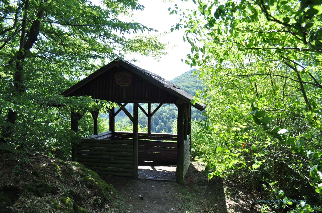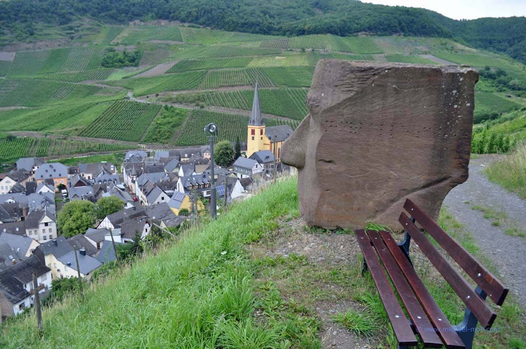 Und in den fast schattenlosen Weinbergen des Calmont kann es ziemlich heiß werden. Schweiß steht einem sowieso schon auf der Stirn, wenn man nur die Namen der Aussichtspunkt liest: Todesangst.