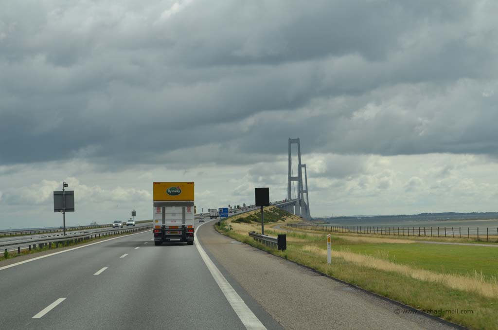 Doch nun sind wir erst einmal bei Bremen und genießen unser abendliches Mittagessen bei McDonalds bevor wir kurze Zeit später in Hamburg vor dem Elbtunnel im Stau stehen. Auch der geht vorbei und mit dem Passieren von Flensburg lassen wir die deutsch-dänische Grenze hinter uns. Bei Kolding biegen wir nach rechts ab und fahren ostwärts an Odense vorbei. Für heute soll es reichen, es ist schon spät geworden und ein Rastplatz mit Entsorgungsstation, den ich noch von der letzten Dänemarkreise kenne und auch in meinem Reiseführer erwähne, wird zu unserer ersten Nachtstation.