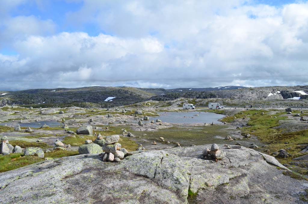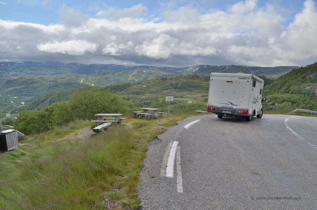 Endlich geht es los. Nach langen Wochen der vielen und ausdauernden Arbeit und nach der einen oder anderen zeitlichen Verschiebung ist heute Abreisetag. Es ist Sonntag und alle Lkws befinden sich auf den Rastplätzen. Das heißt, die Autobahnen sind frei. Nicht, dass unser Wagen im Gegensatz zu unserem alten 50-PS-VW-Bus an den Lastwagen vorbei ziehen könnte – ganz im Gegenteil. Wir kannten das ja schon von unserer führeren Reise mit dem VW-Bus nach Norwegen. Aber ohne Lastwagen lässt es sich nun mal deutlich schöner auf den Autobahnen fahren. Normalerweise fahren wir immer recht früh. Aber noch in letzter Minute müssen wir berufliche Mails schreiben und schon in den Tagen zuvor waren wir so mit der Arbeit eingespannt, dass wir noch nicht einmal dazu kamen, unsere Reise vernünftig vorzubereiten, geschweige denn, zu packen.