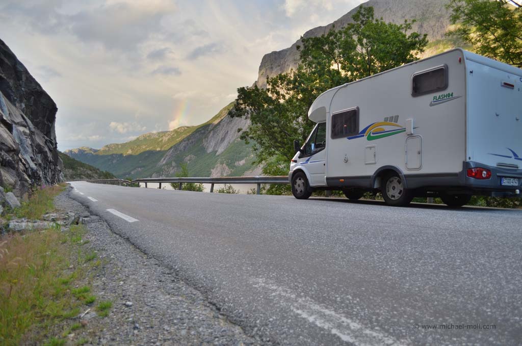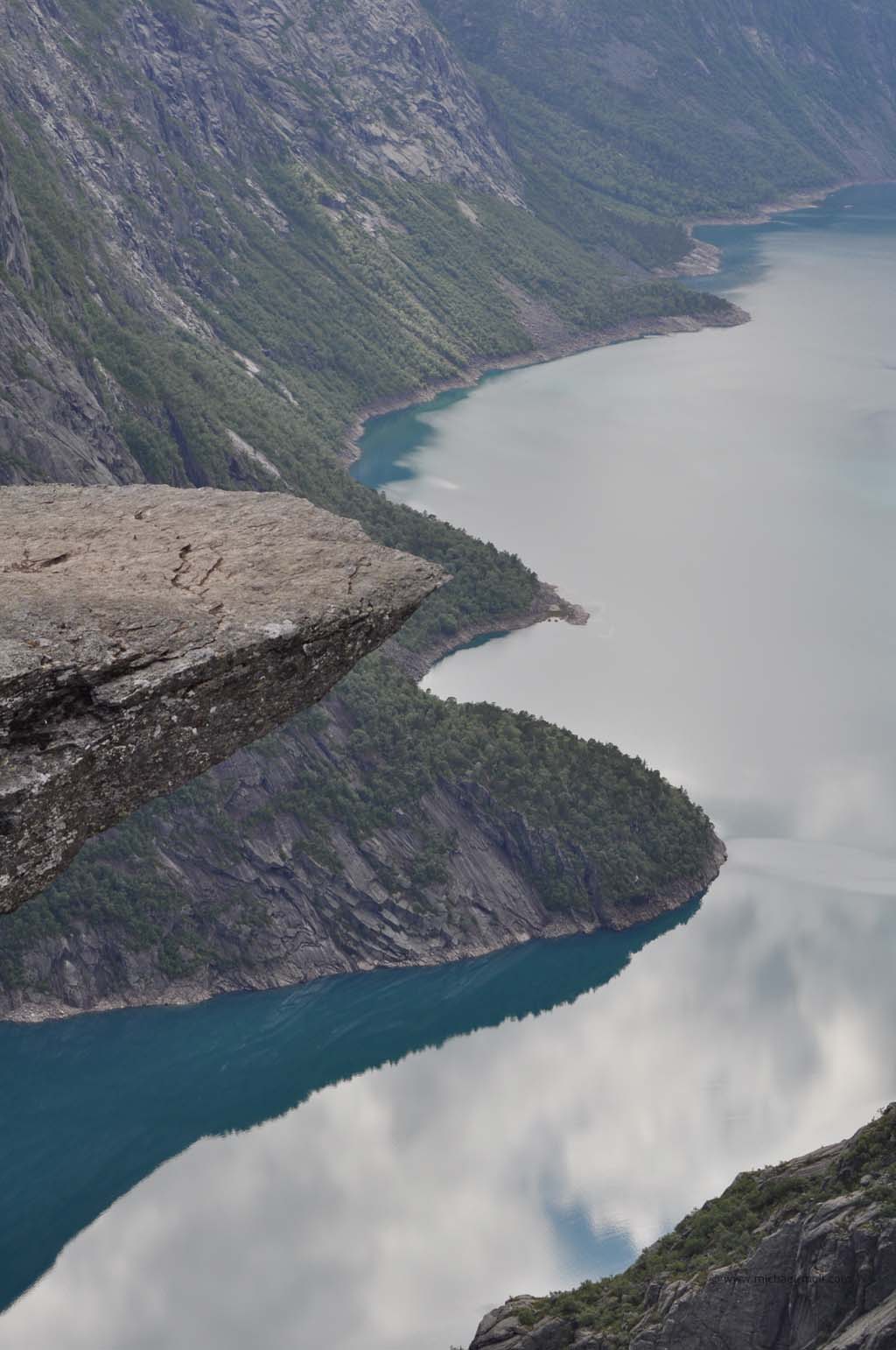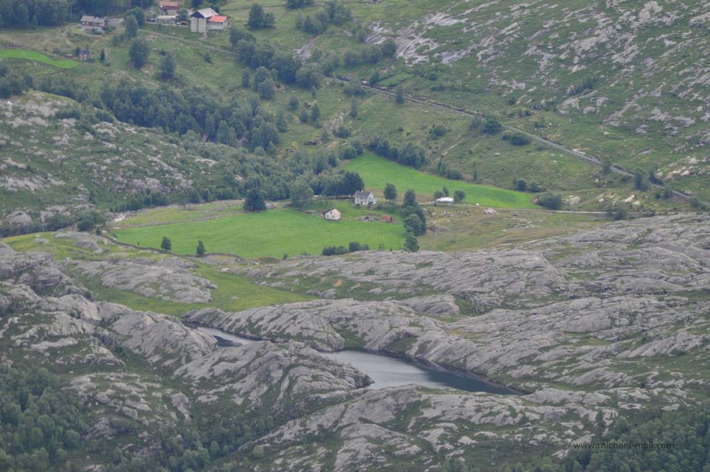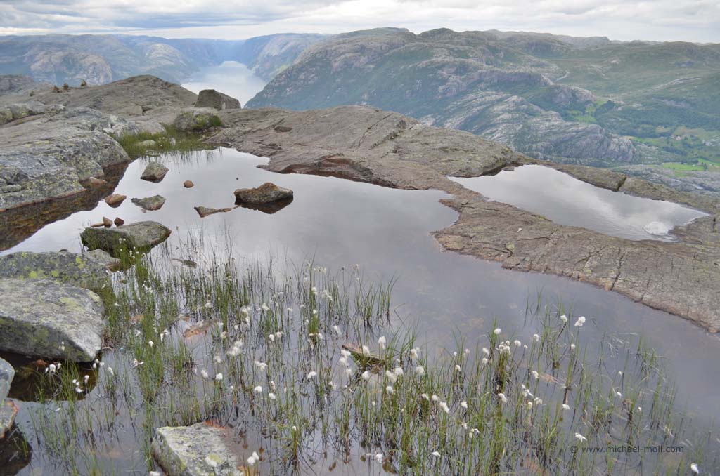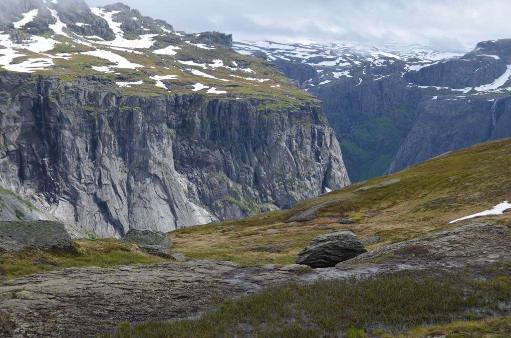 Ansonsten wurden wir aber vielfach auch überholt. Und zwar in einem Tempo als gäbe es am Ziel etwas umsonst. Man muss wissen, dass der Kjeragbolten ein kleiner Felsbrocken ist, der sich zwischen zwei hohen Felswänden verkeilt hat. Unter dem Kjeragbolten geht es 1.000 Meter in die Tiefe und man blickt auf den Lysefjord. Ein beliebtes Fotomotiv ist es daher, sich auf den Felsen zu stellen, was ich bei letzten Reise auch tat. Heute hatte ich weniger Lust dazu – ganz einfach, weil es schlicht zu voll war.