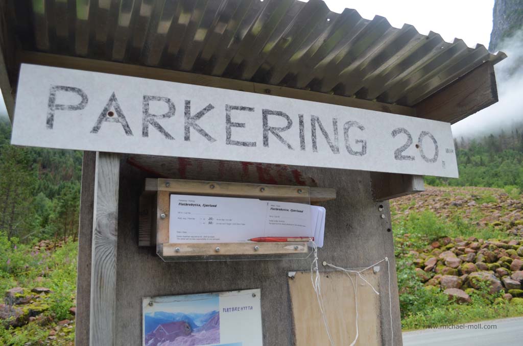 Auch auf dem Parkplatz standen nur noch wenige Fahrzeuge, die Autos am Straßenrand waren komplett verschwunden. Da man in der näheren Umgebung des Preikestolen nicht übernachten darf und wir kein Bedürfnis hatten, wieder auf einen Campingplatz zu fahren, fuhren wir bis zum erst besten Rastplatz, der uns gefiel. Diesen fanden wir nach gut 40 Kilometern Fahrt, was auf den engen Straßen bedeutend mehr Zeit in Anspruch nimmt als auf deutschem Asphalt. Zum ersten Mal bauten wir unsere Satellitenschüssel auf und ließen den Tag neben einer alten, historischen Brücke und einem kleinen Wasserfall bei einem netten Film ausklingen.