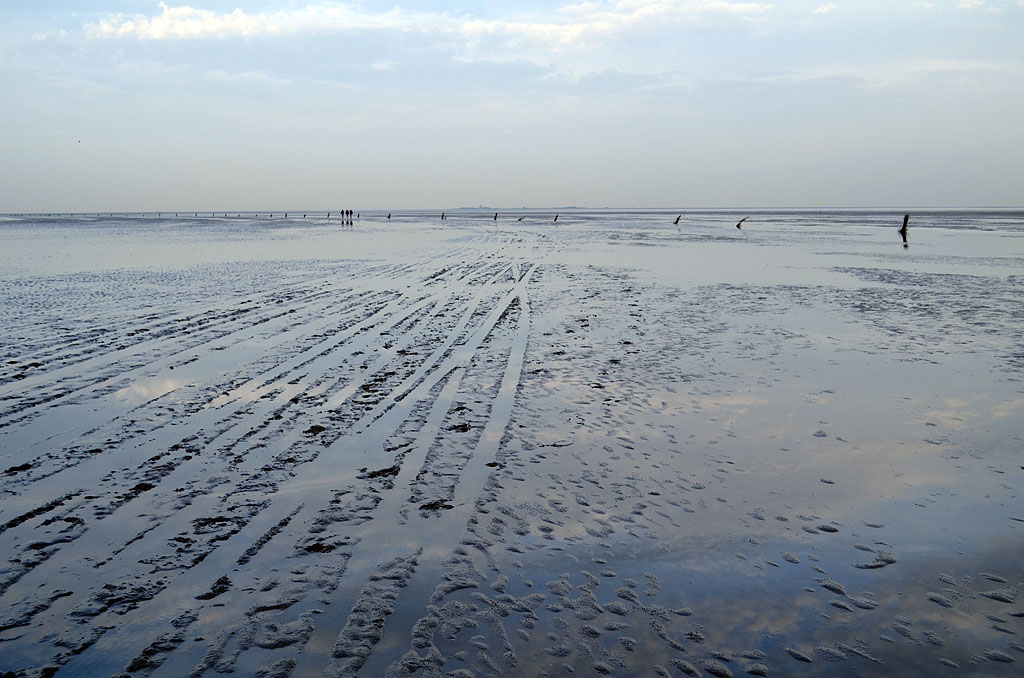 Eine Wanderung bei Cuxhaven klingt erstmal irgendwie unspektakulär. Aber zur Insel Neuwerk auf dem Meeresboden? Und zwar starten wir am Wohnmobilstellplatz in Cuxhaven, wo wir übernachtet haben und wandern am Elbufer nordwärts bis zur Nordsee. Schnellen Schrittes natürlich, denn wir wollen das enge Zeitfenster nicht verpasssen, das man hat, wenn man im Wattenmeer laufen will.
