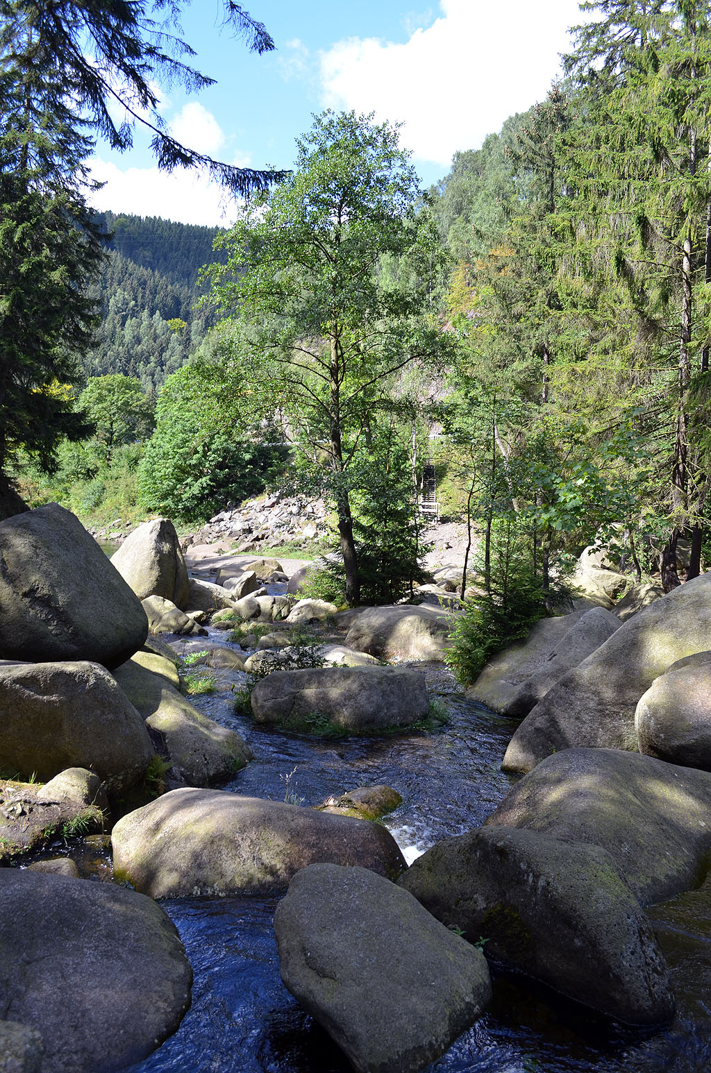 Bekannt ist der Harz aber auch für das Torfhaus, mitten im Hochharz. Als ich dort war, wurde noch viel gebaut und erneuert. Aber wenn man in die angrenzenden Wälder verschwindet, dann findet man sich plötzlich auf einem der Holzstege wieder, die einen durch die Moore bringen und an Wanderungen durch das Hohe Venn erinnern.