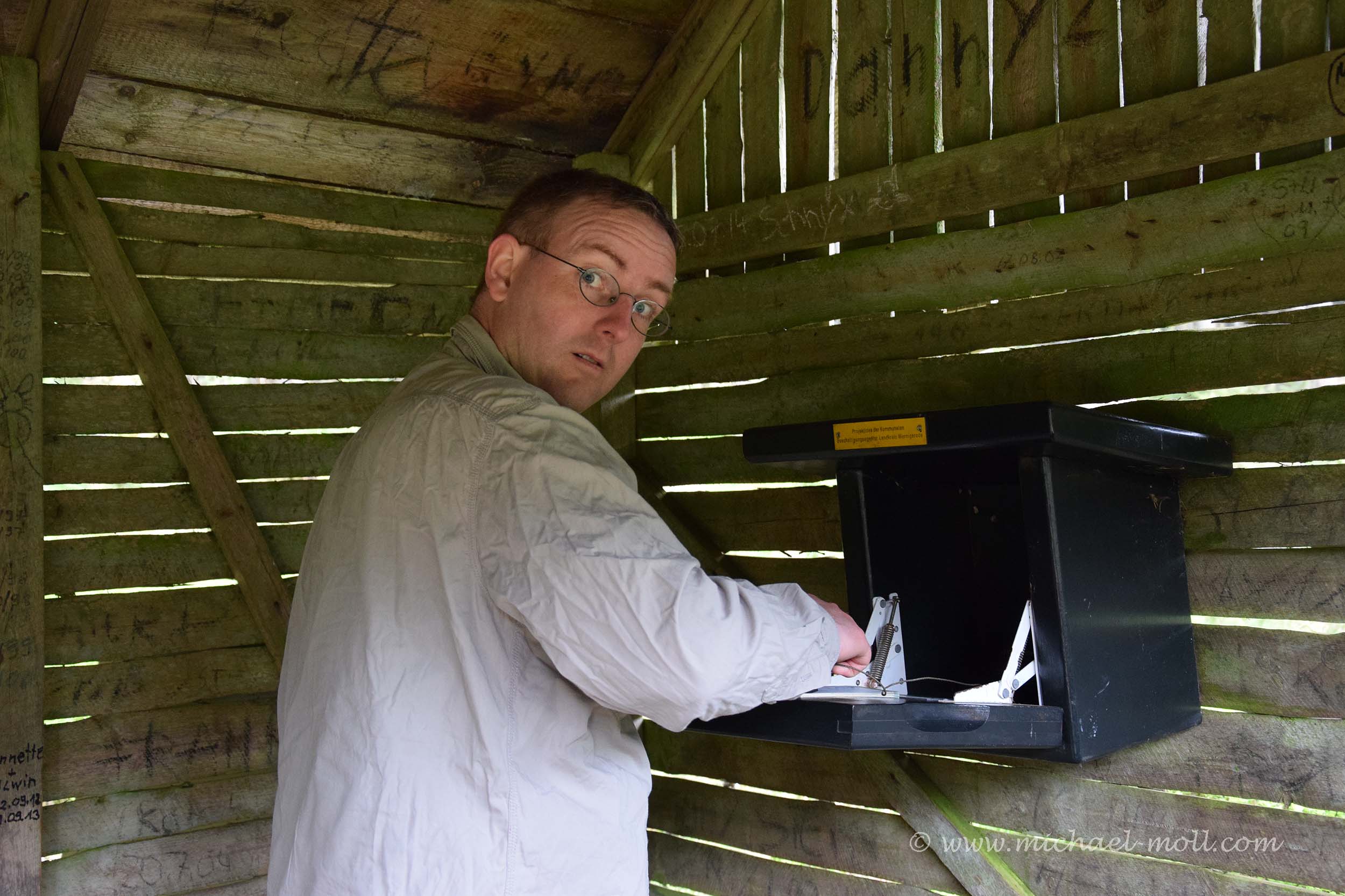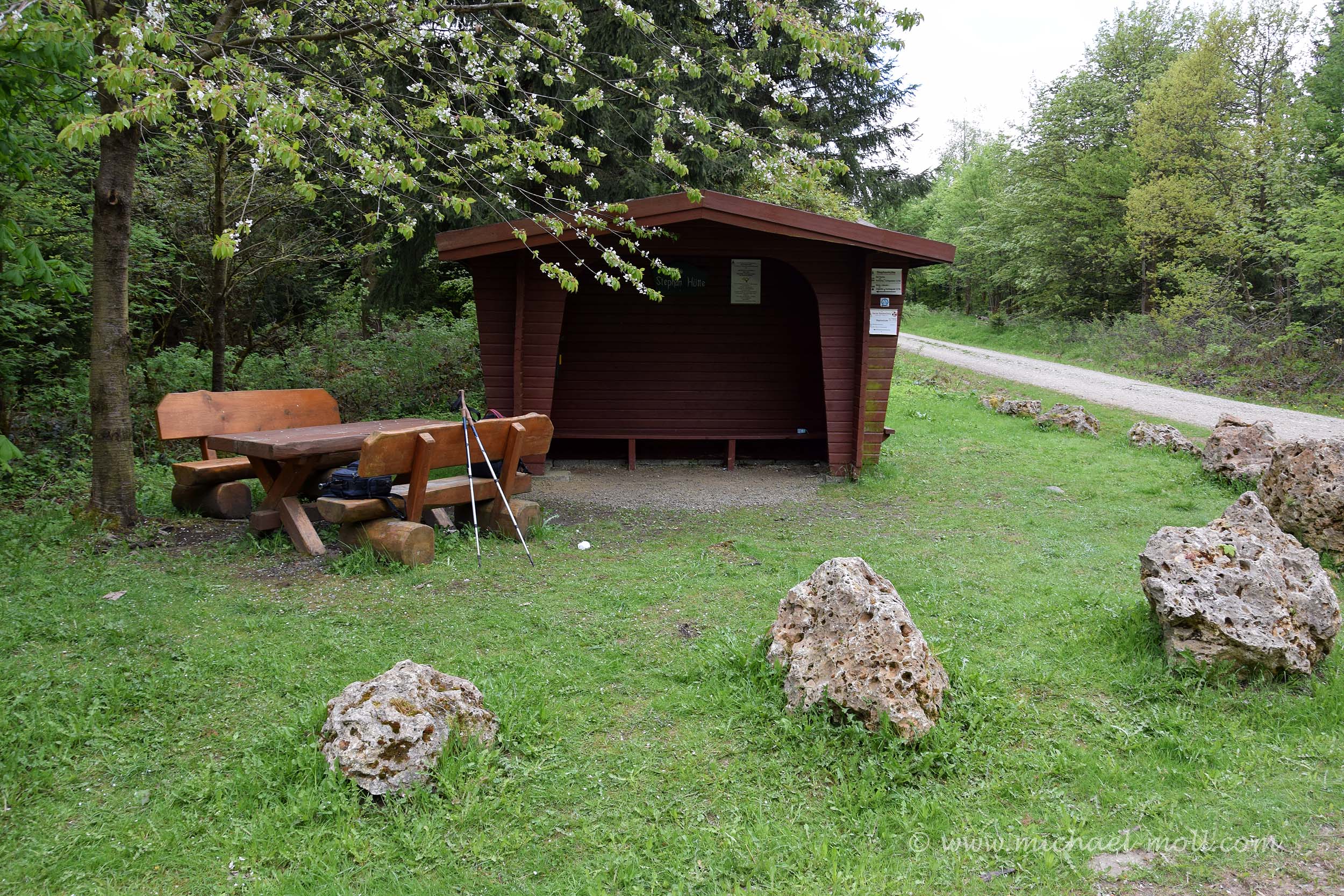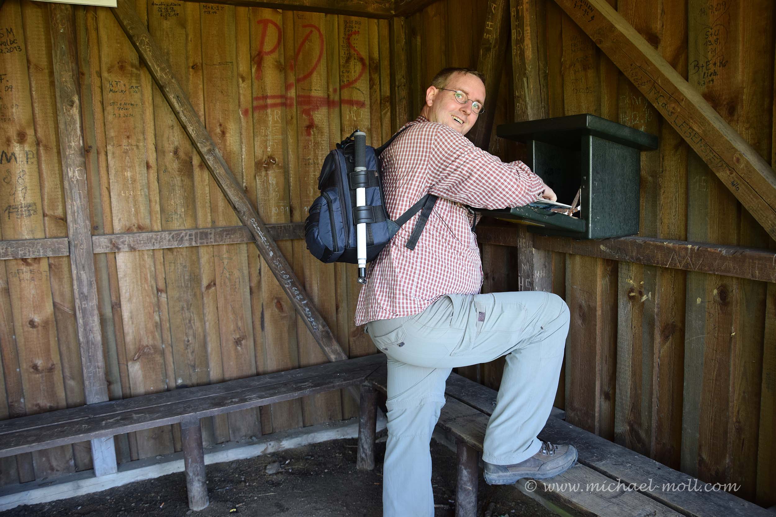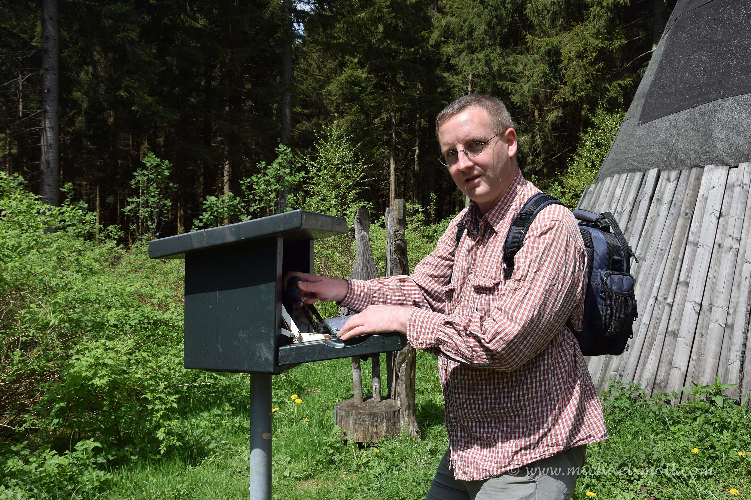 Also fuhren wir am Feiertag morgens gemütlich über die Autobahn, um nach etwas über 300 Kilometern im Westen des Harz anzukommen. Auf einem Wanderparkplatz bei Bad Grund stellten wir das Wohnmobil ab, aßen schnell noch ein Stückchen Käse und wanderten durch den Wald. Gleich drei Stempelstellen wollten wir auf einem Rundweg absahnen. Zunächst war es noch recht ruhig, abgesehen von einigen anderen Wanderern, aber dann kamen wir zur ersten Stempelstelle, der Nummer 131 mit dem Namen Kaysereiche. Bereits Minuten bevor wir das Ziel erreichten, wurden wir von Musik begrüßt. Es war ja Vatertag. Mir war nur nicht bewusst, dass man dann an auch Schutzhütten alkoholisiert den halben Wald beschallt. Man mag mich jetzt als Spaßbremse bezeichnen, aber meiner Meinung nach ist das eine Unsitte. Feiern und fröhlich sein ist ja okay, aber muss es dann dort sein, wo andere Leute (und vor allen Dingen die Tiere in den Wäldern) ihre Ruhe haben wollen?