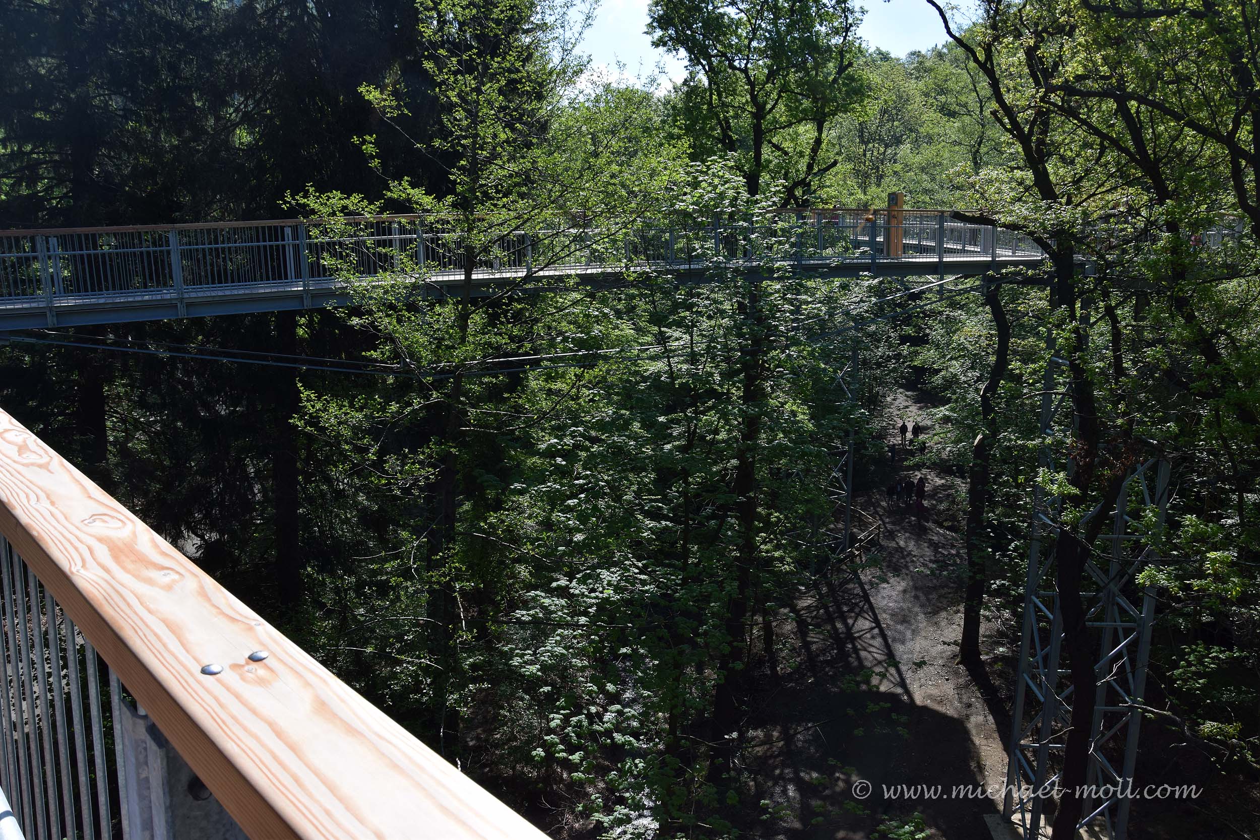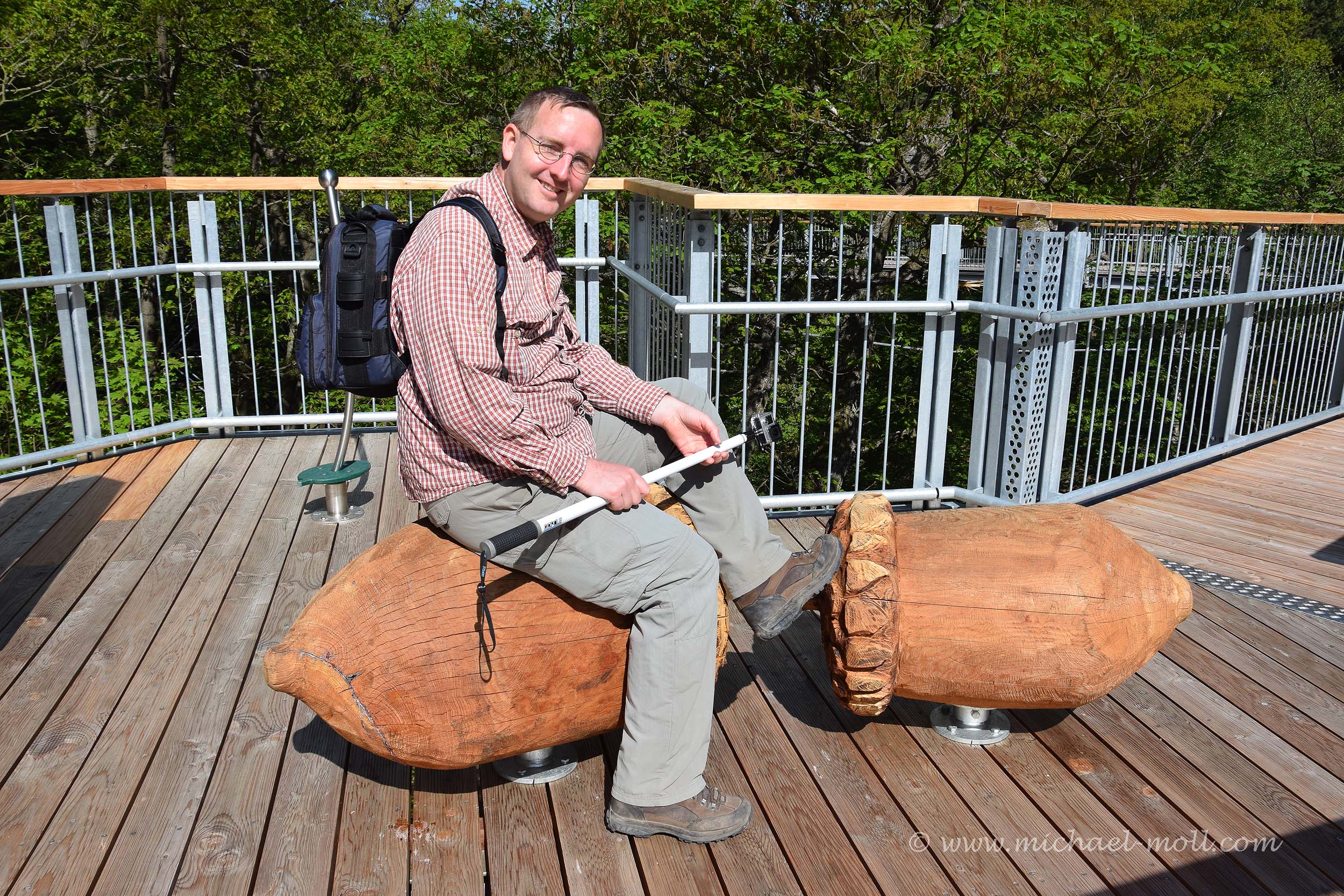 Die zahlreichen Spiel- und Lernelemente schauten wir uns natürlich in Ruhe an, genossen den einfachen Spaziergang und waren dennoch überrascht, wie schnell wir nach einer Dreiviertelstunde am Ende des Baumwipfelpfads ankamen.