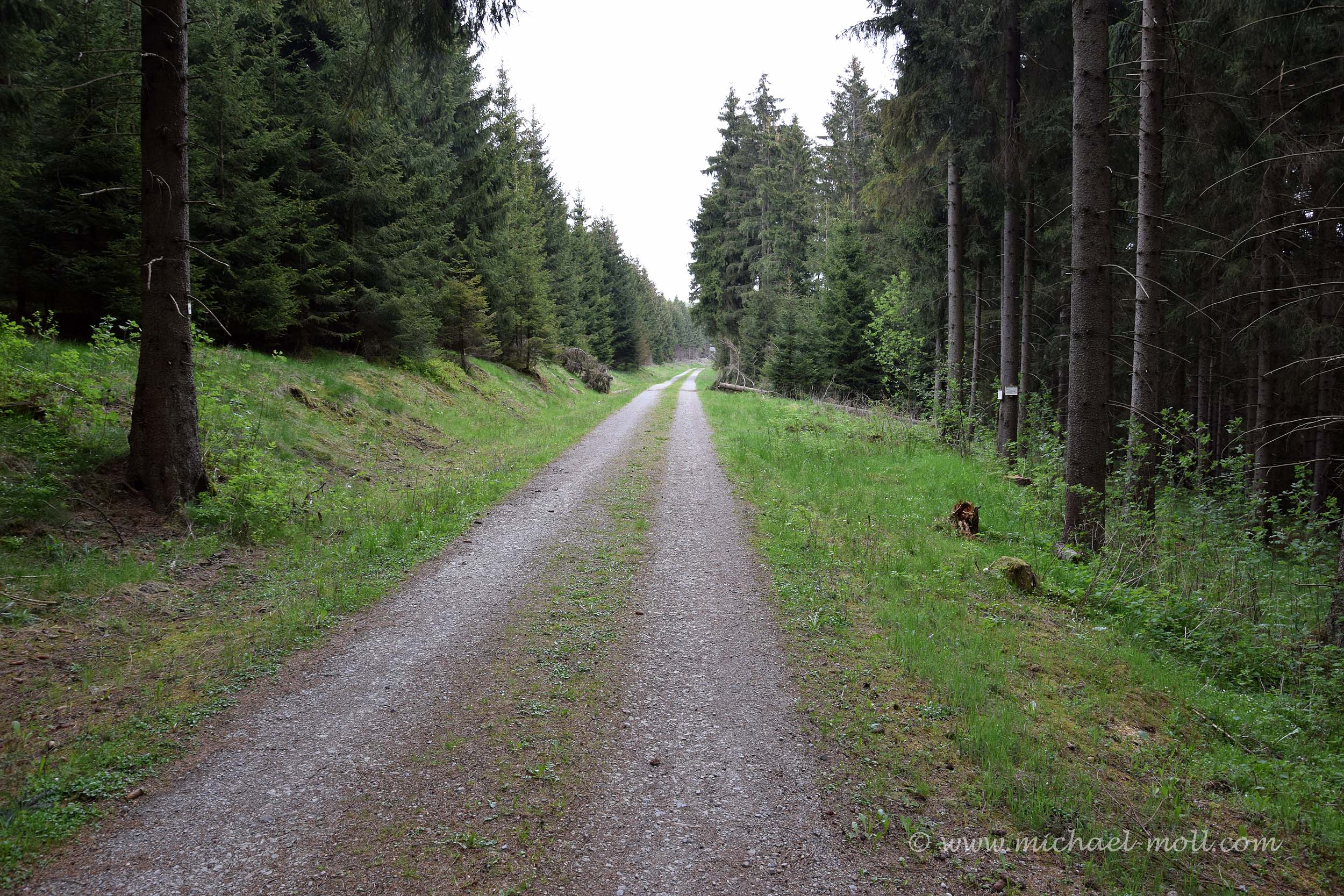 Damit hatten wir die ersten dreieinhalb Kilometer des Tages. Ähnlich weit und ähnlich flach ging es dann zum Stempel 206 mit dem Namen Hahnestein. Anschließend wollten wir eigentlich bei Hohegeiß eine sehr einfache und kurze Wanderung machen, doch es stellte sich heraus, dass der Stempel Nr. 45 mit dem Namen Dicke Tannen doch weiter entfernt war als gedacht. Das lag nämlich an dem Umstand, dass der eigentliche Wanderweg gesperrt war und man umgeleitet wird. So kamen wir dann zu weiteren dreieinhalb Kilometern, nur mit dem Unterschied, dass wir hier auch noch 150 Höhenmeter gemacht haben. Eigentlich nicht viel, aber die Tatsache, dass man erst hinab geht und man damit weiß, was man auf dem Rückweg noch vor sich hat, war ein wenig zermürbend.